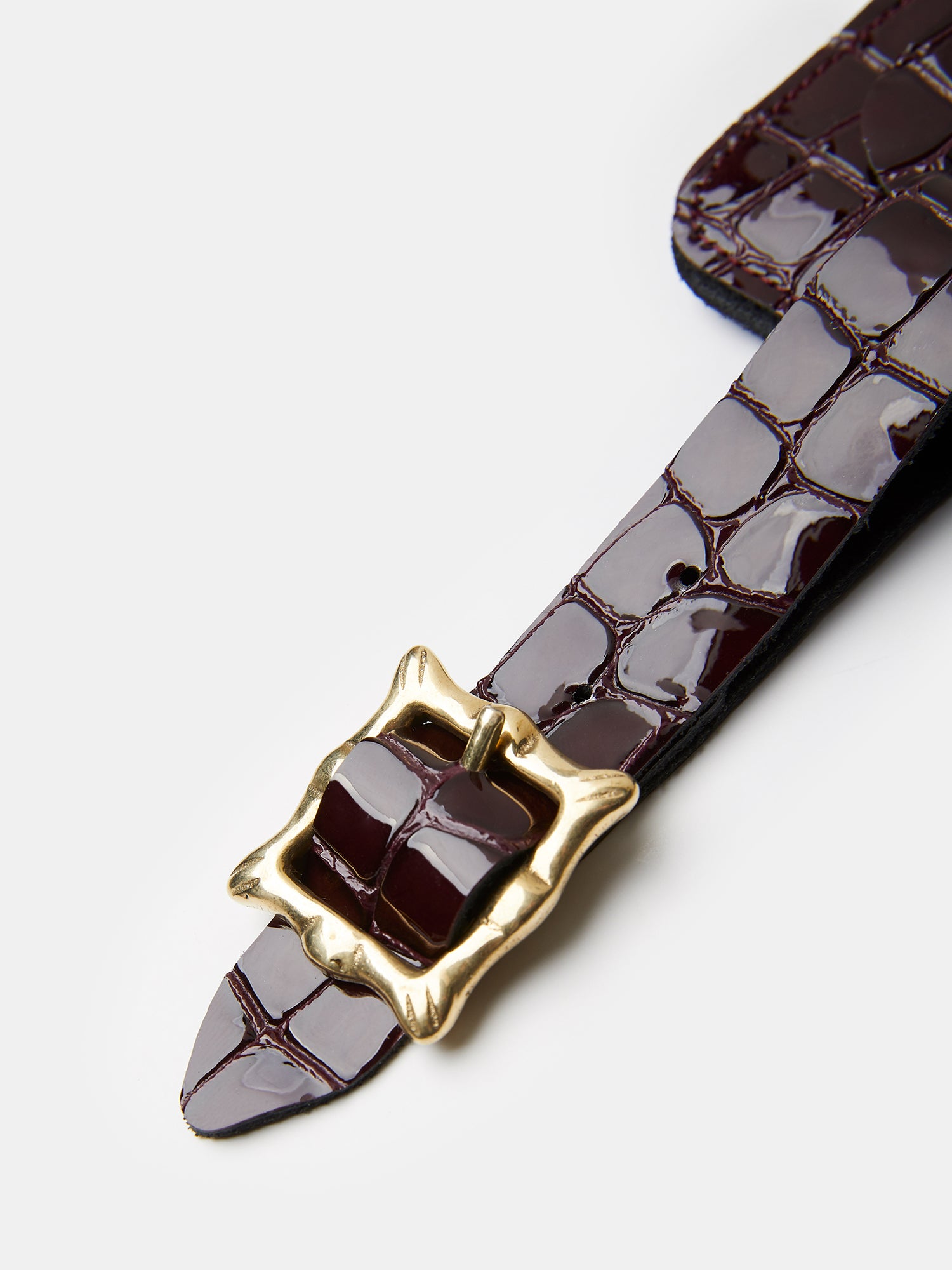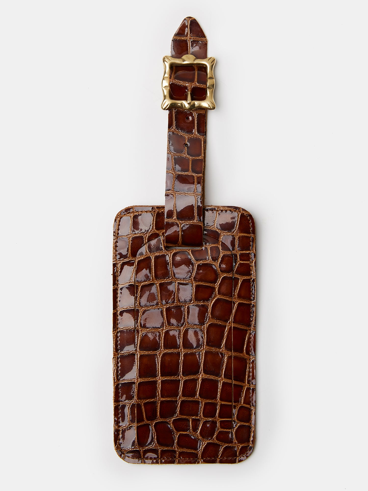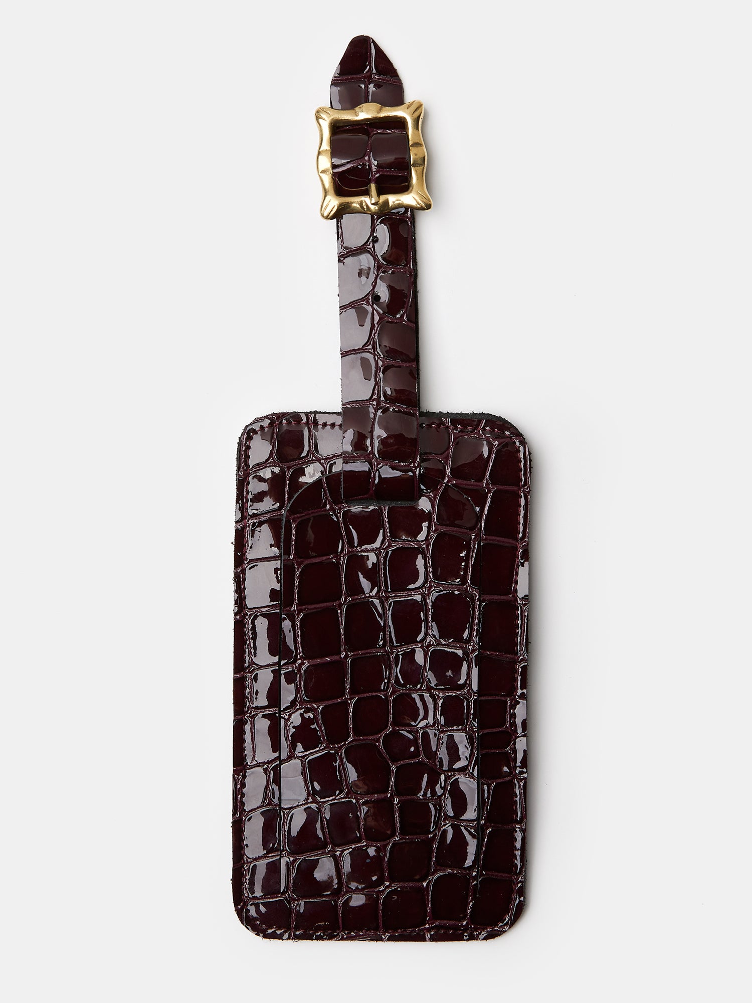 Luggage Tag in Burgundy Crocodile Embossed Calf