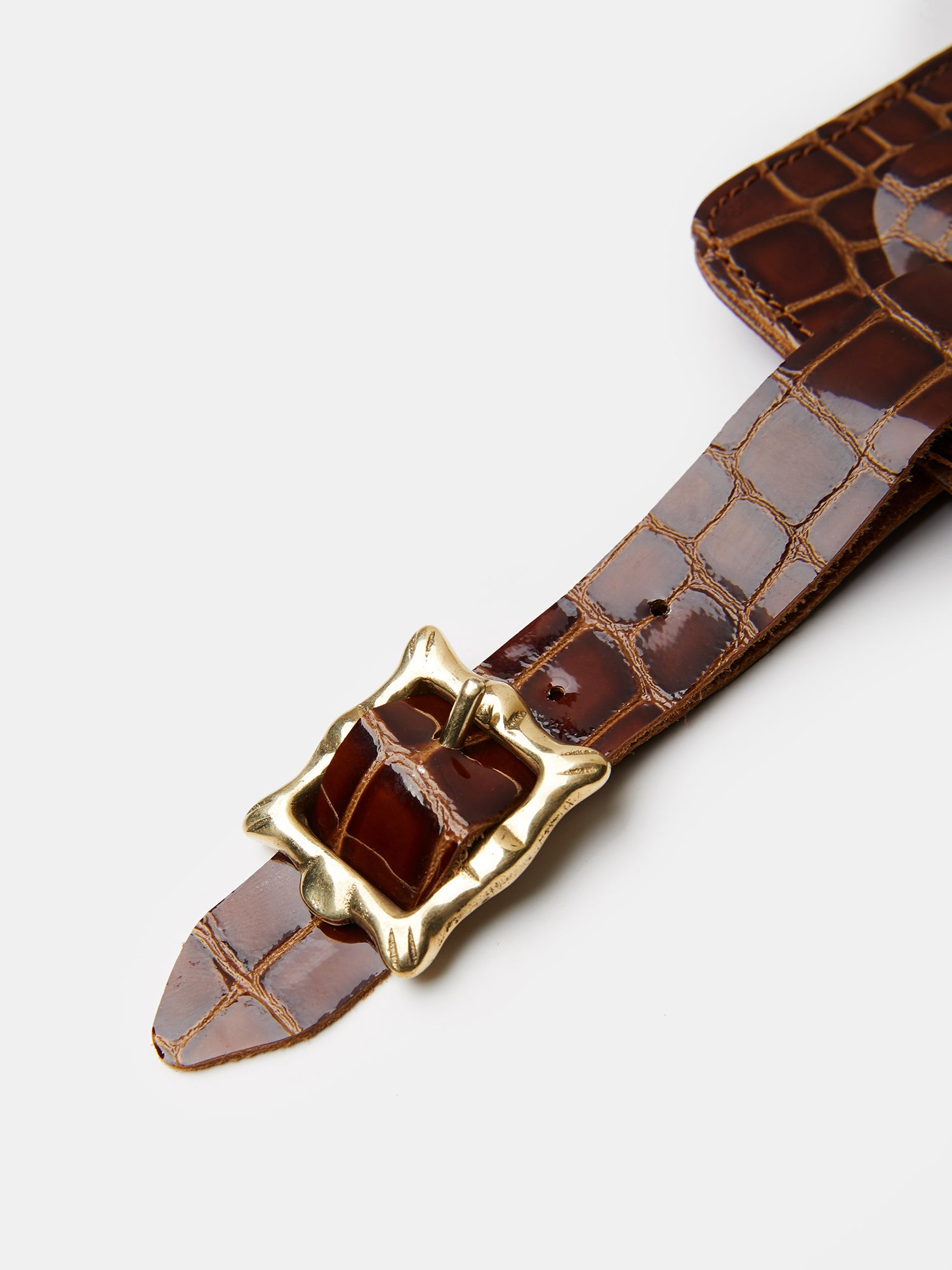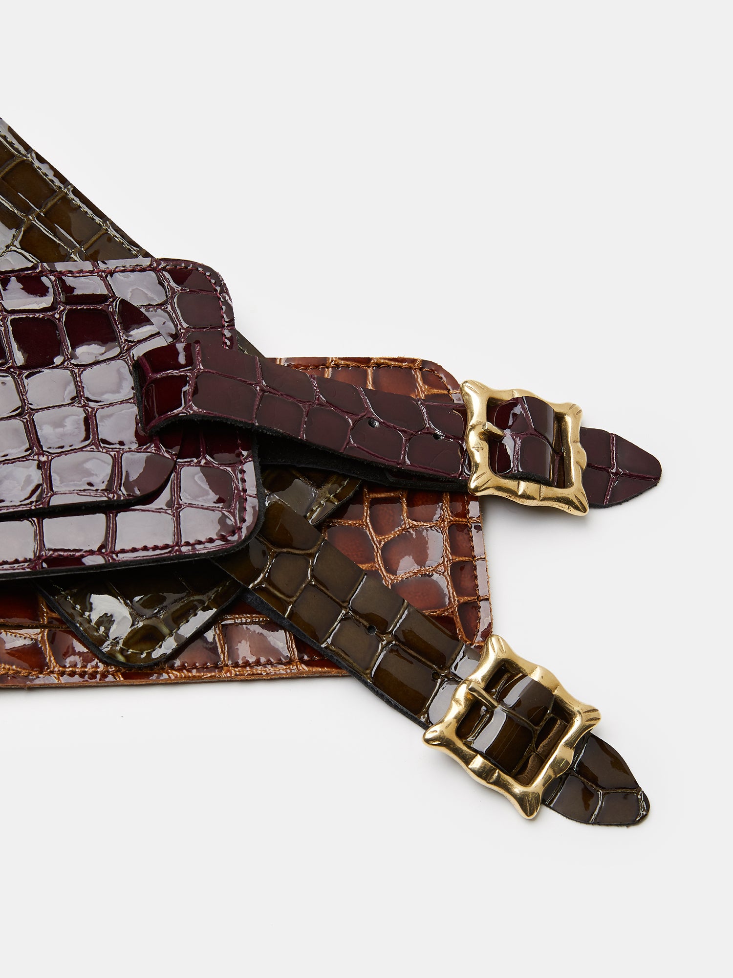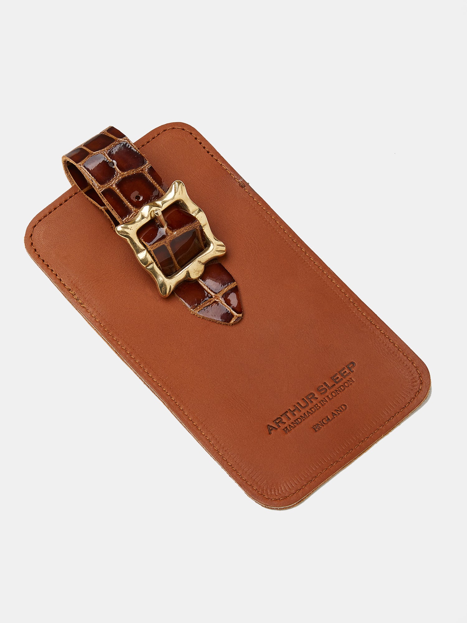 Luggage Tag in Burgundy Crocodile Embossed Calf