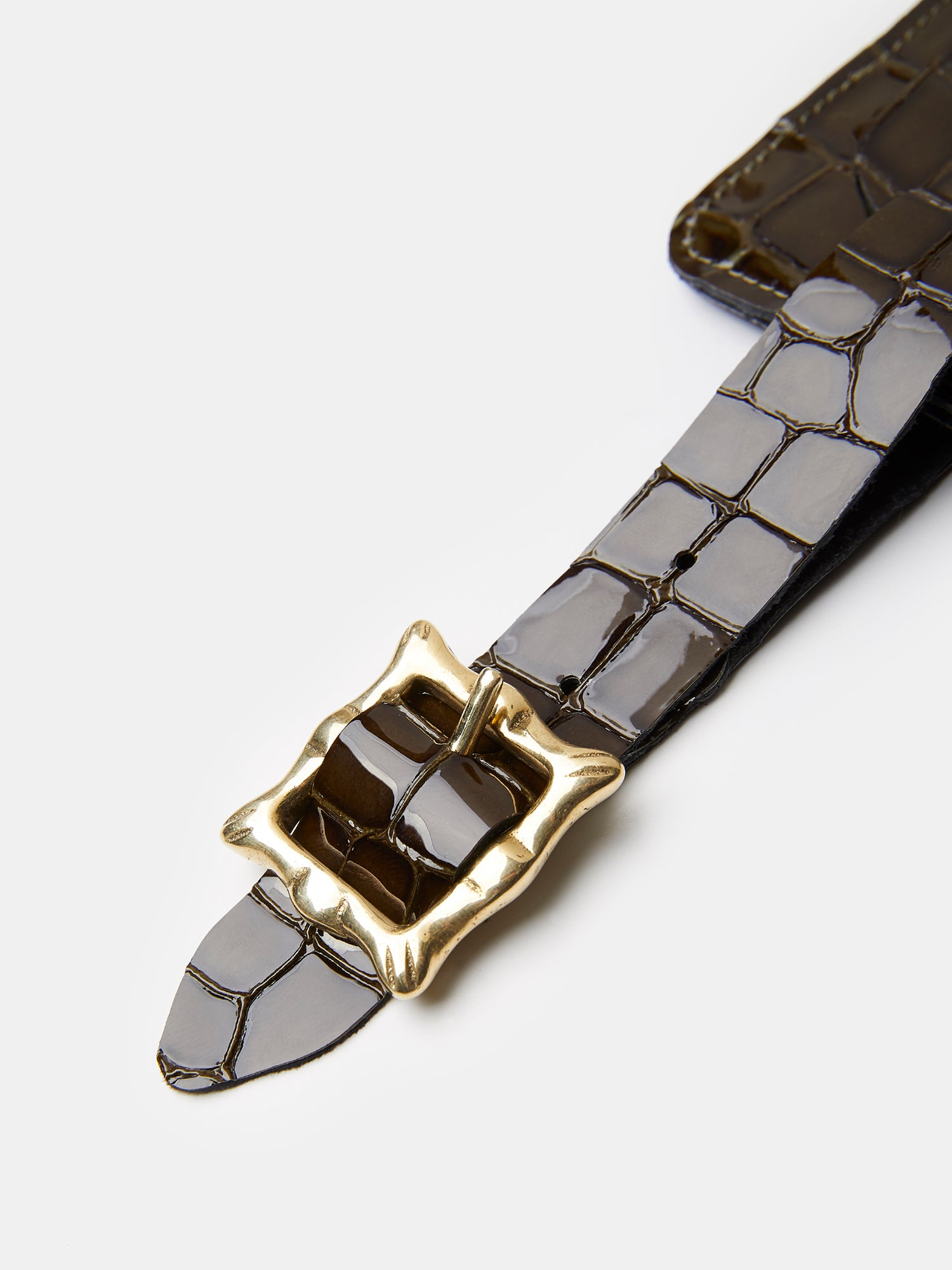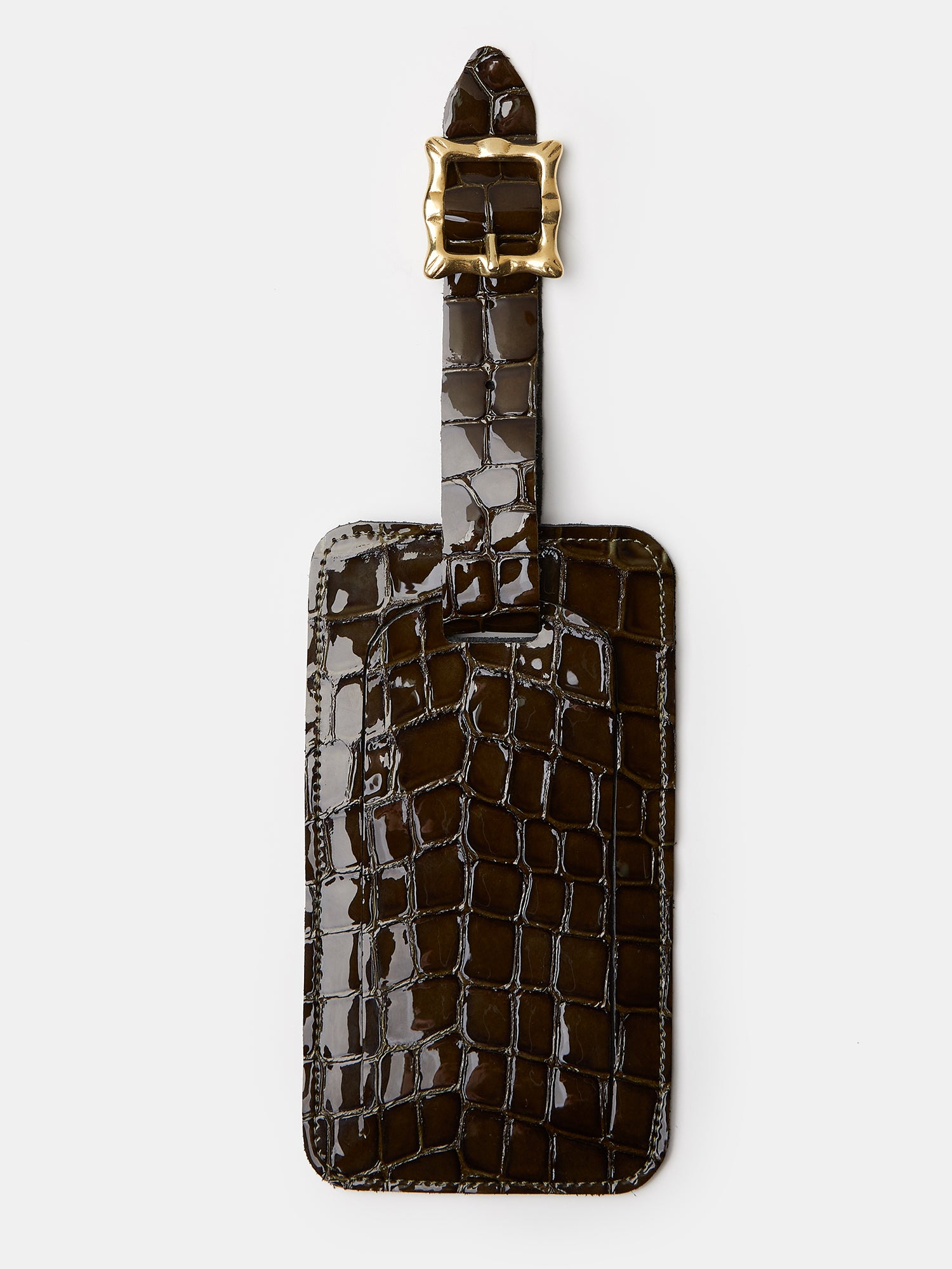 Luggage Tag in Dark Green Crocodile Embossed Calf