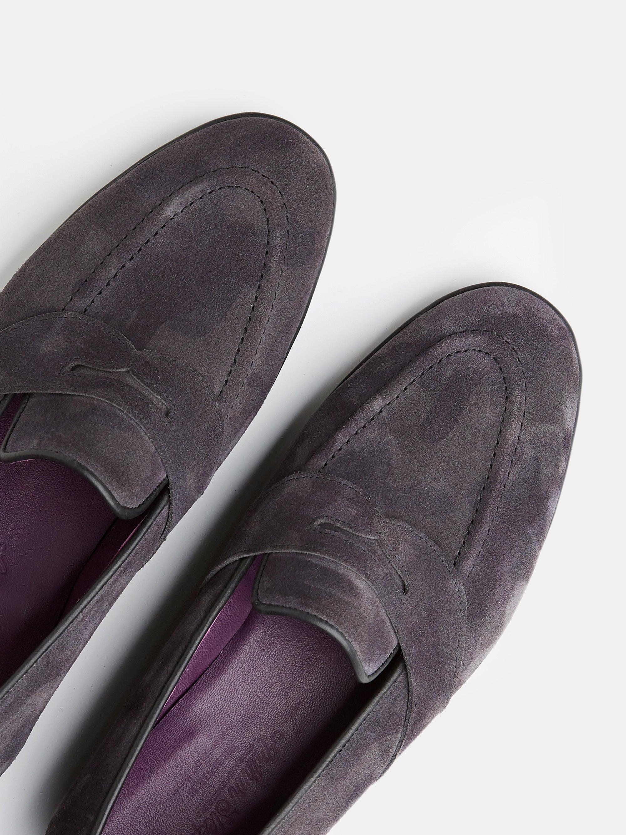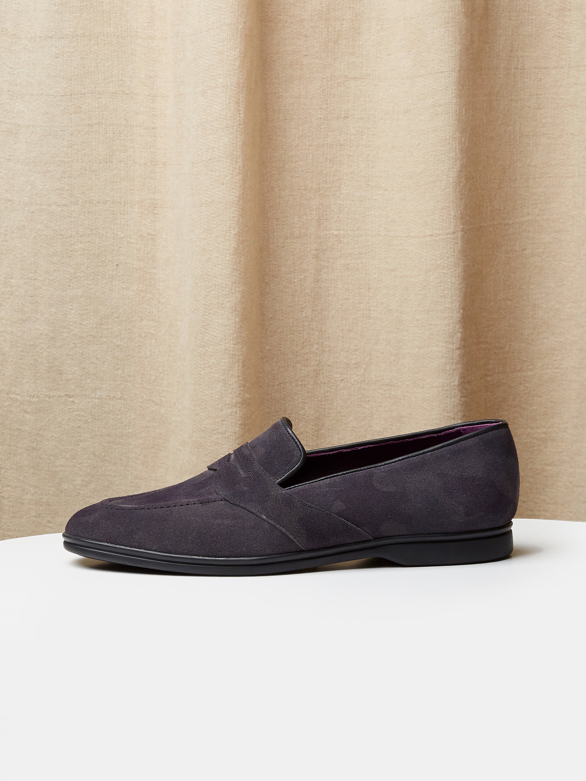 The Caledonian Loafer in Charcoal Camouflage Suede