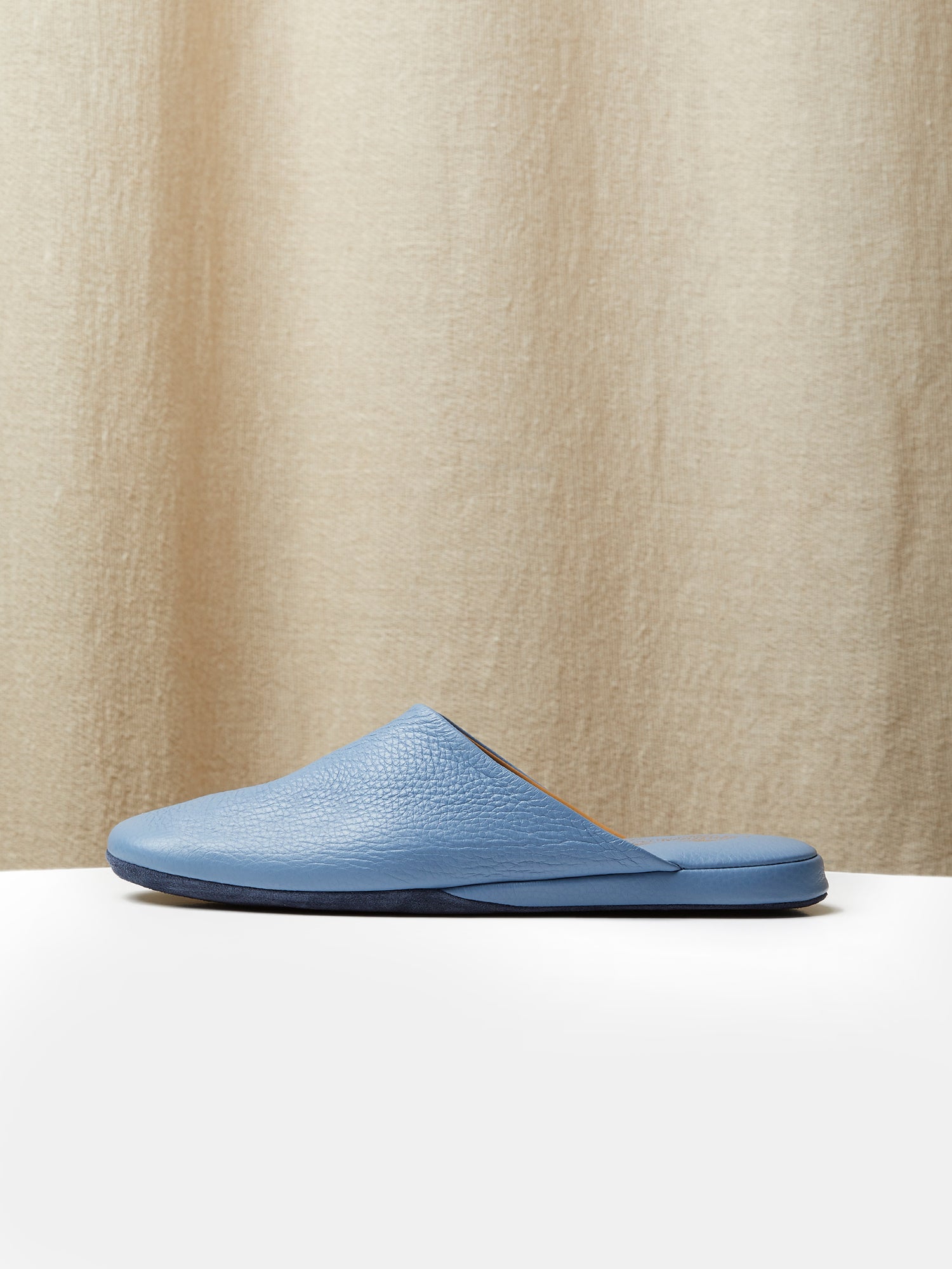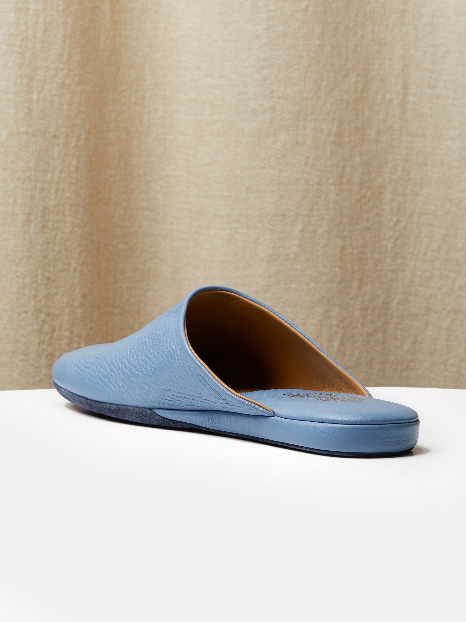 Globetrotter Glide Mules in Baby Blue Deerskin