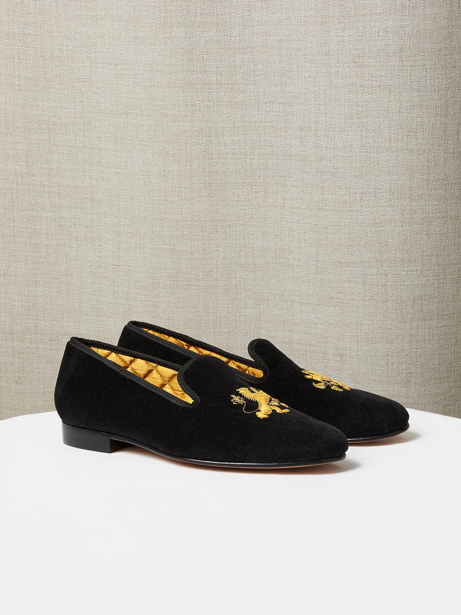 The world’s most sophisticated house shoe can also be worn outdoors, thanks to their hard-wearing leather soles and advanced stain and water protection. A natural fit with a dressing gown or loungewear, velvet slippers exude relaxed sophistication with chinos or linen.