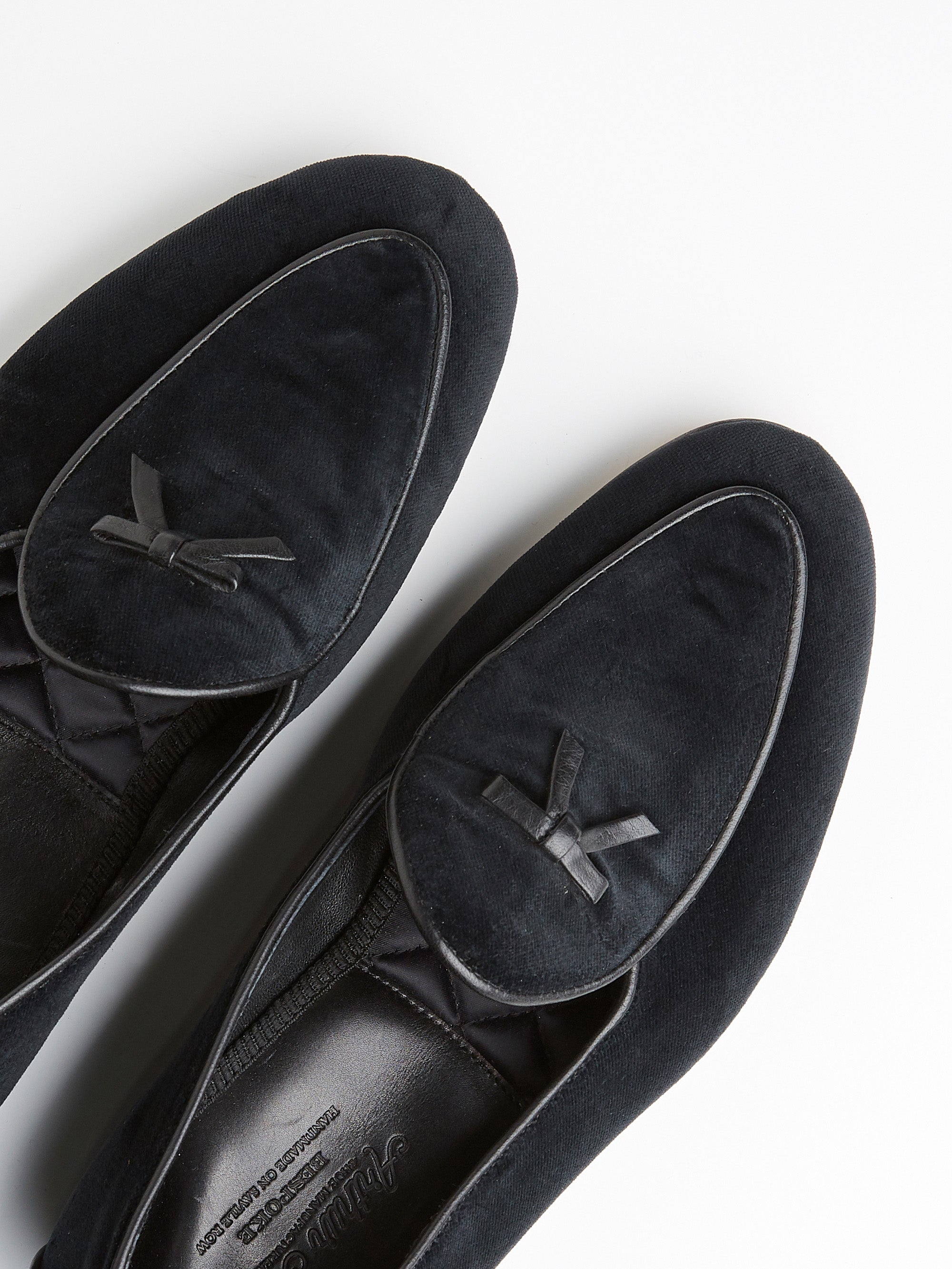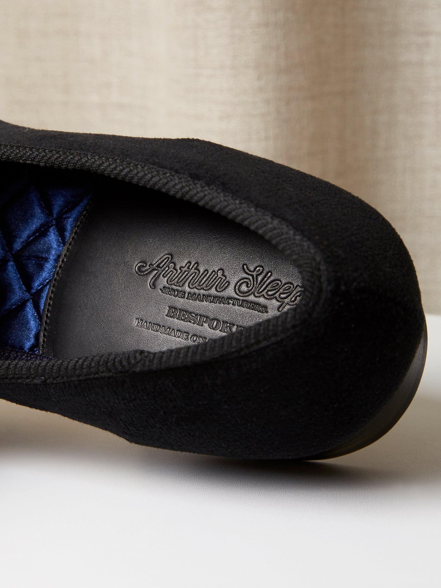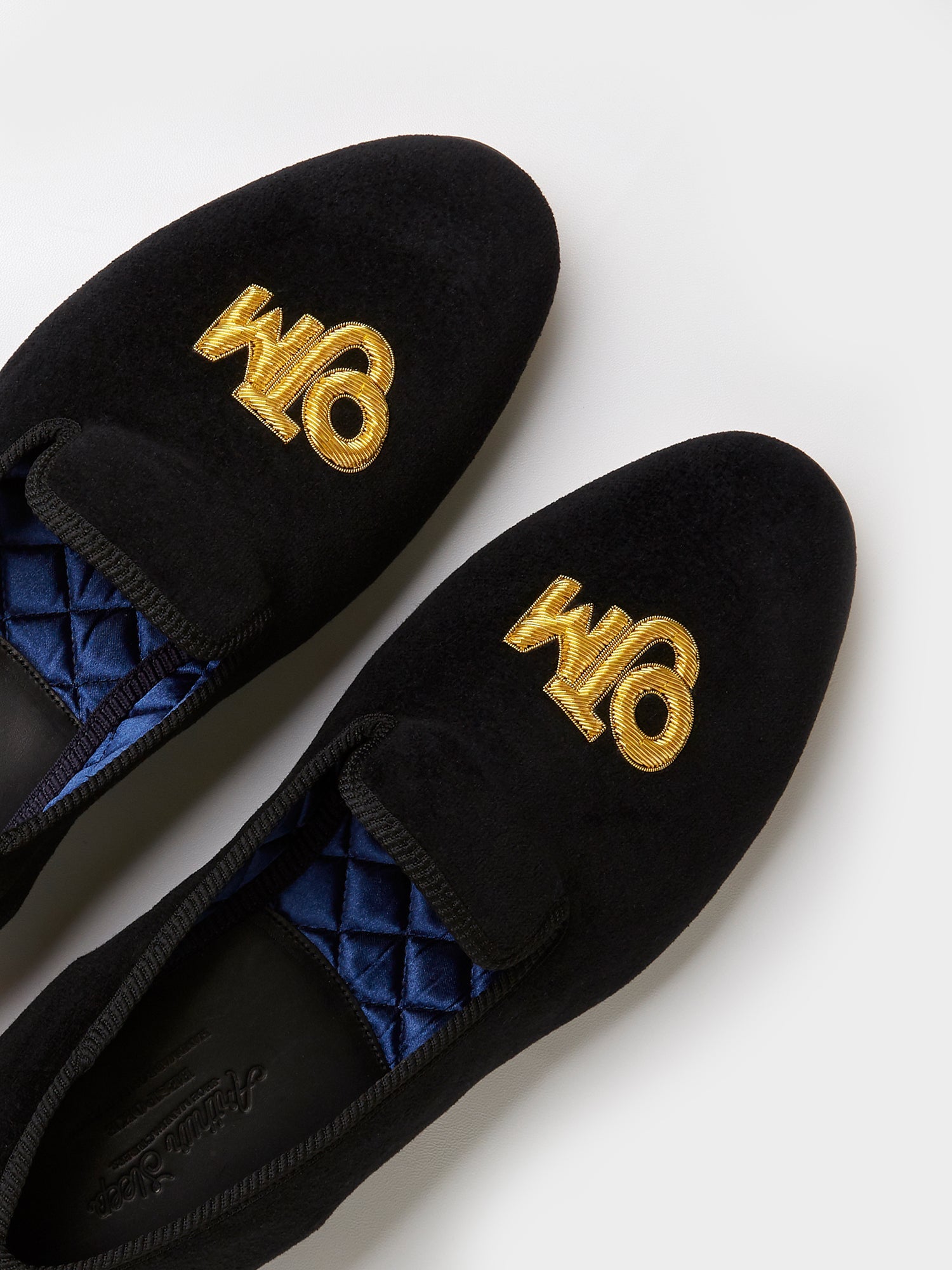 Albert Slipper in Black Velvet with Hand-Embroidered Monogram