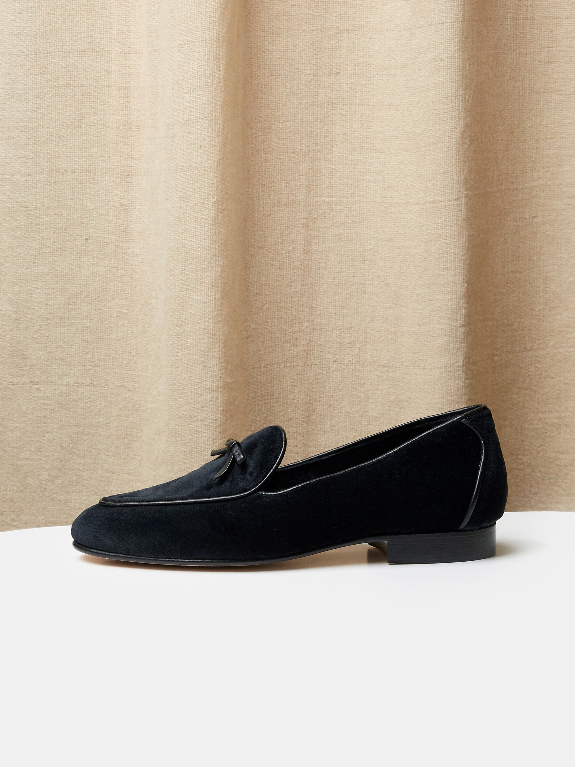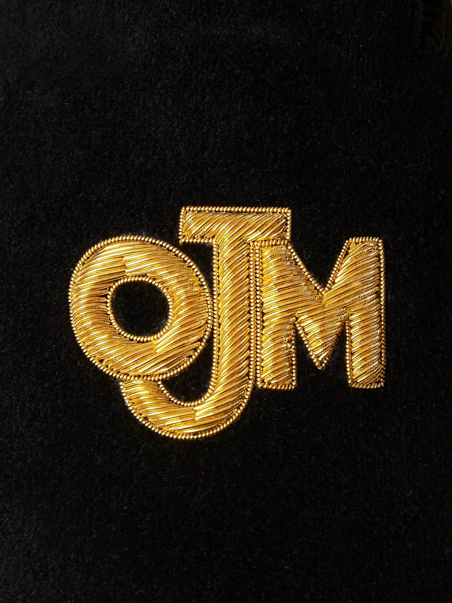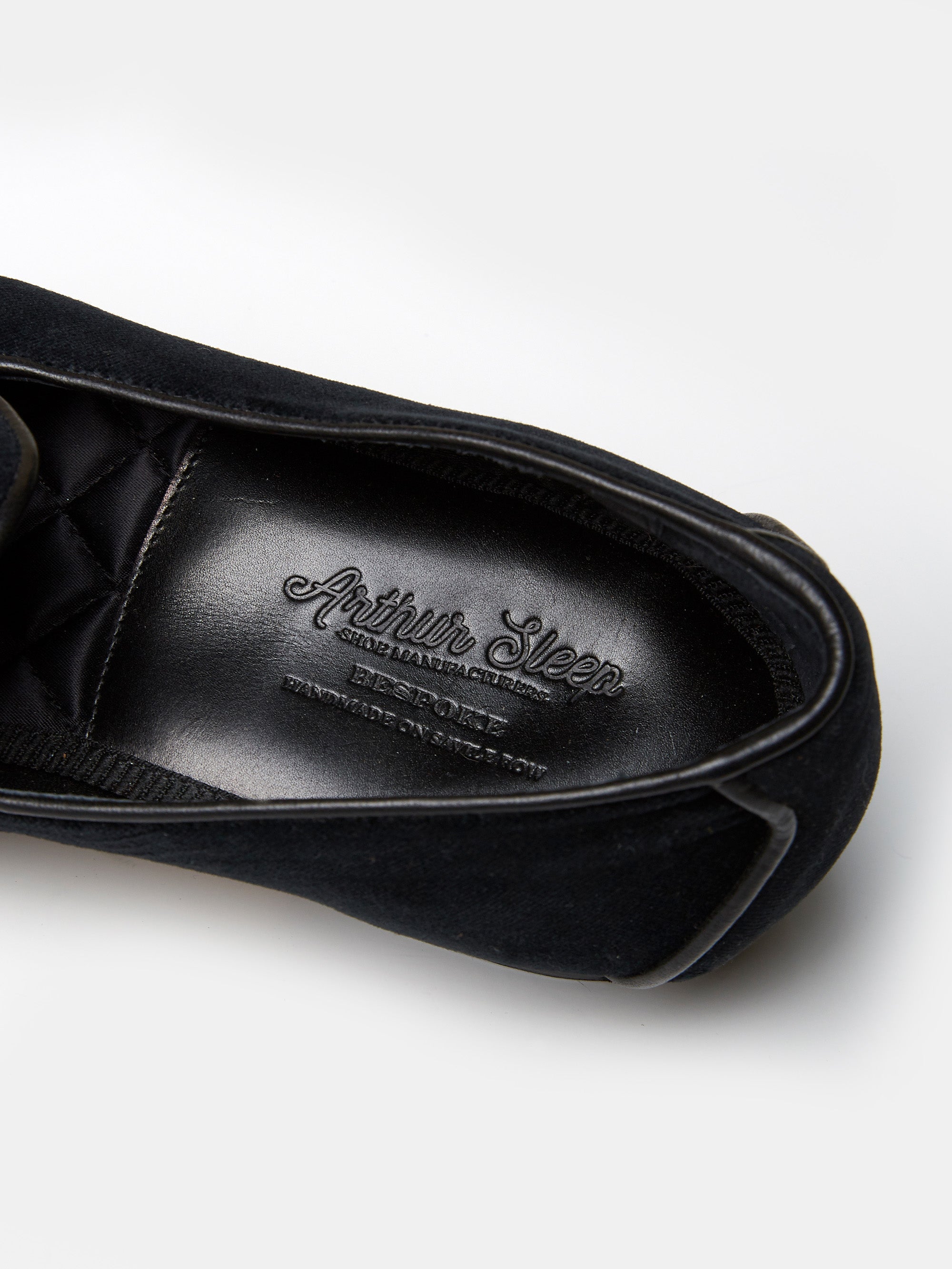 Albert Slipper in Black Velvet with Hand-Embroidered Monogram