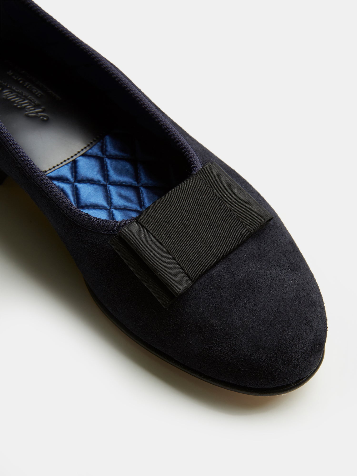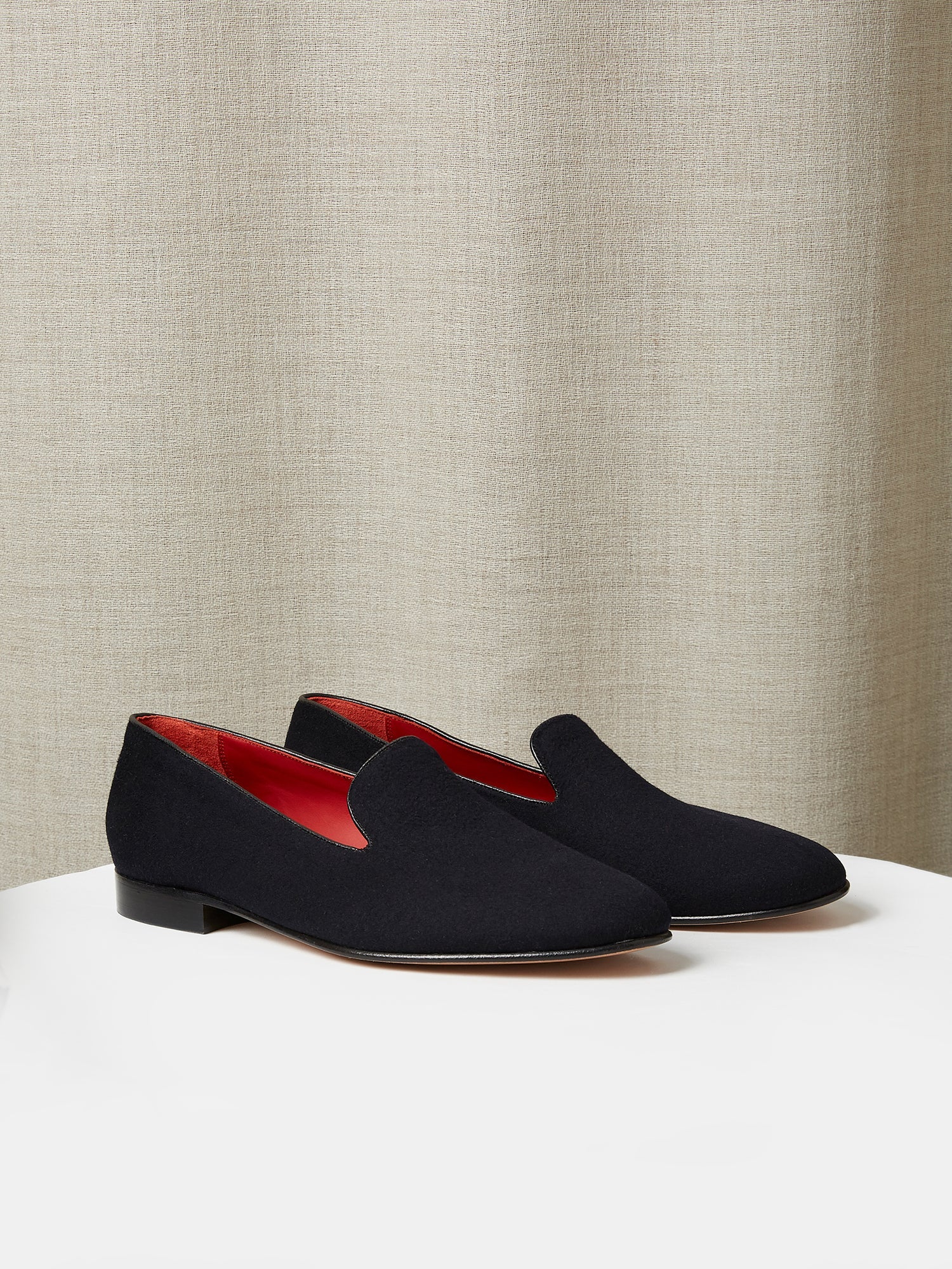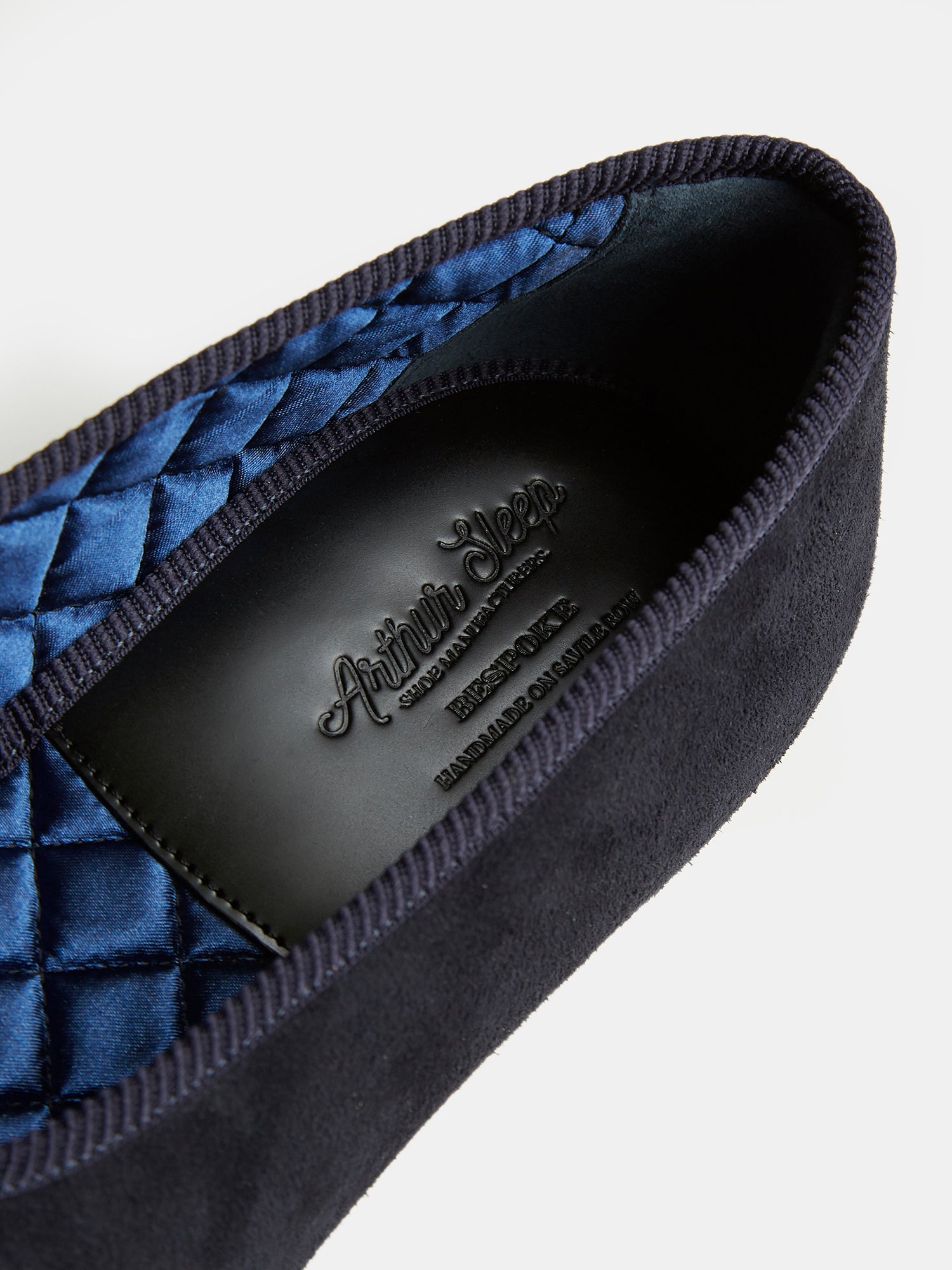 Albert Slipper in Midnight Navy Cashmere with Hand-Embroidered Monogram