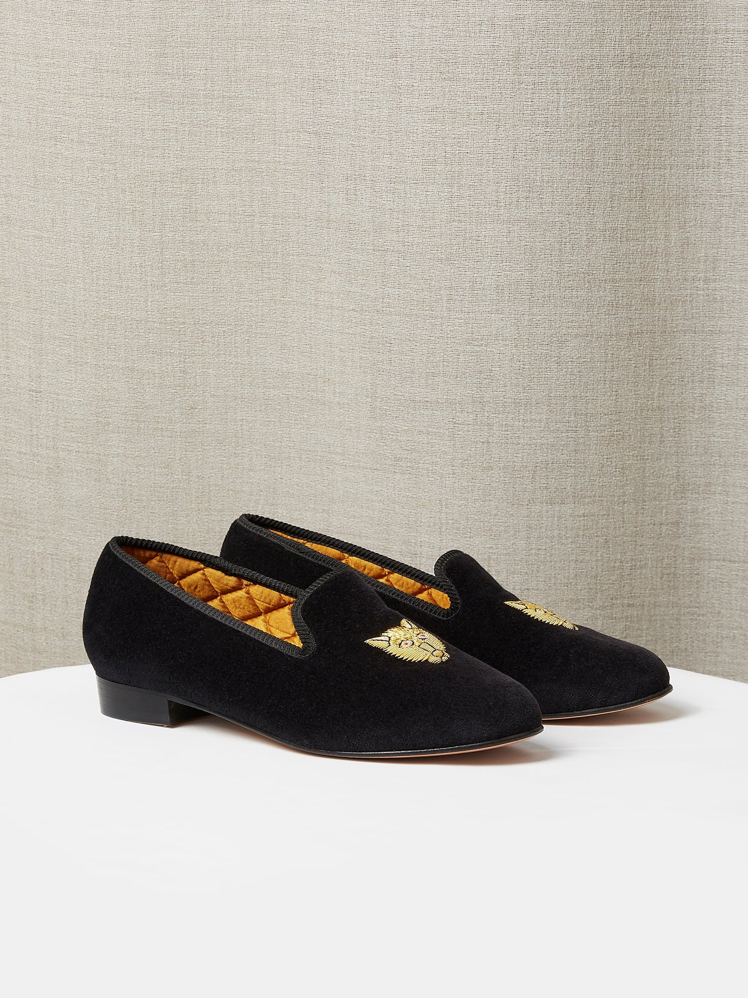 Made with luxurious silk or cotton velvet and premium leather soles in our London factory.