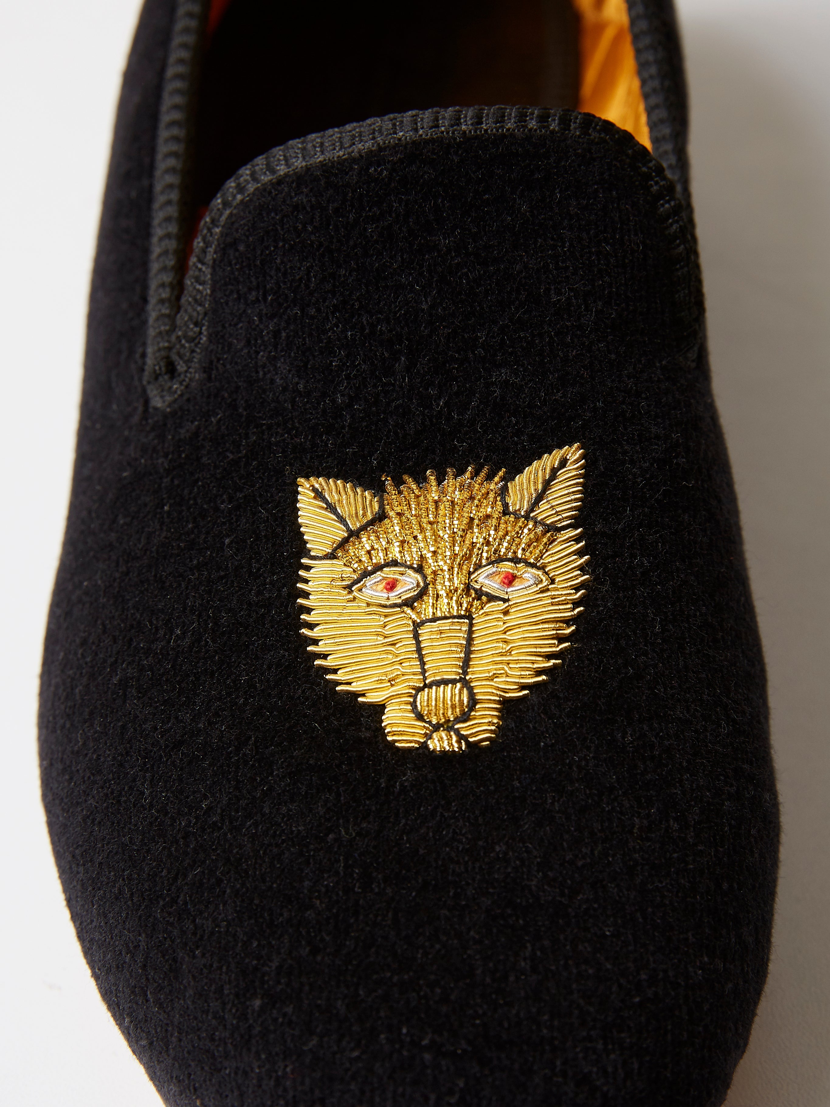 Albert Slipper Hand-Embroidered in Black Velvet
