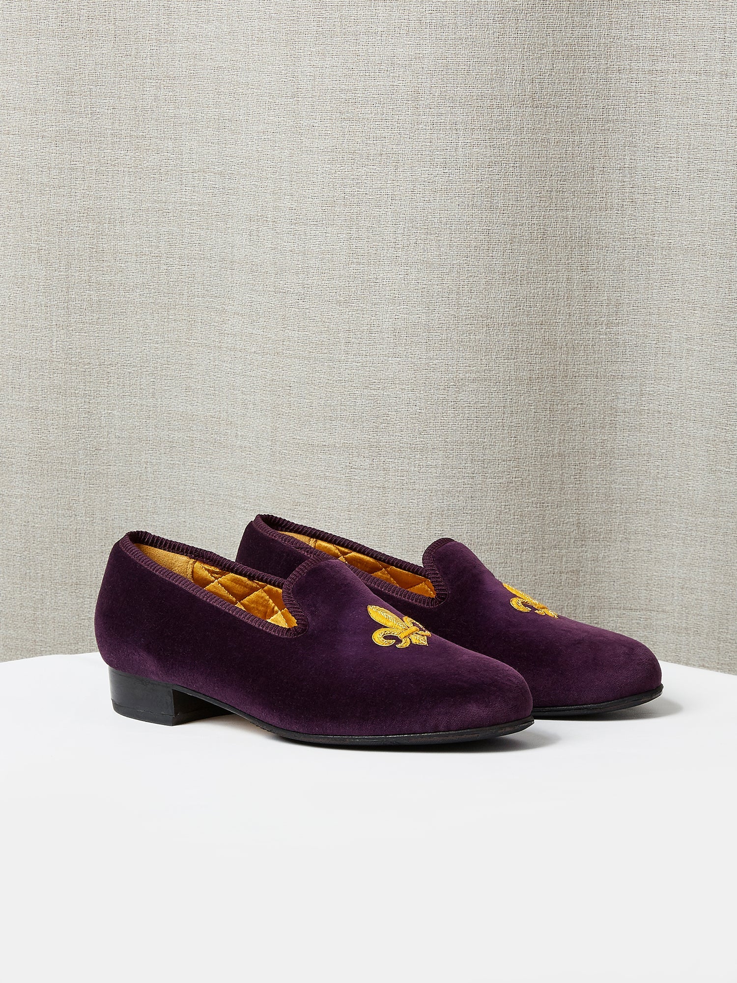 Made with luxurious silk or cotton velvet and premium leather soles in our London factory.
