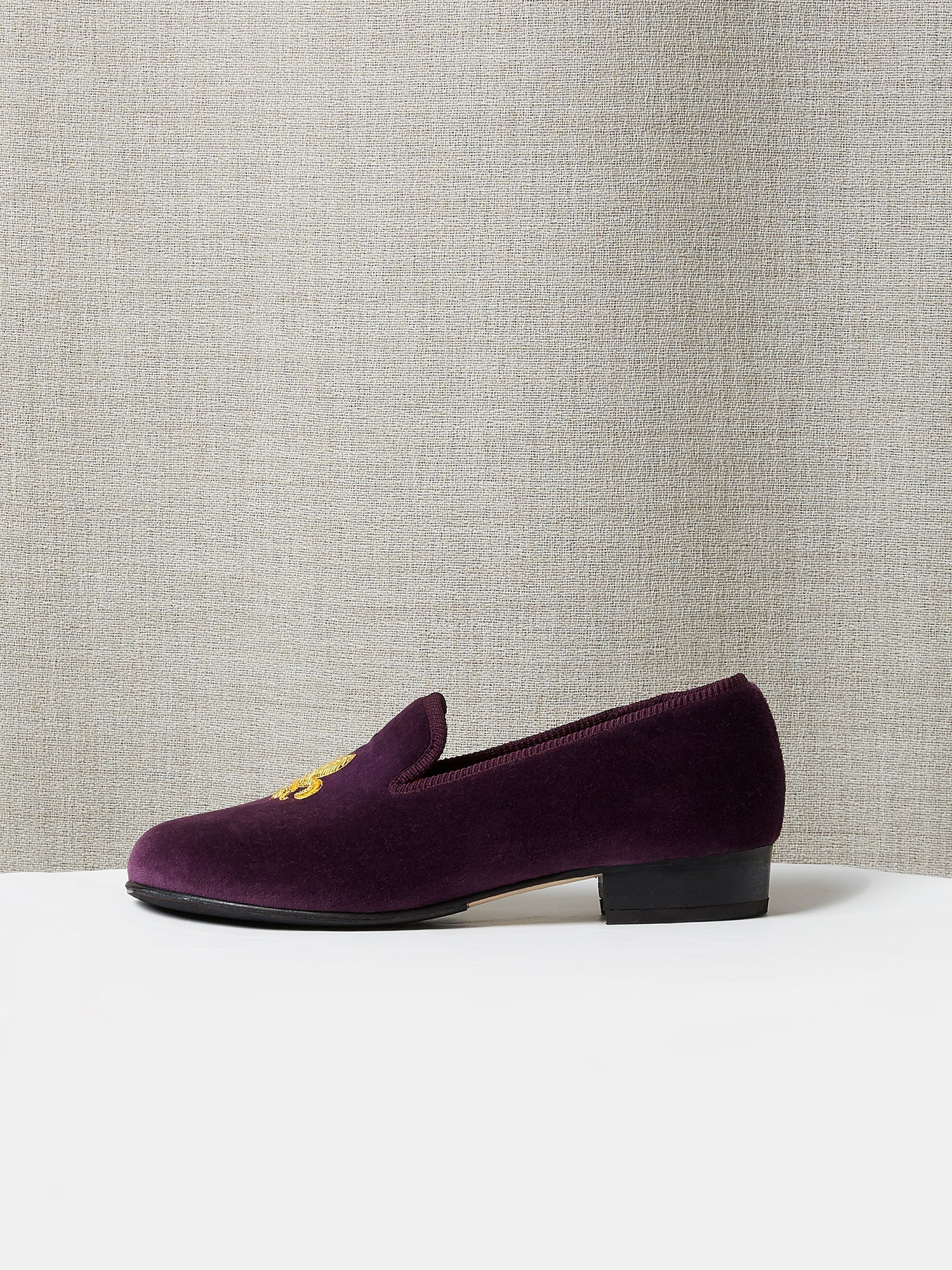 Albert Slipper Hand Embroidered in Deep Purple Velvet