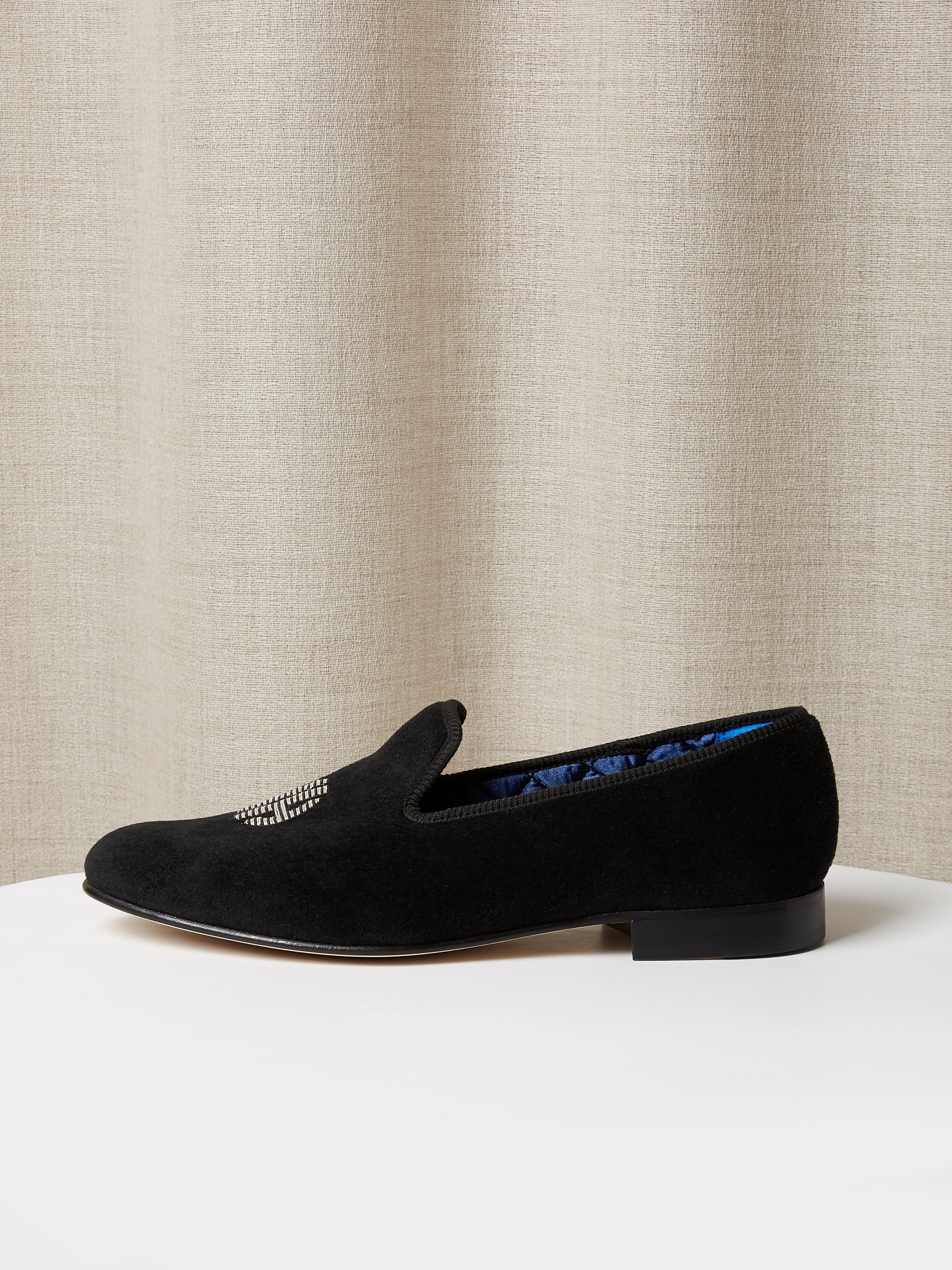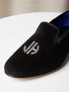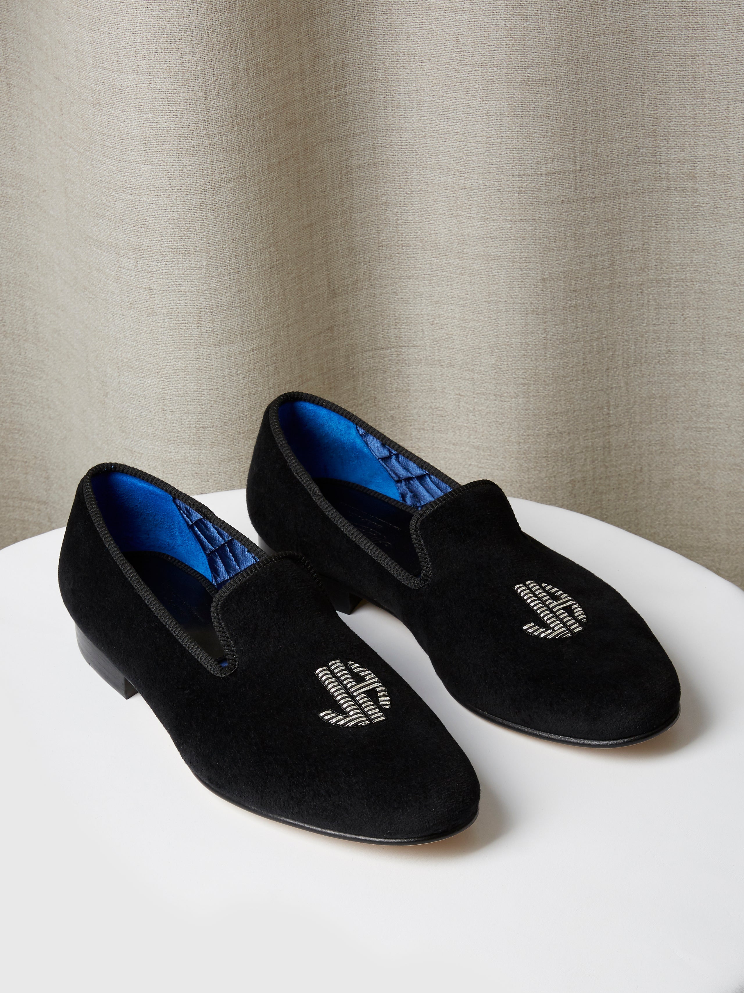 Albert Slipper in Black Velvet with Hand-Embroidered Monogram