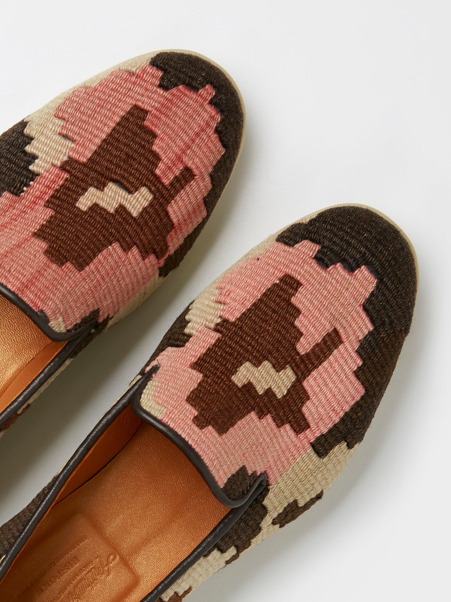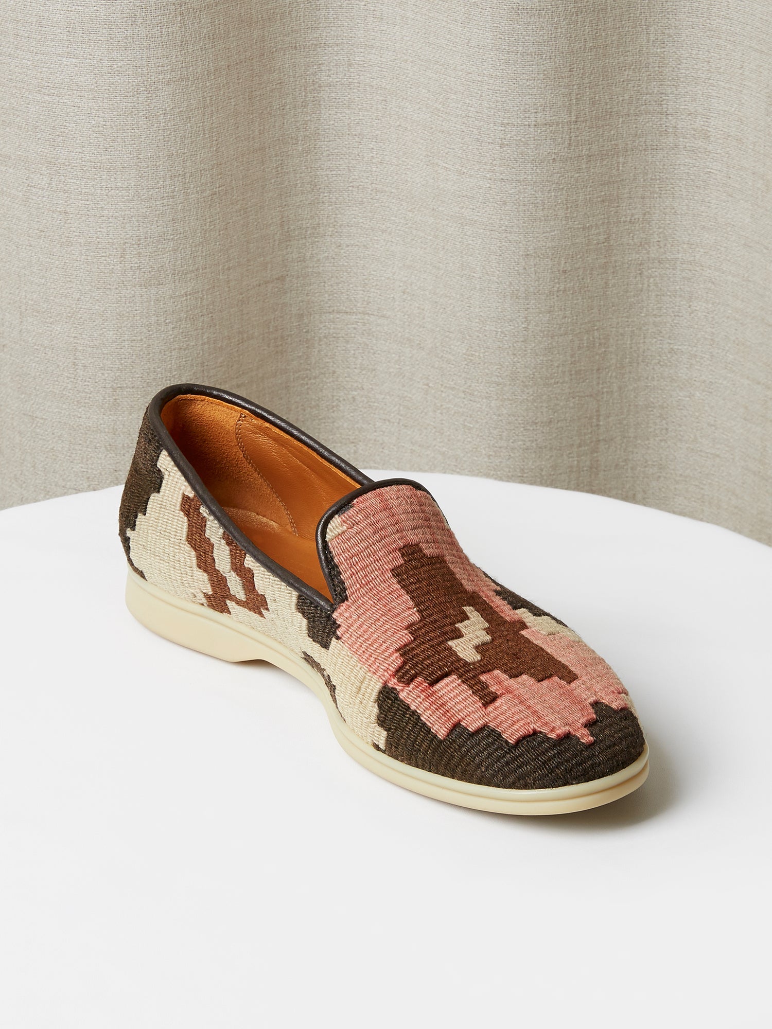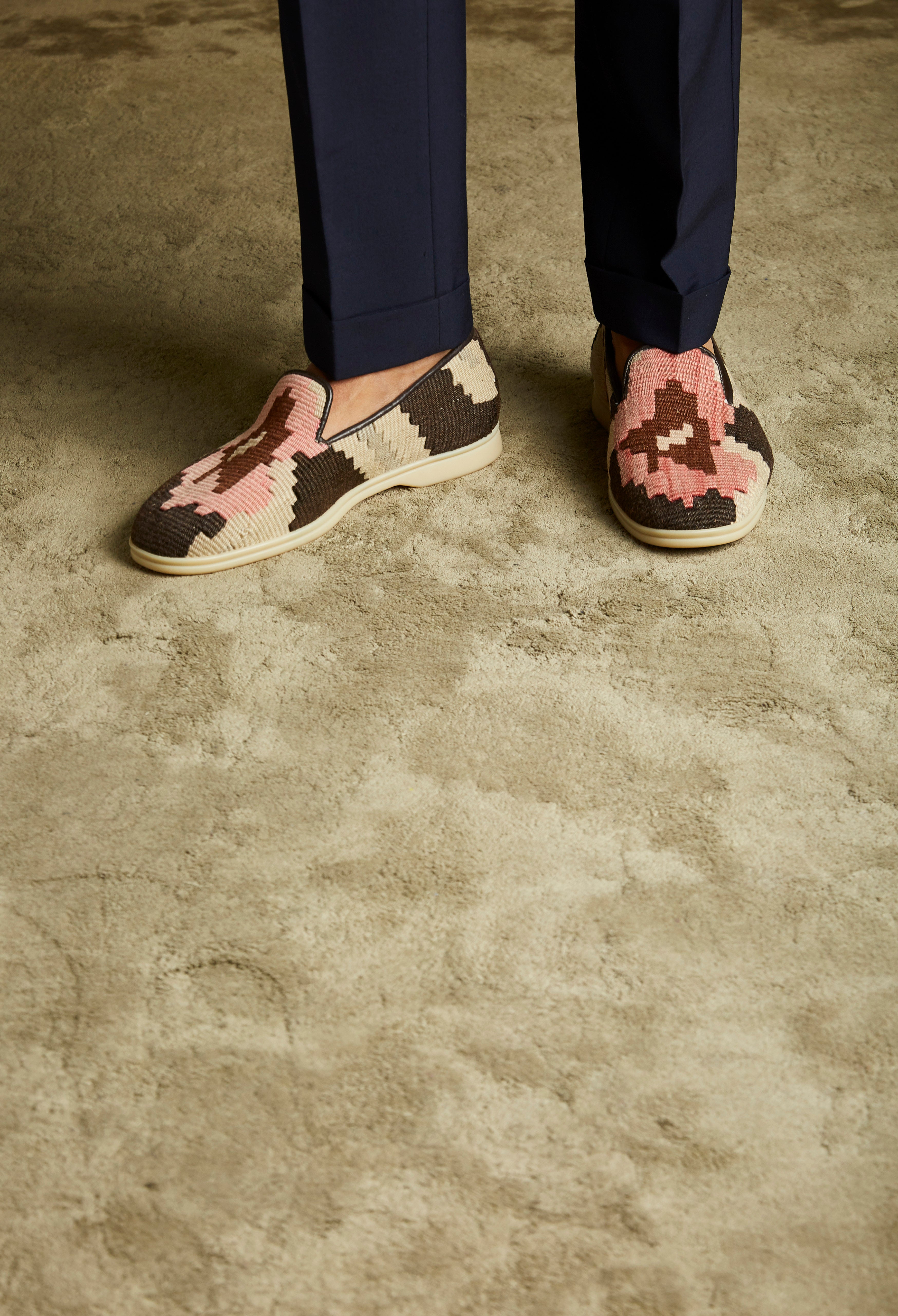 Handcrafted from traditional textiles of the former Persian Empire, our Kilim loafers are a colourful tapestry of culture and endurance. Woven by skilled artisans, each pair narrates folk stories through vibrant patterns, offering a unique, regenerative touch.