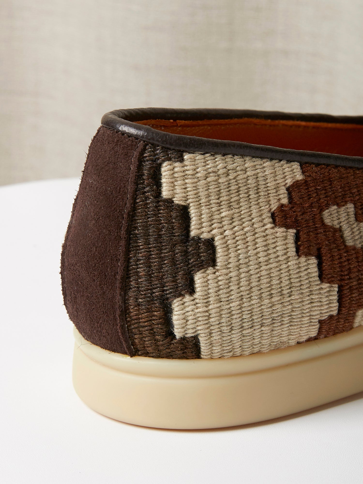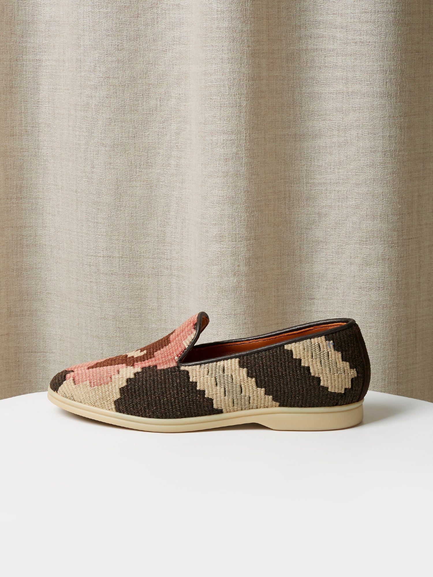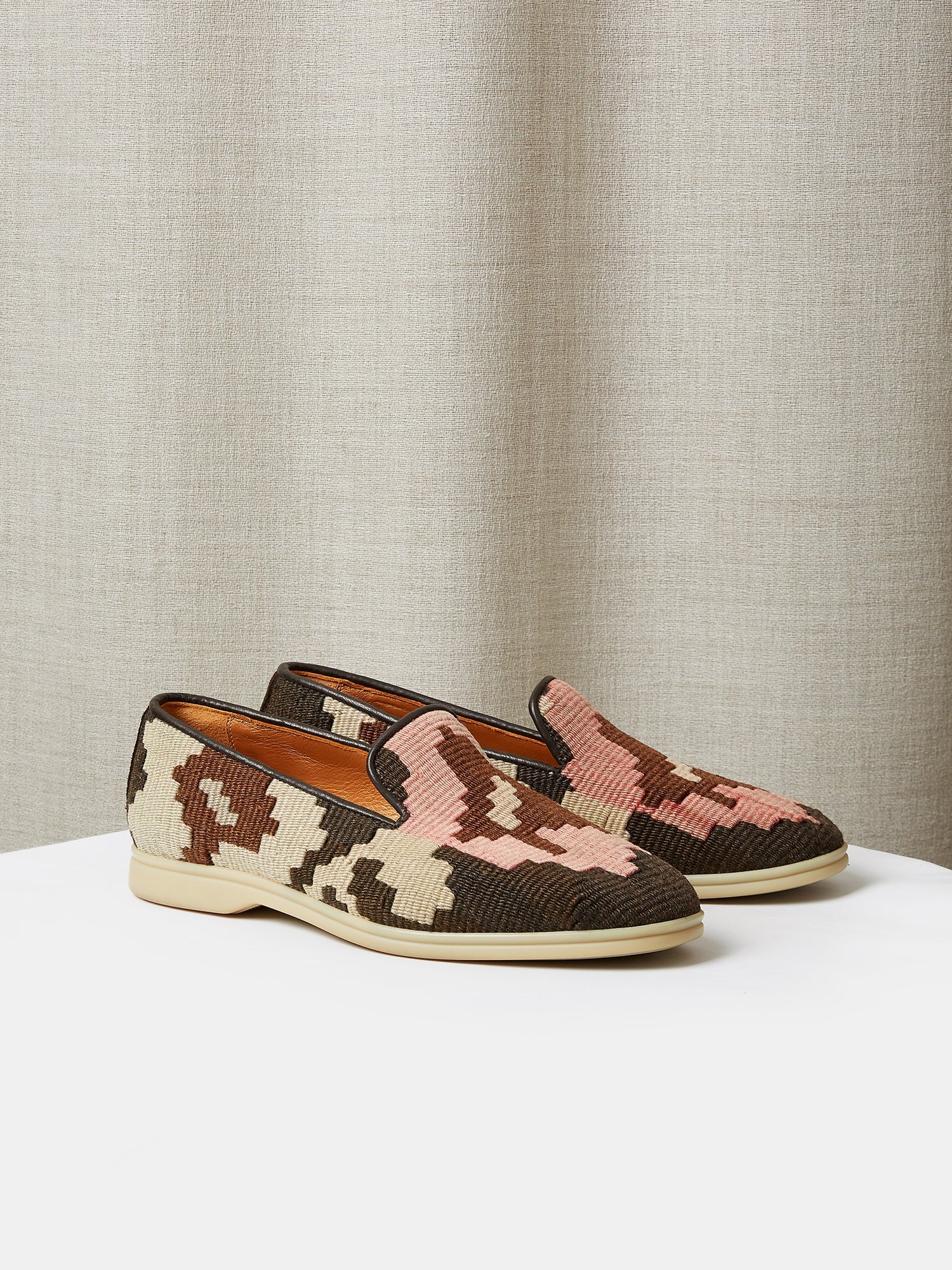 Handcrafted from traditional textiles of the former Persian Empire, our Kilim loafers are a colourful tapestry of culture and endurance. Woven by skilled artisans, each pair narrates folk stories through vibrant patterns, offering a unique, regenerative touch.