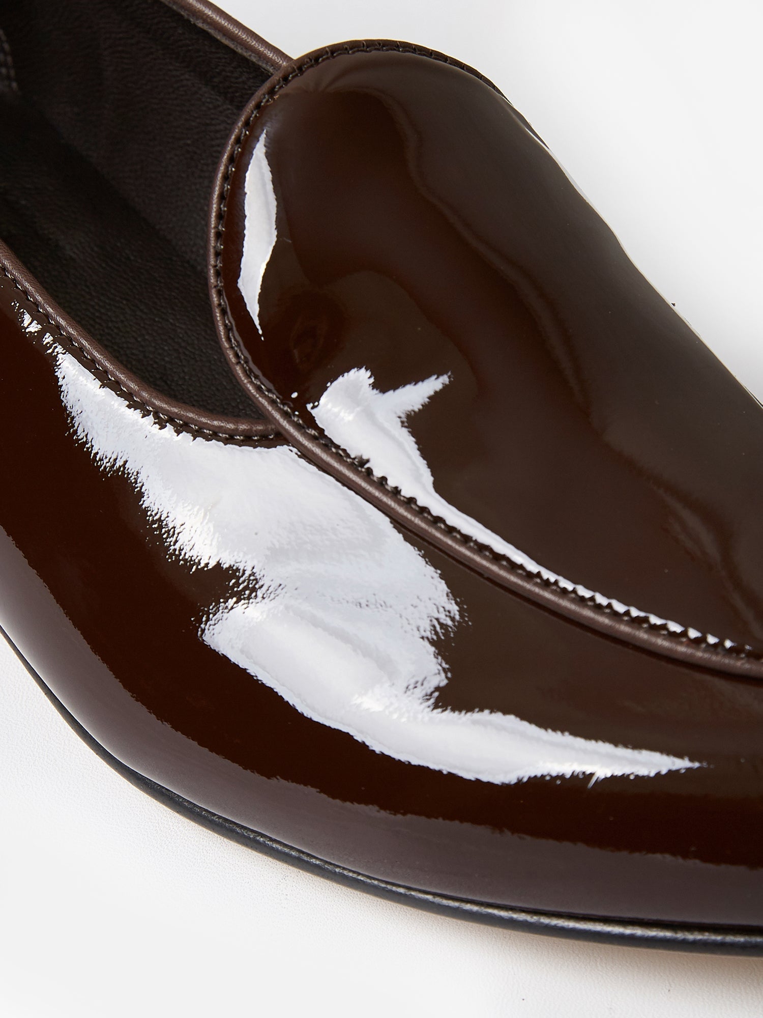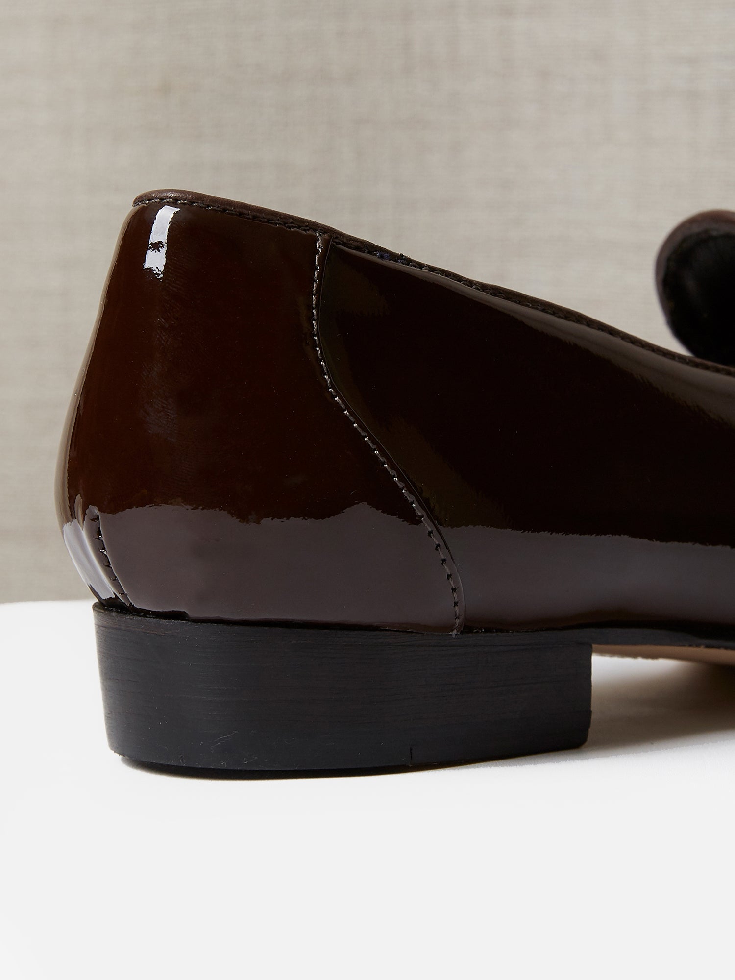 Made with glossy and water resistant patent calf and a refined Italian leather sole: comfortable, flexible, and battle-tested.