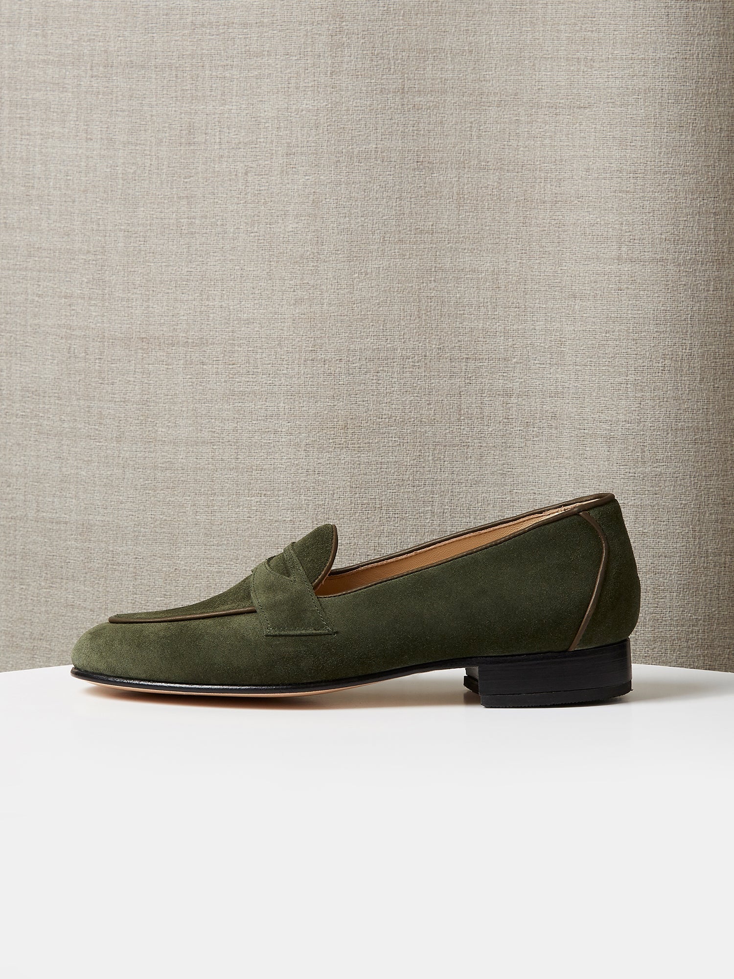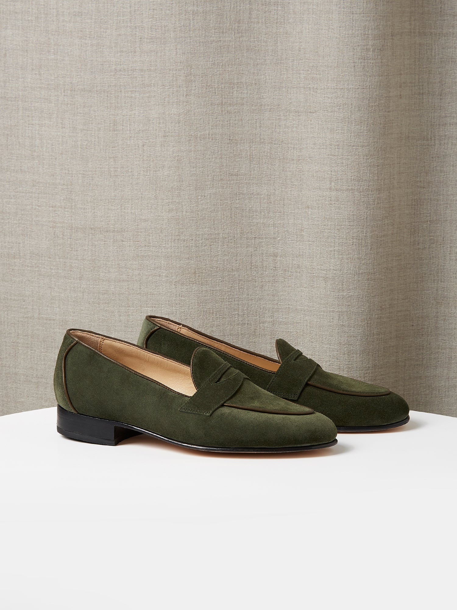 Belgian Penny Loafer in Forest Green Suede