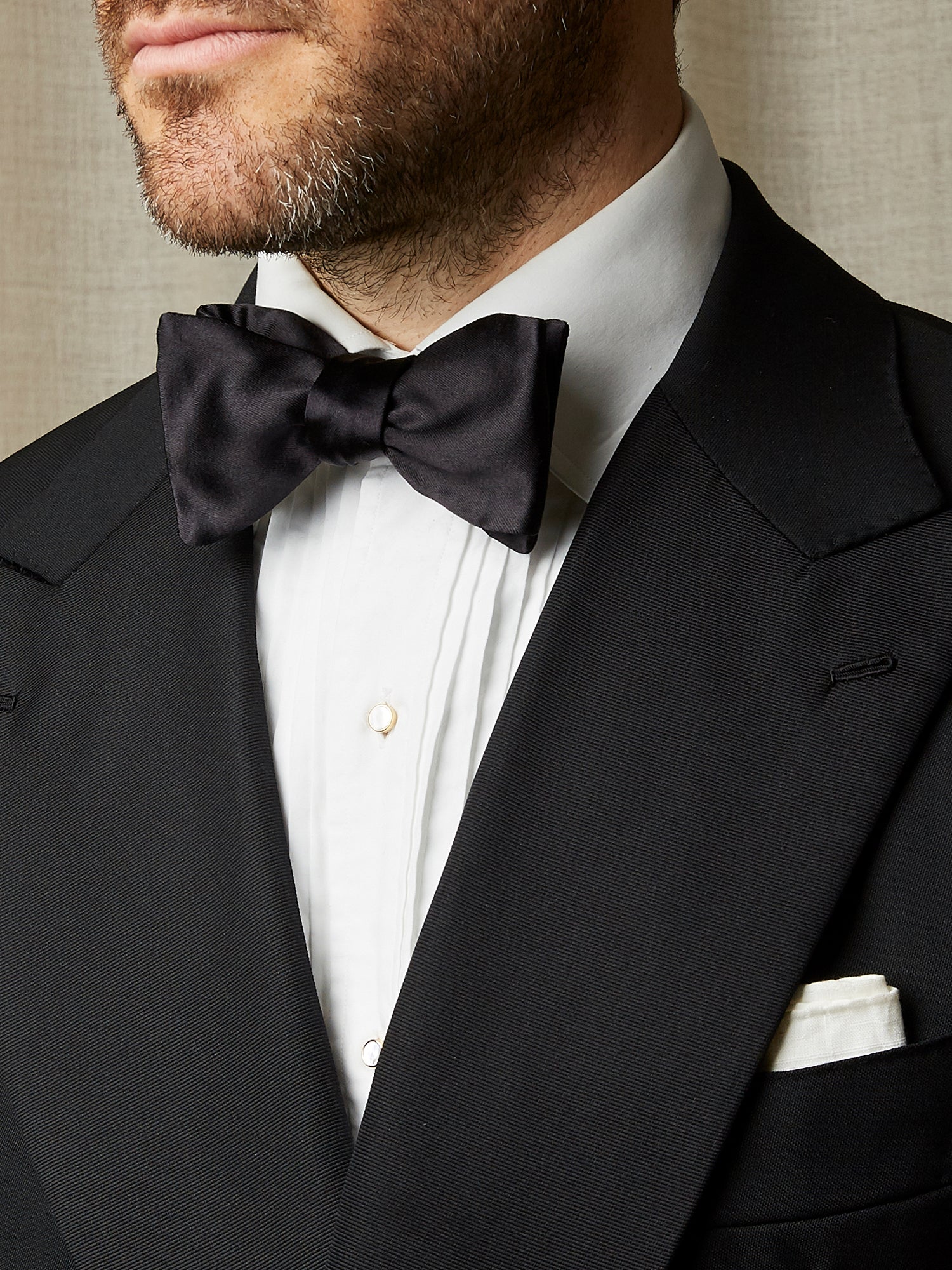 A classic bow tie in black silk satin, the perfect finishing touch for any black tie event.