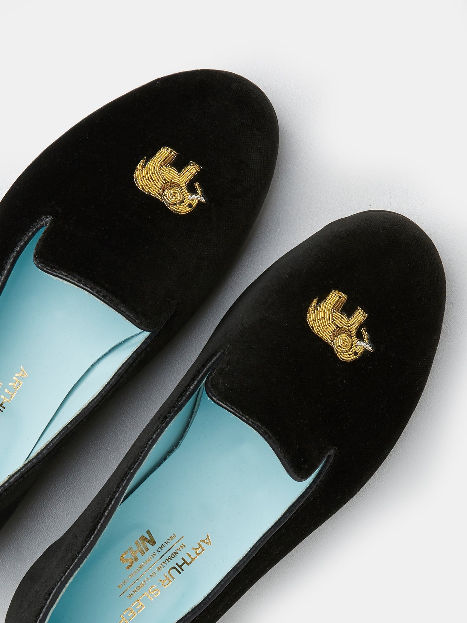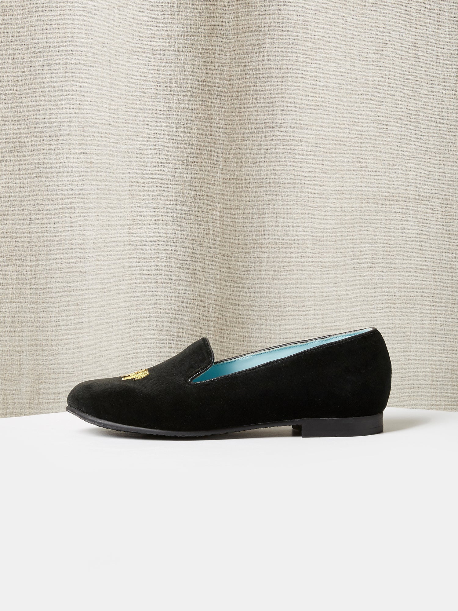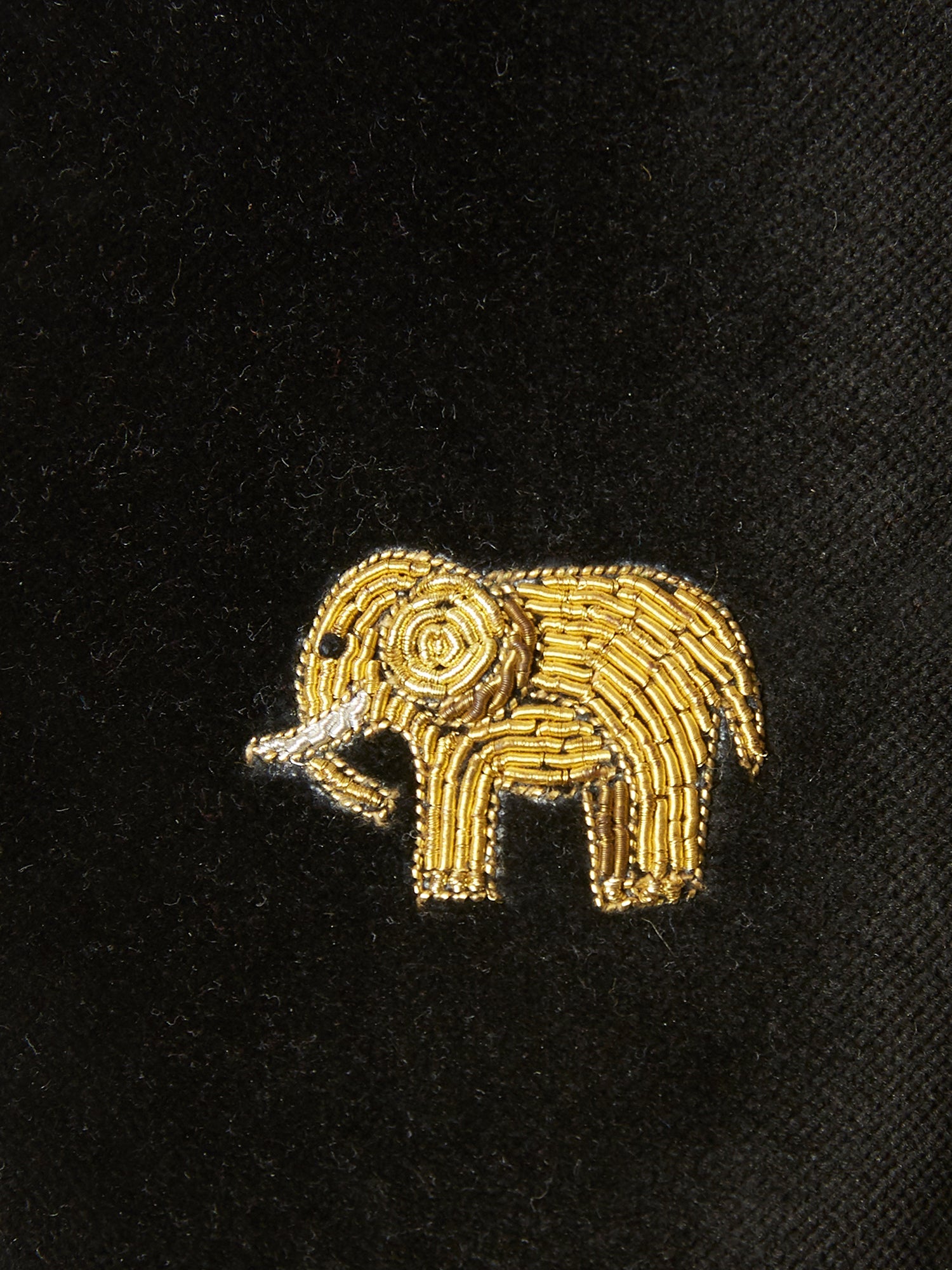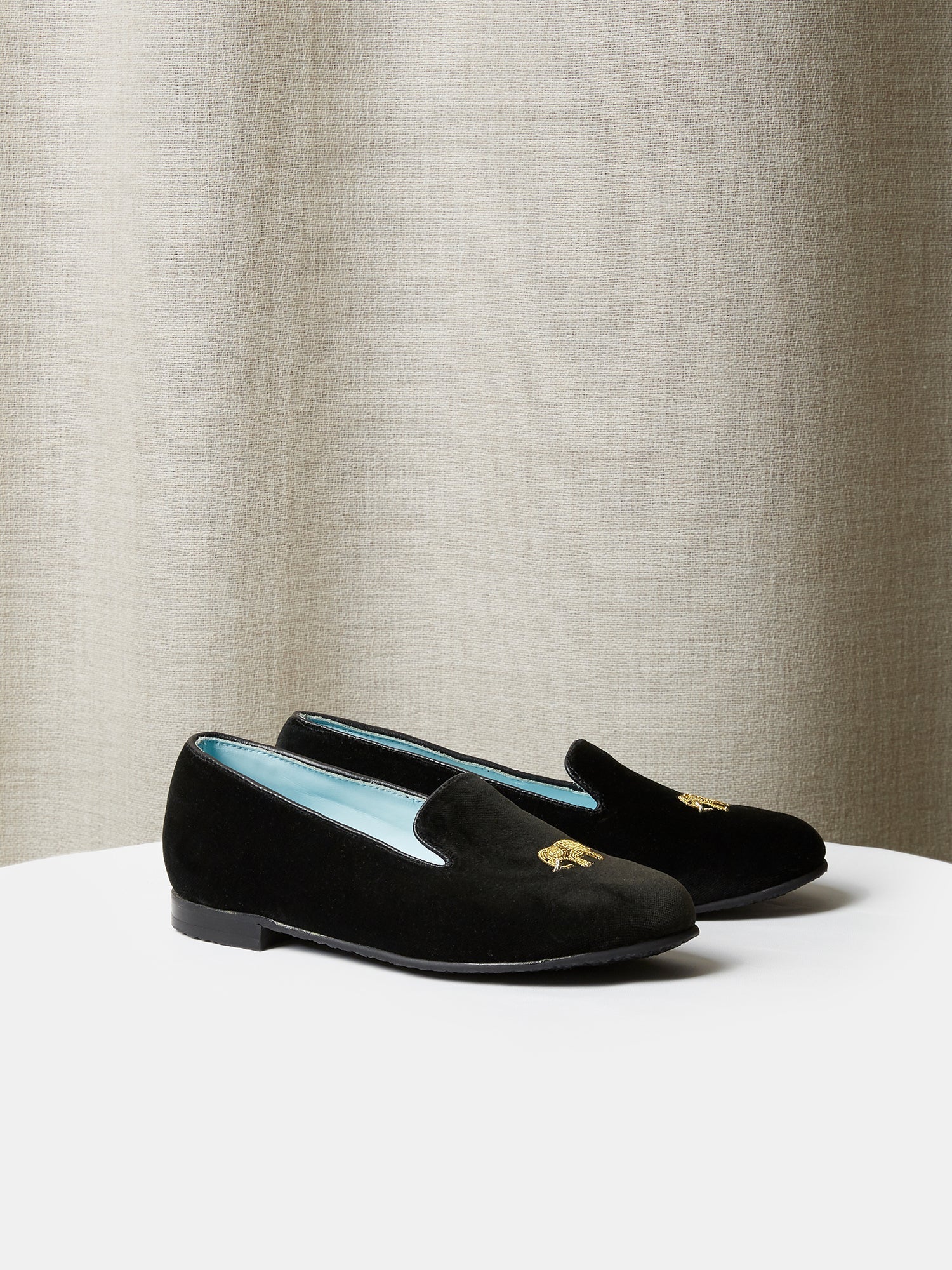Children's Loafers in Black Velvet with Elephant Embroidered