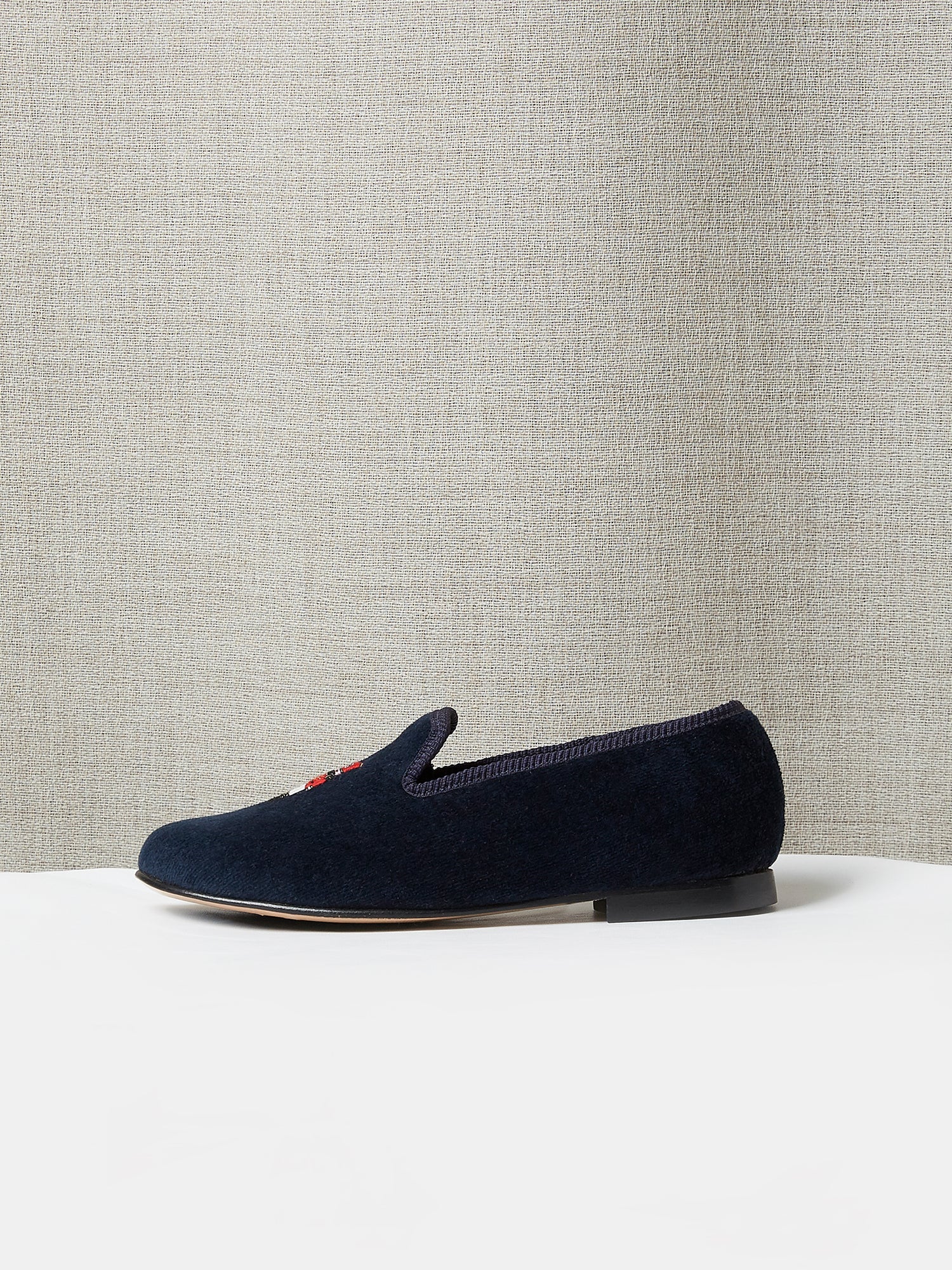 Constructed to the same exacting standards as our adult shoes, these children’s loafers have a playful hand embroidered motif. They are smart, highly versatile, and luxuriously comfortable.