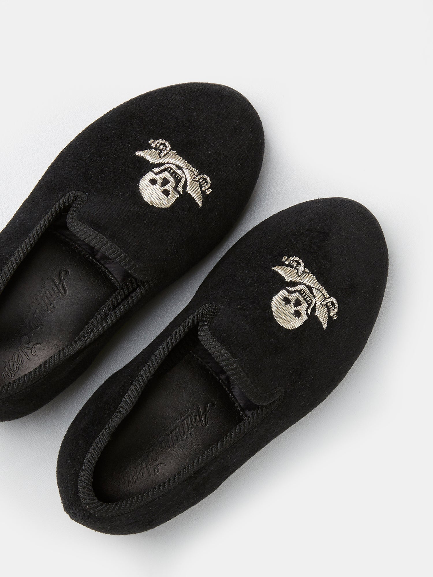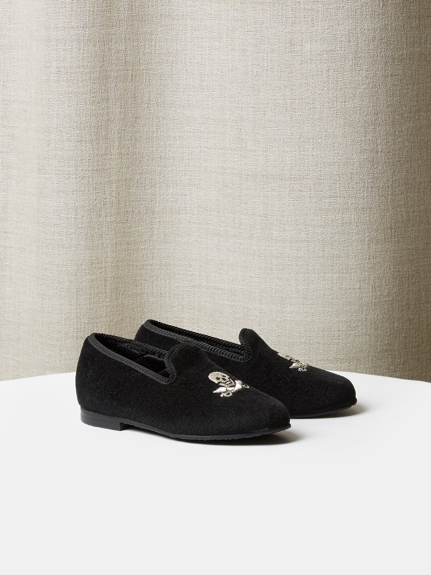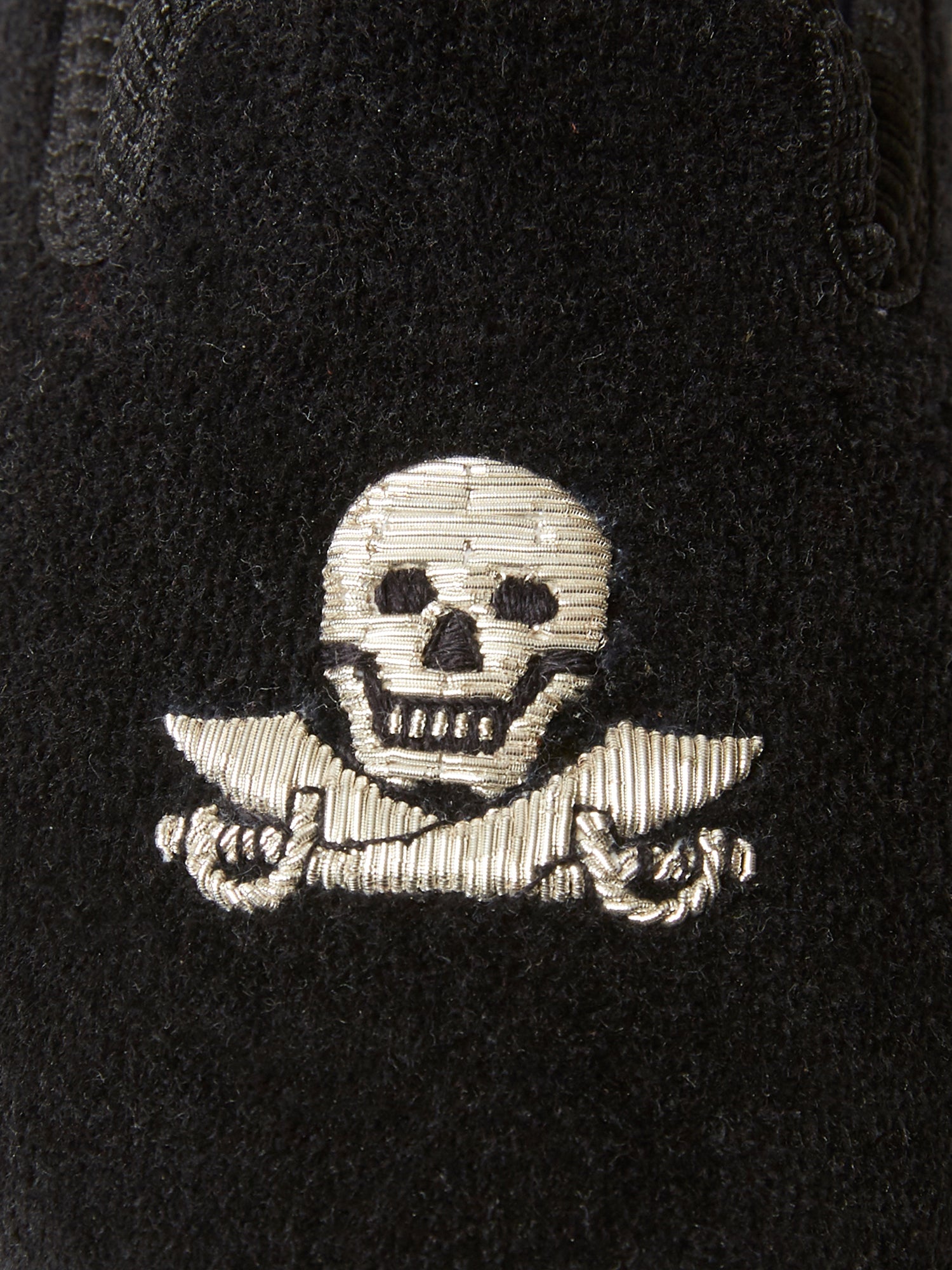 Children's Loafers in Black Velvet with Skull & Cutlass Embroidery