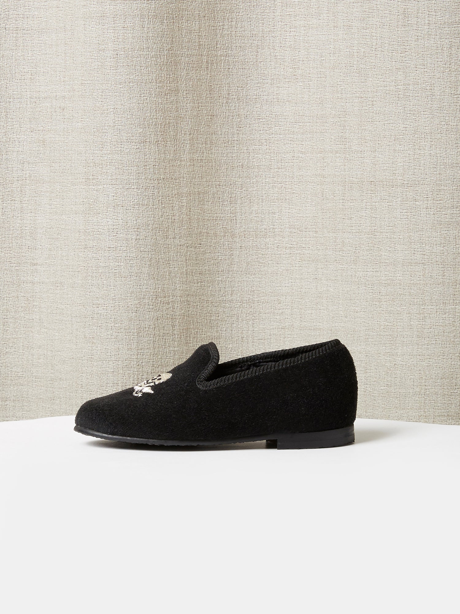 Constructed to the same exacting standards as our adult shoes, these children’s loafers have a playful, hand embroidered motif. They are smart, highly versatile, and luxuriously comfortable.
