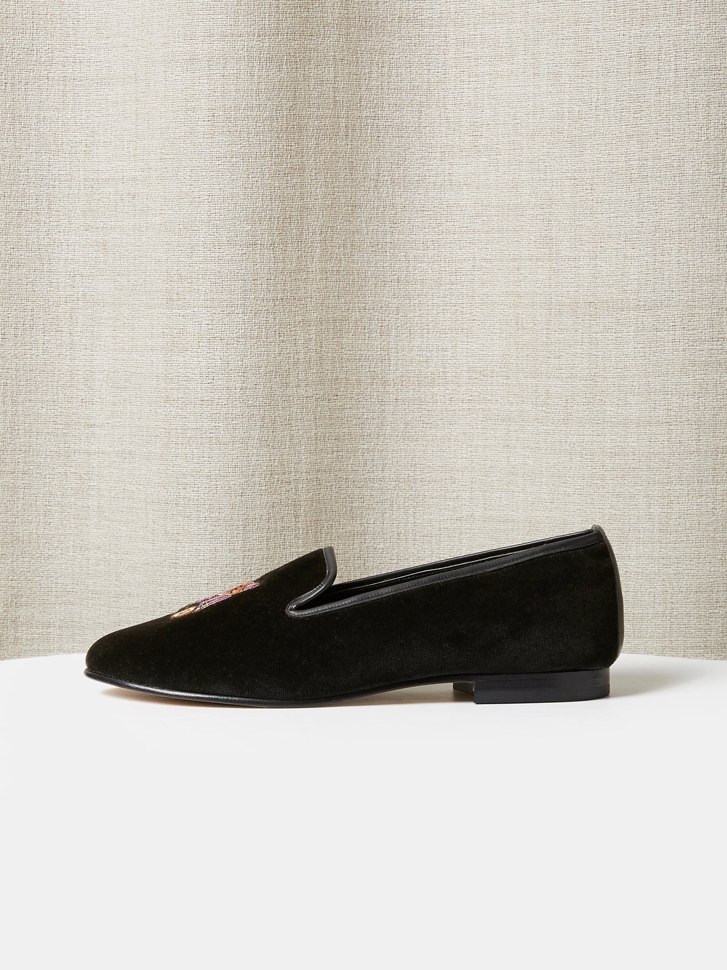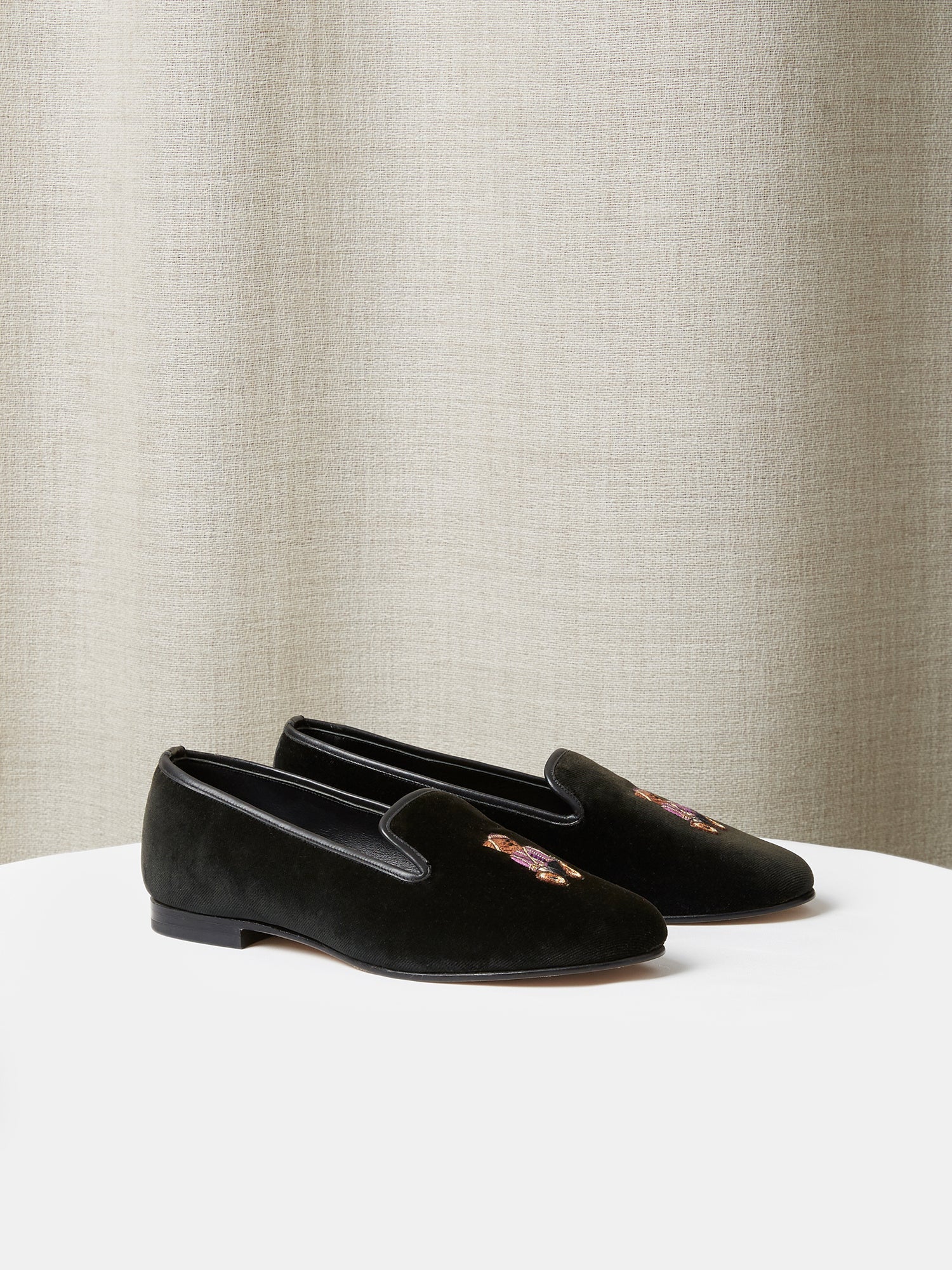 Constructed to the same exacting standards as our adult shoes, these children’s loafers have a playful, hand embroidered motif. They are smart, highly versatile, and luxuriously comfortable.