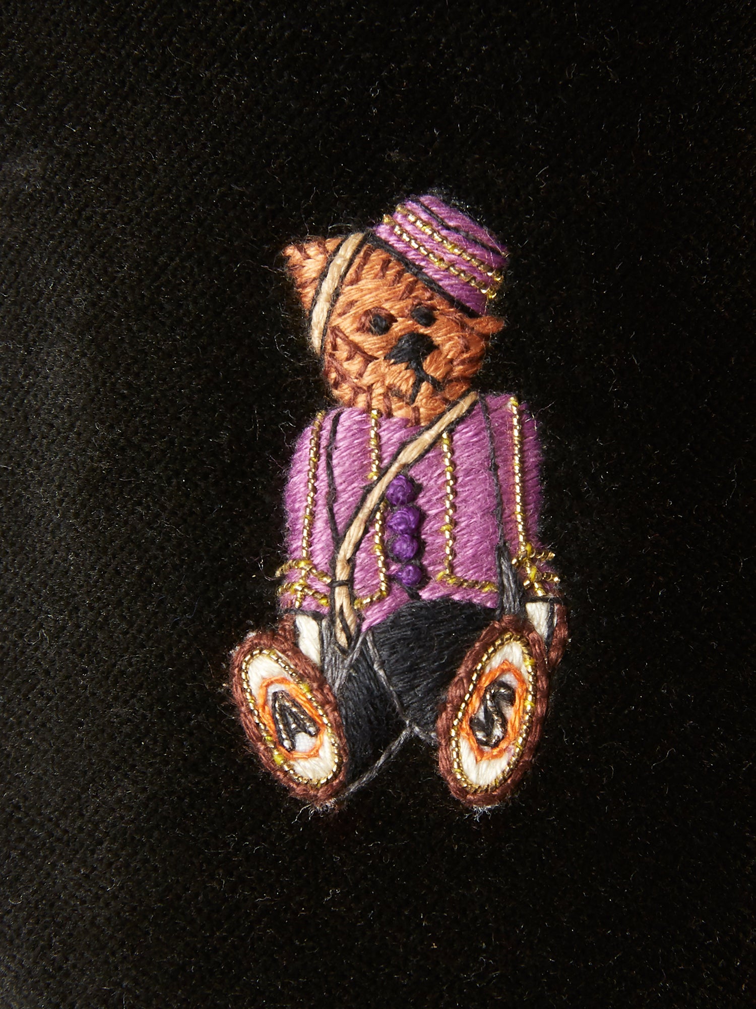 Children's Loafers in Black Velvet with Teddy Bear Embroidery
