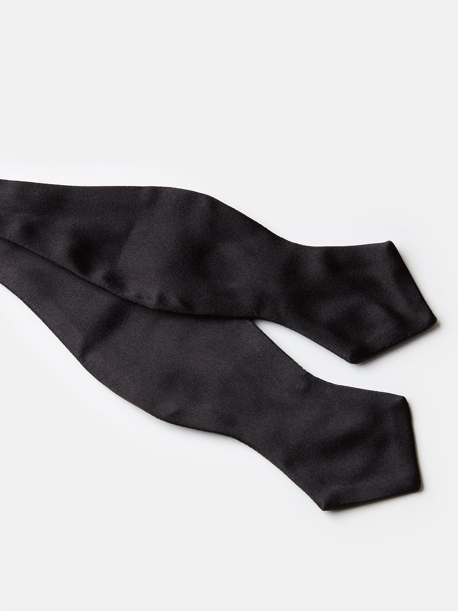 Diamond Point Bow Tie in Black Silk Satin - Self Tie