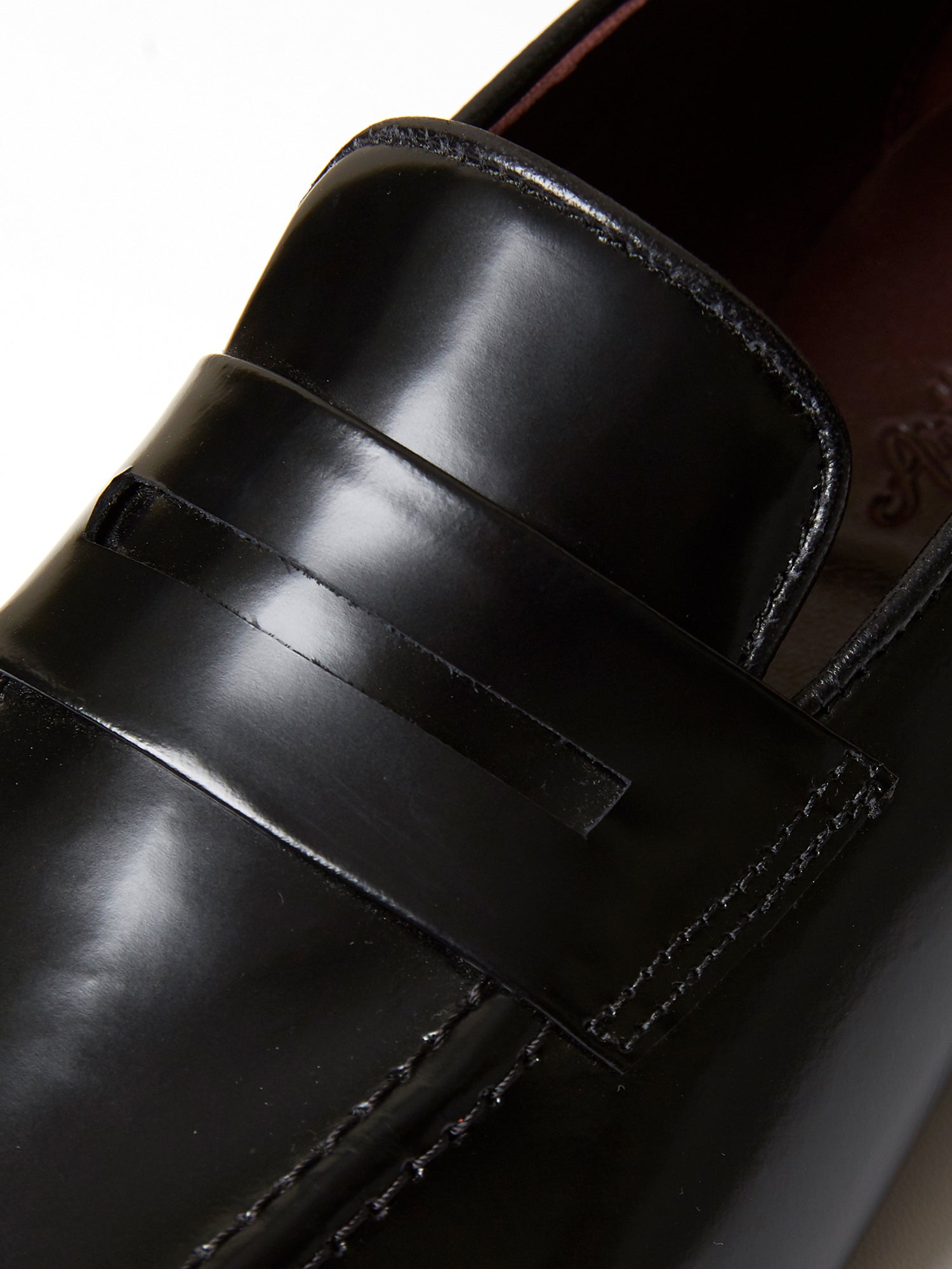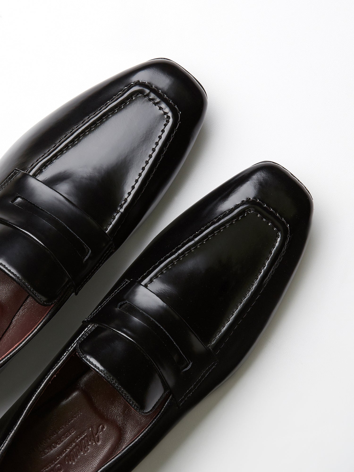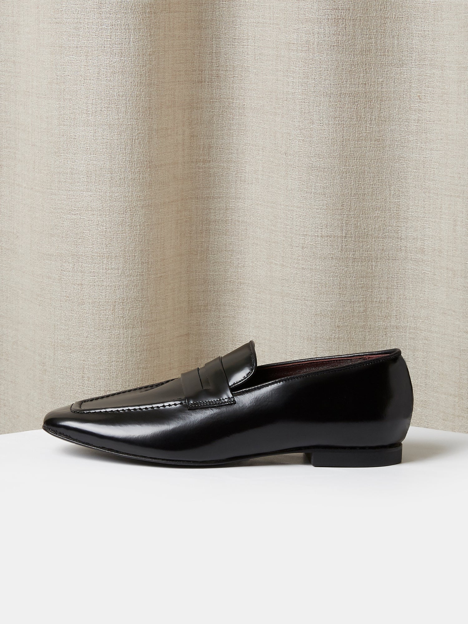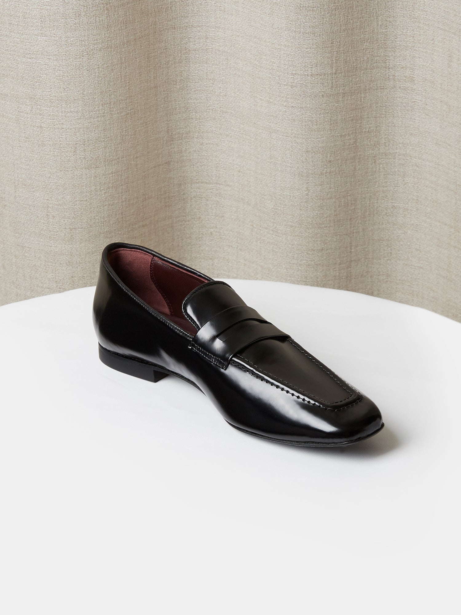 A timeless classic, the penny loafer. Infused with a penny strap, it lends a nostalgic note to this iconic design, while the pintuck detailing on the apron offers a contemporary touch.