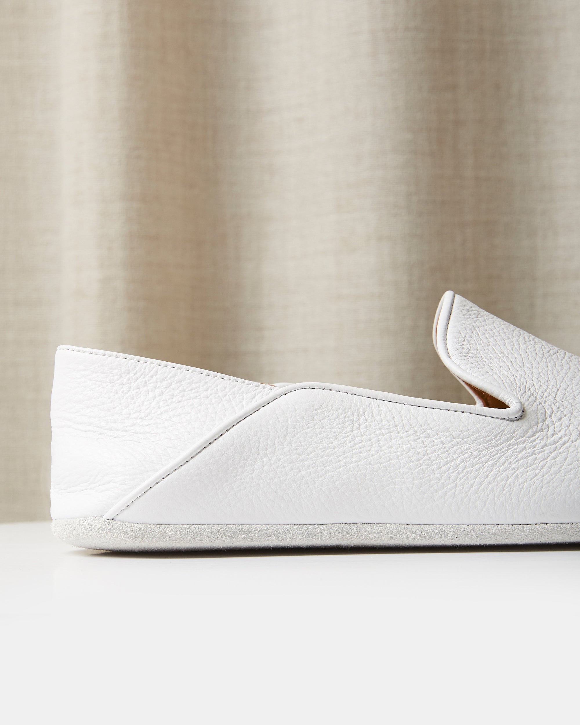 Encased in its own sleek carrier, this mule is meticulously crafted from deer leather, renowned for its extraordinary softness yet durable enough for any journey.