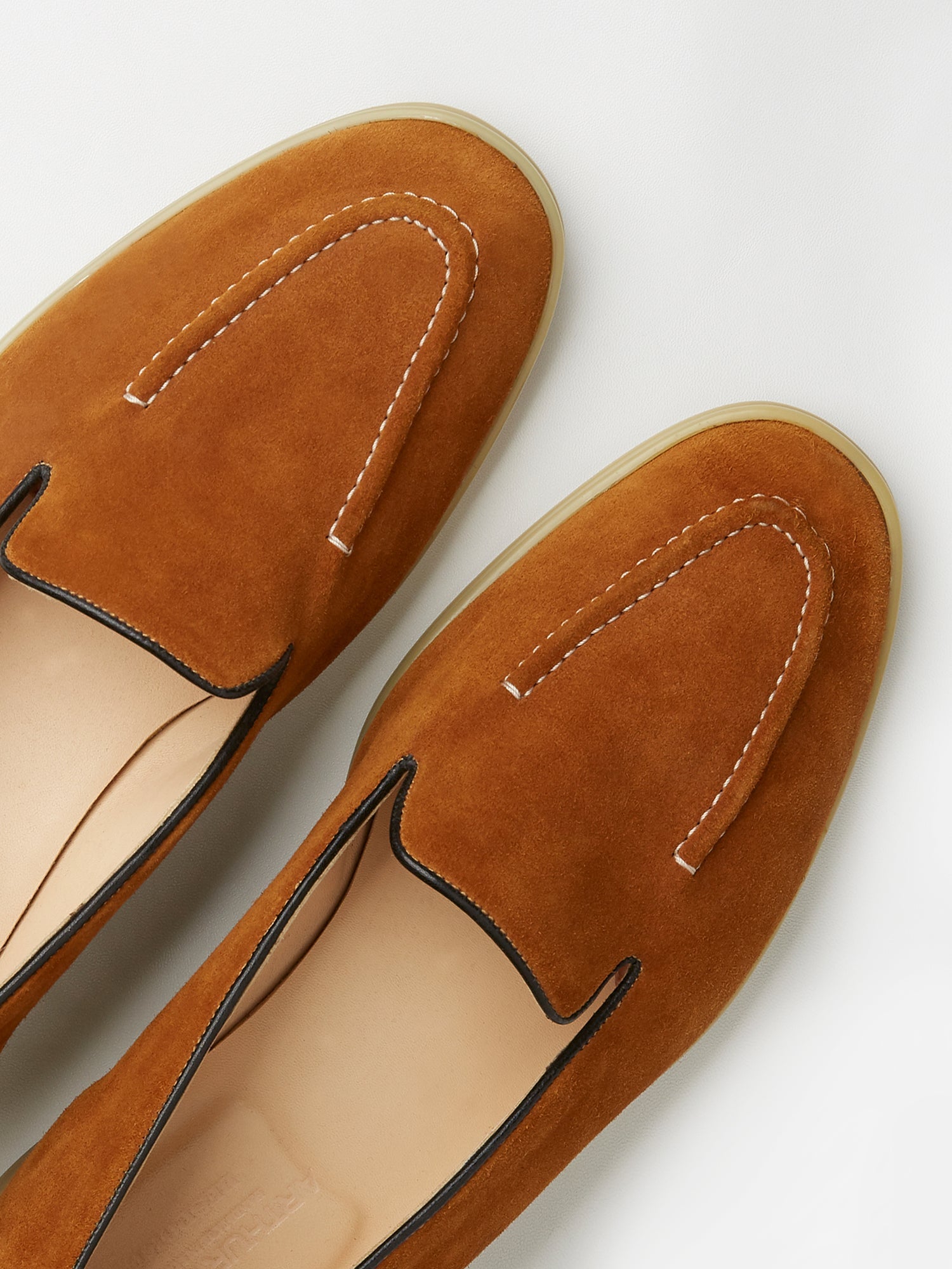 Particularly useful for travel, these elegant yet relaxed suede loafers are at their best paired with washed chinos, lightweight denim, and linen suits.