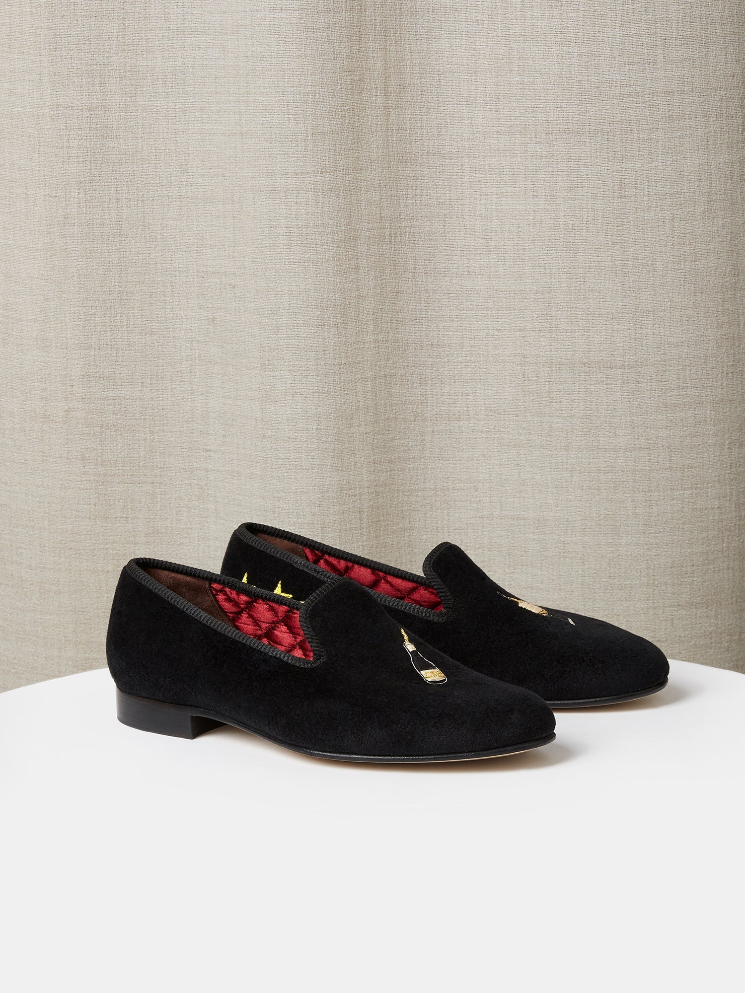 Albert Slipper in Black Velvet with Cocktail Hand-Embroidery