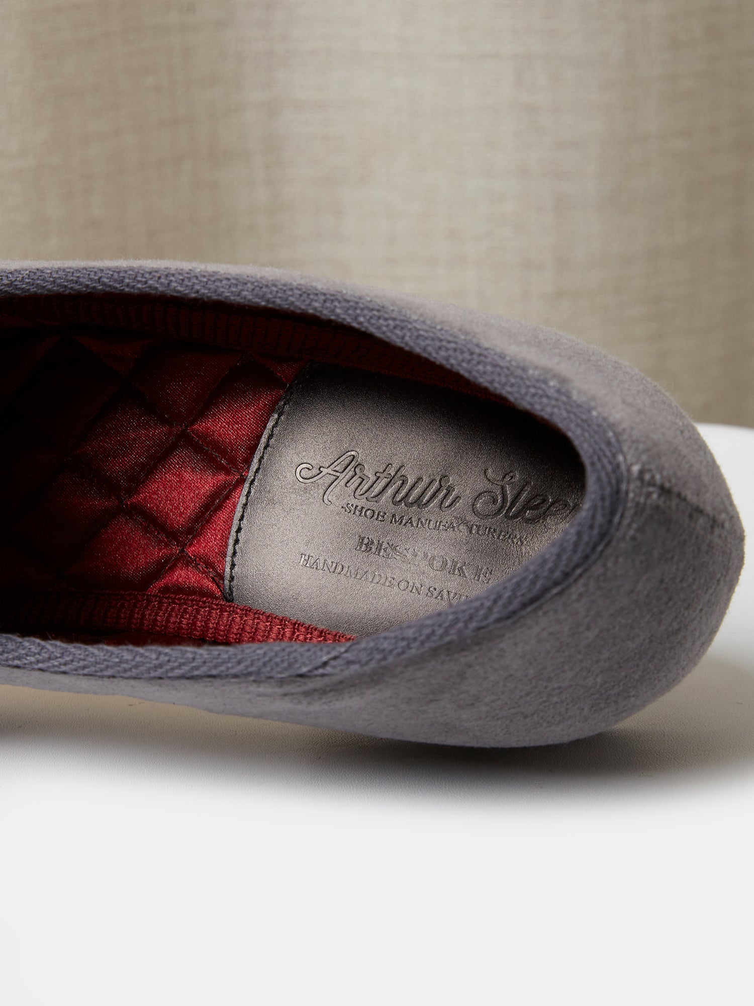Made with luxurious silk or cotton velvet and premium leather soles in our London factory.