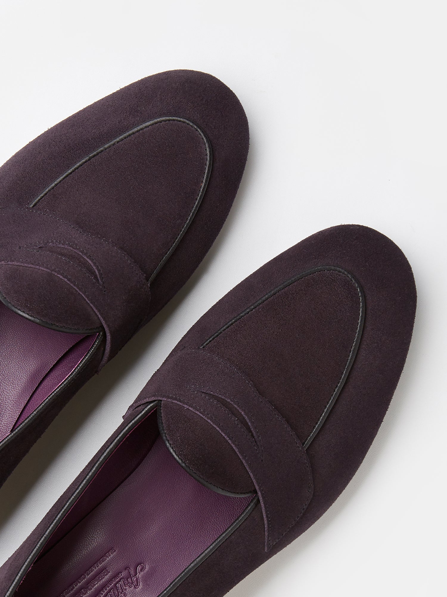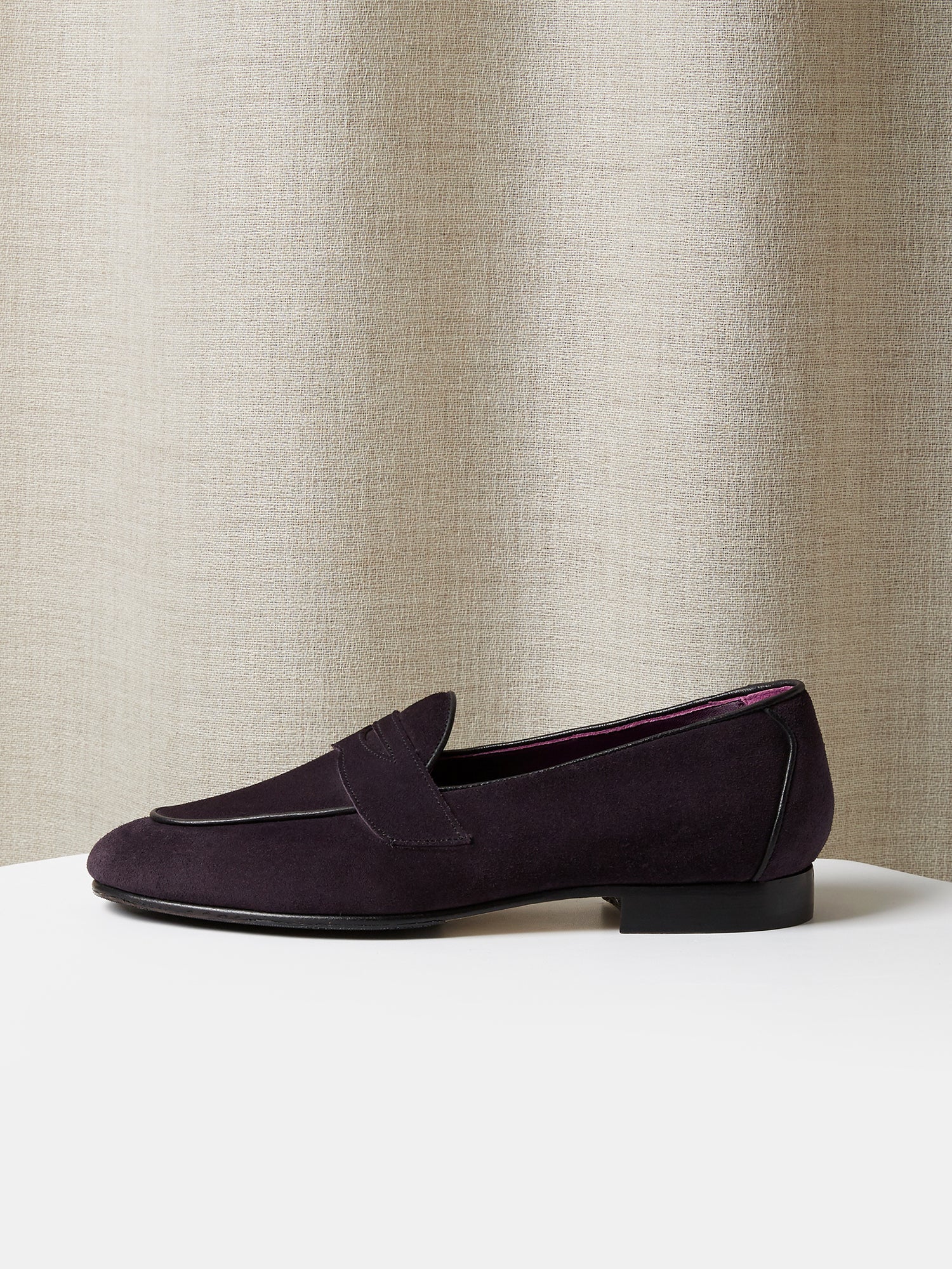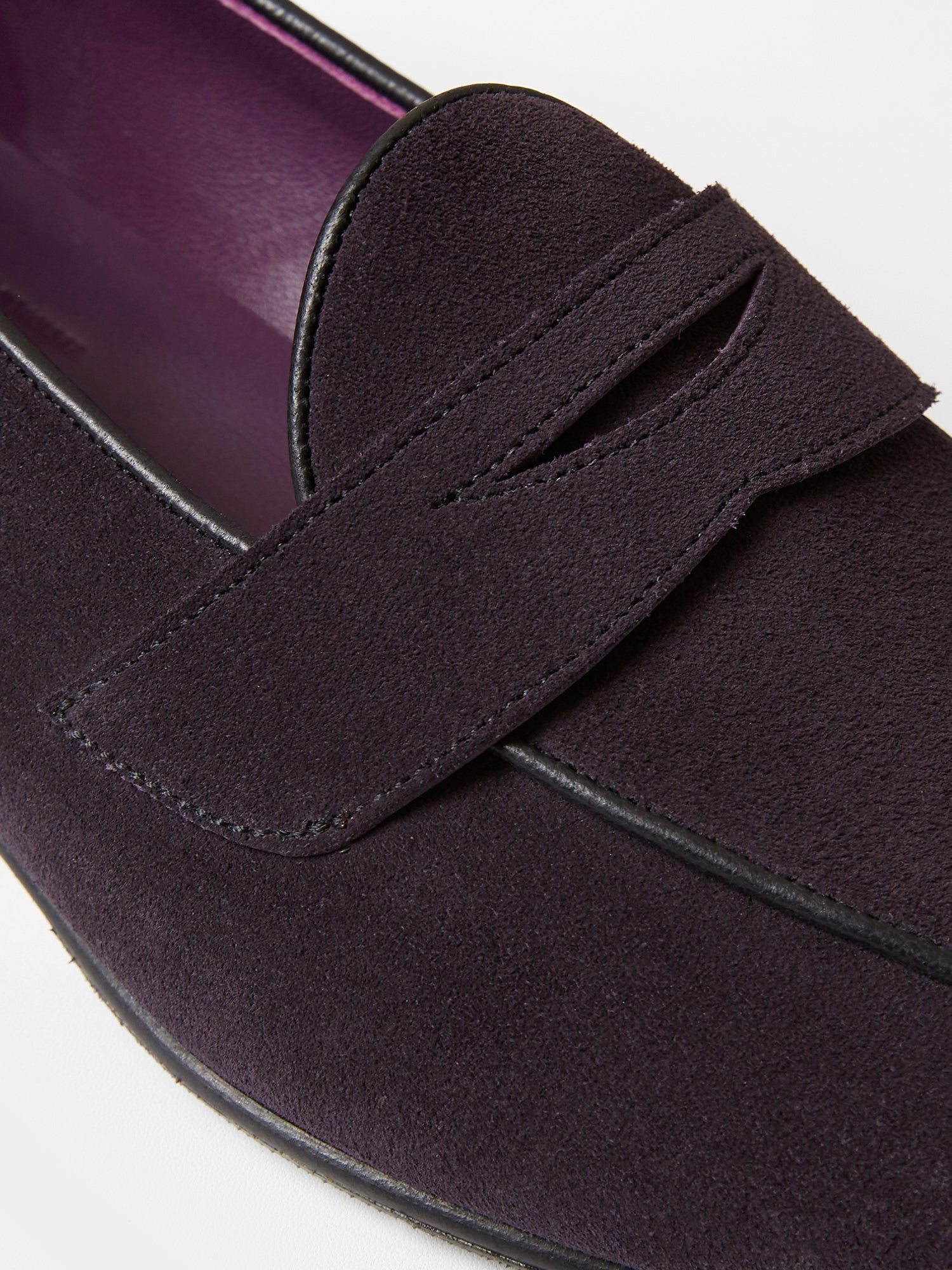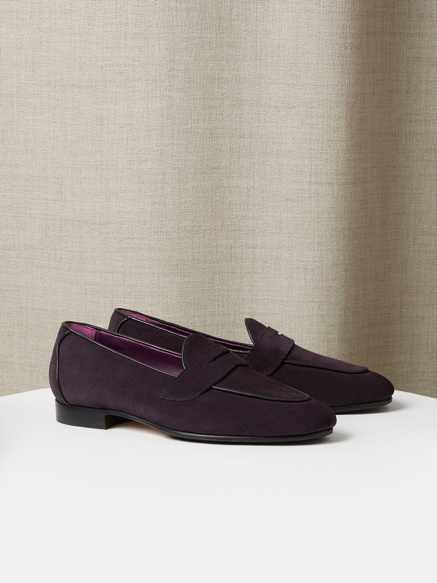 Belgian Penny Loafers in Dark Purple Suede