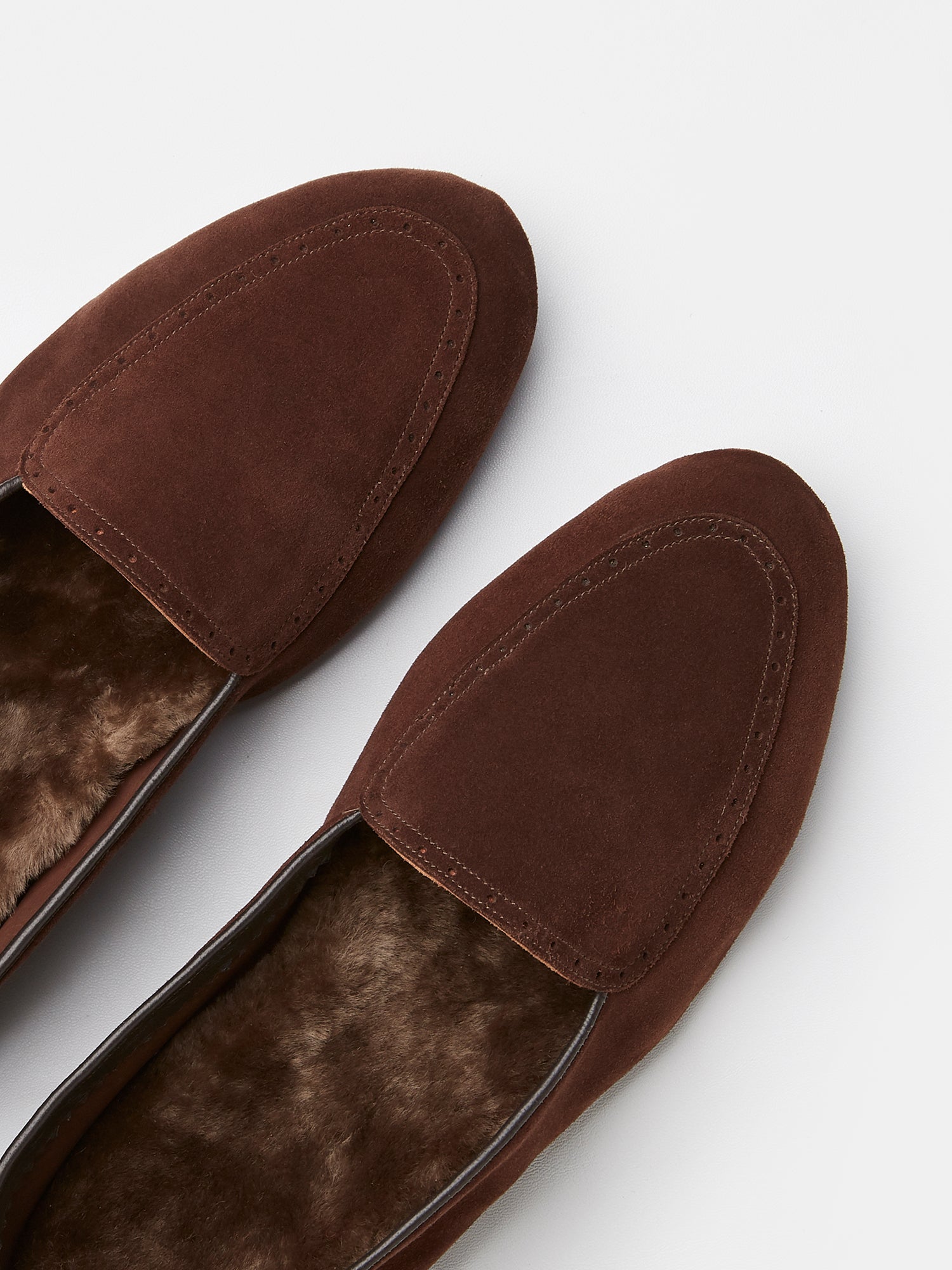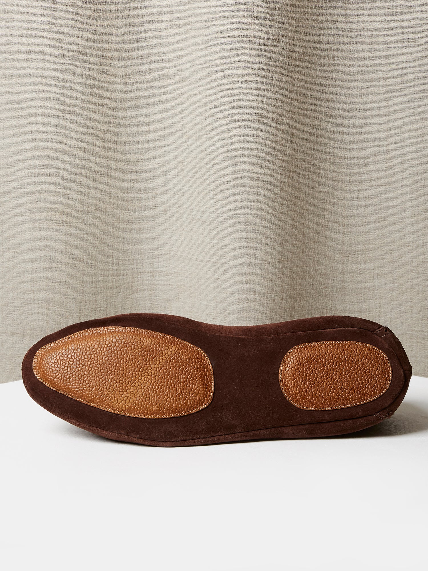 Made with buttery smooth suede and a soft leather sole for indoor use, built by hand at our London factory.