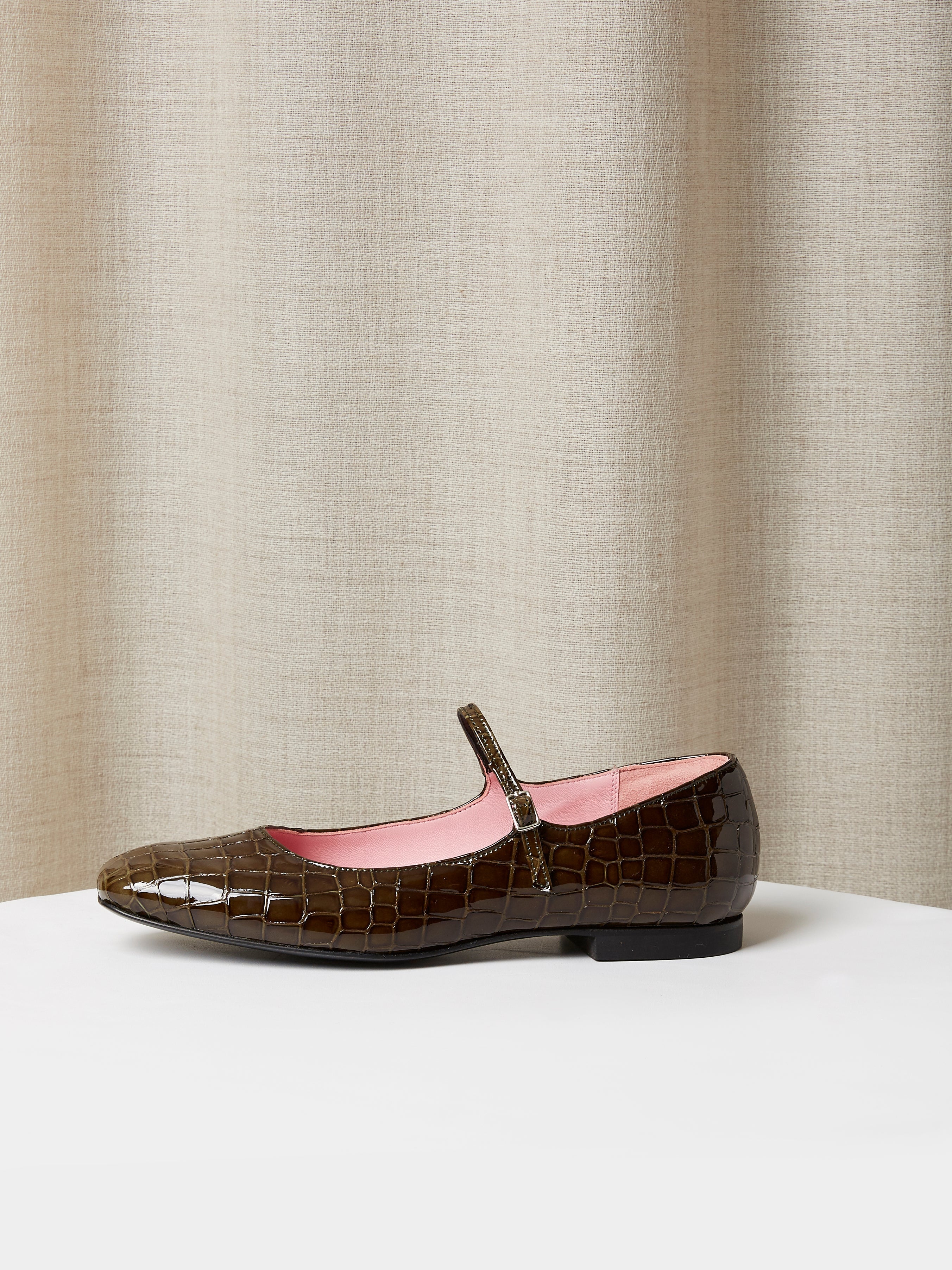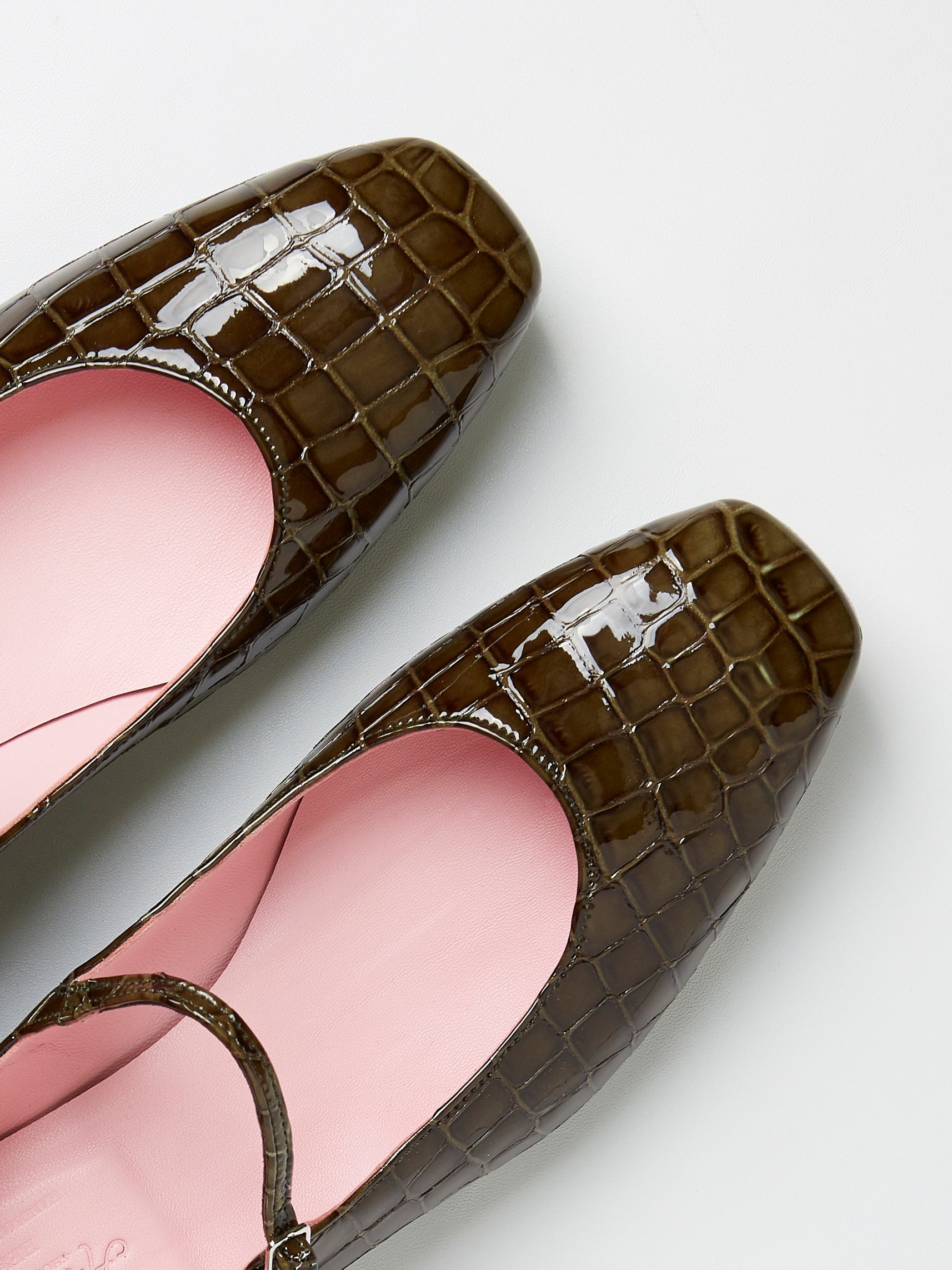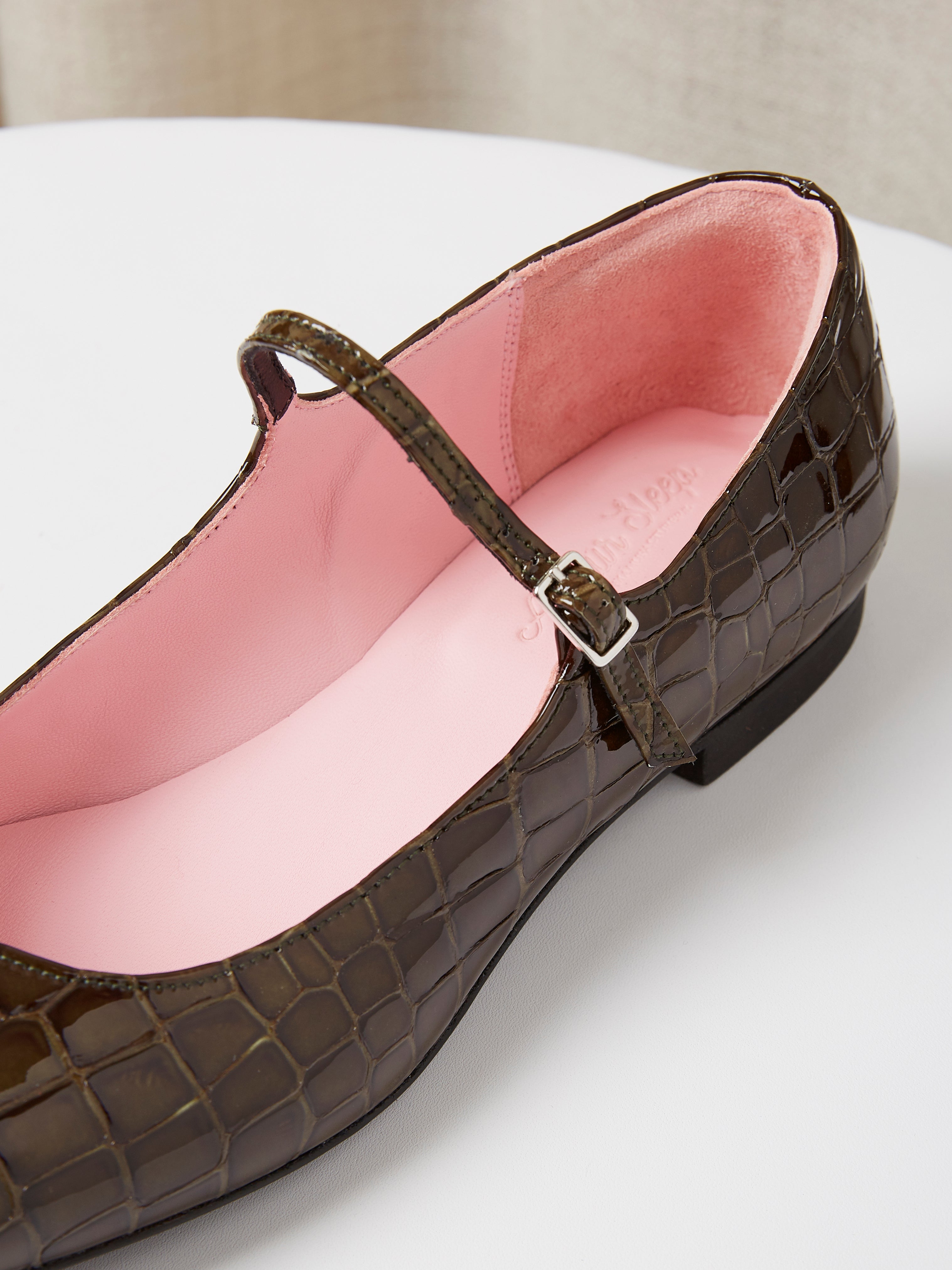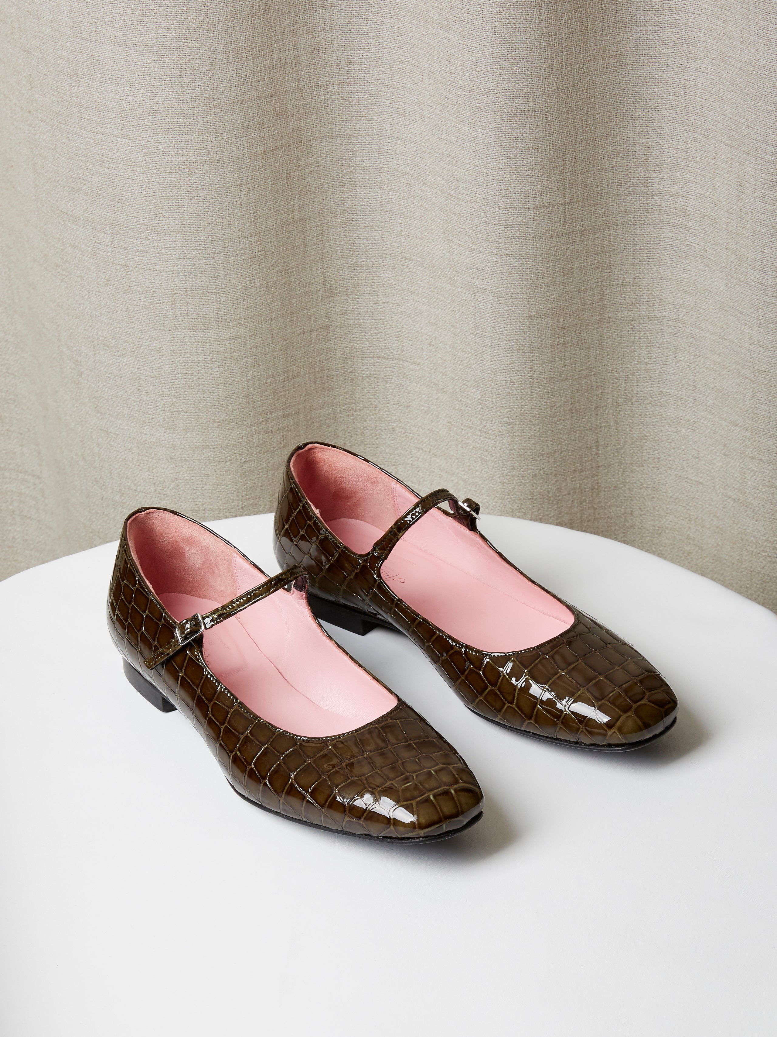 The Mary Jane in Olive Embossed-Crocodile Leather