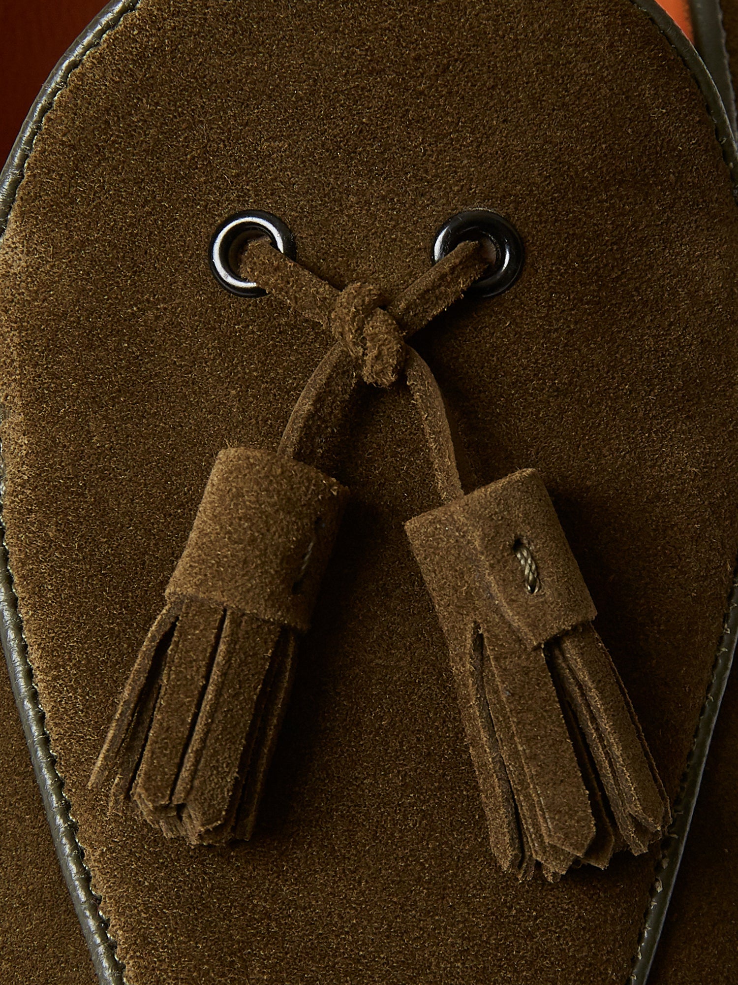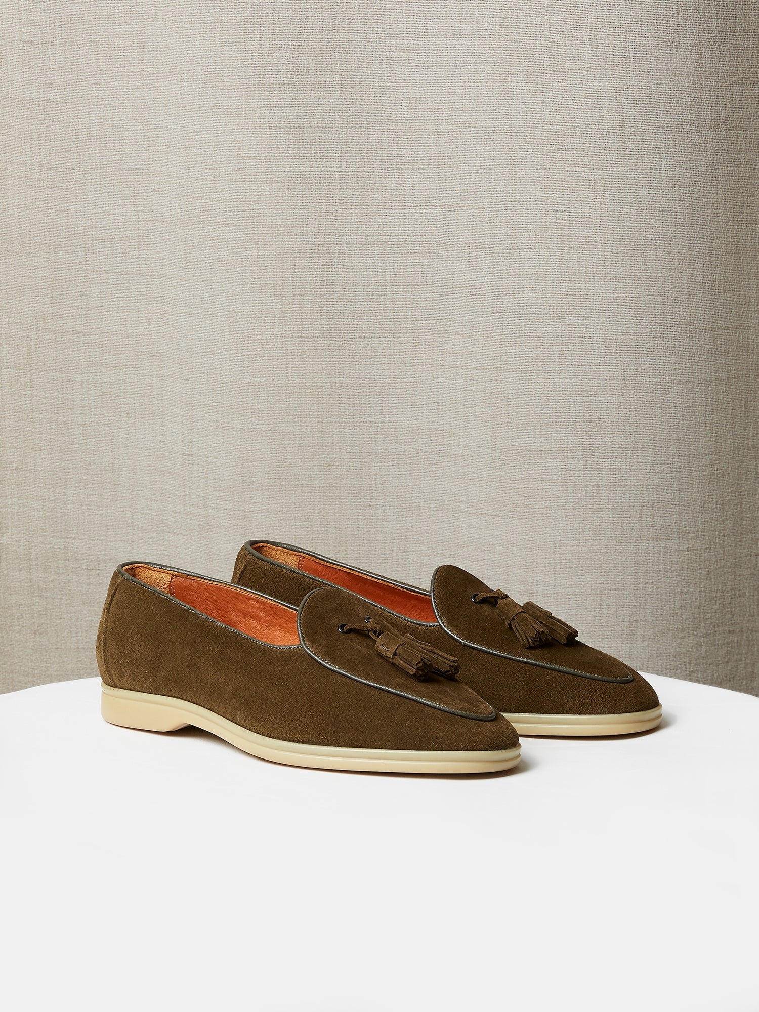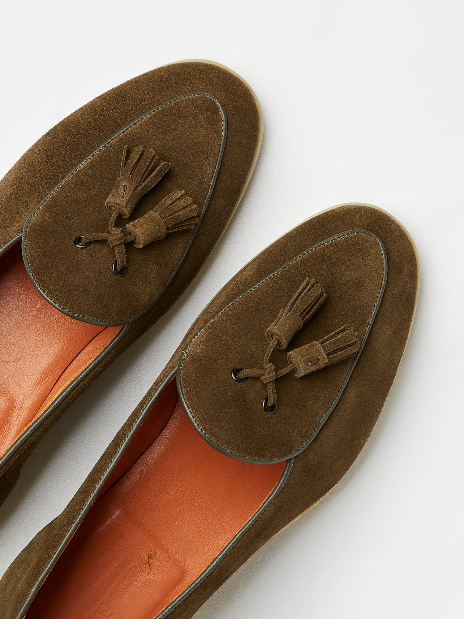 Belgian Tassel Loafers in Olive Green Suede