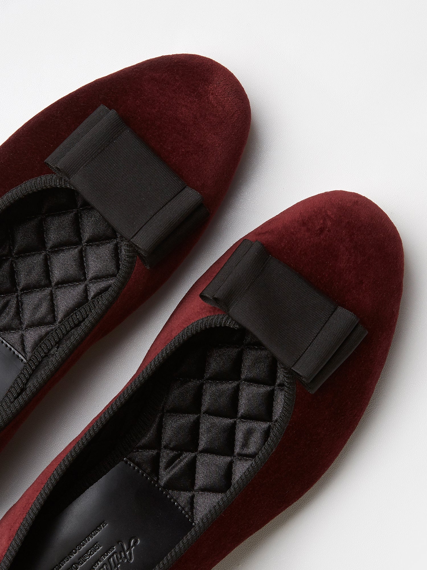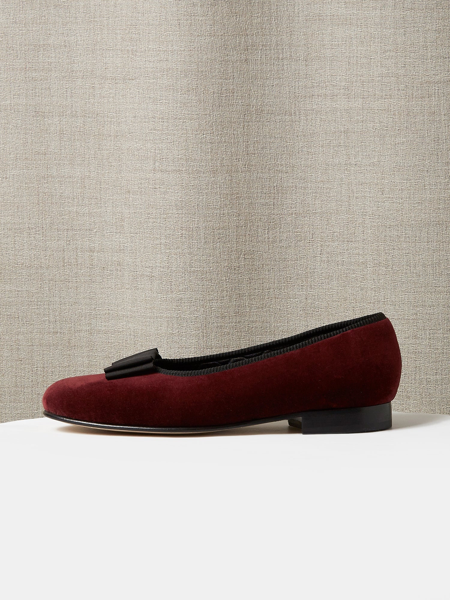 The ne plus ultra of formalwear, our opera pumps are the classic choice for black and white tie engagements. Its sleek upper is cut from a single piece of velvet or patent leather with only a single embellishment: the grosgrain bow that complements the lapel facings on your dinner jacket.