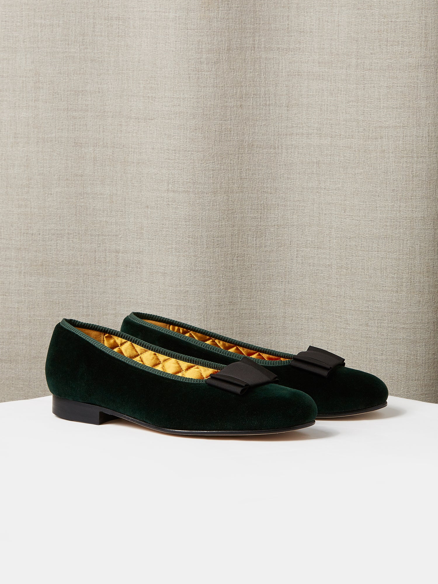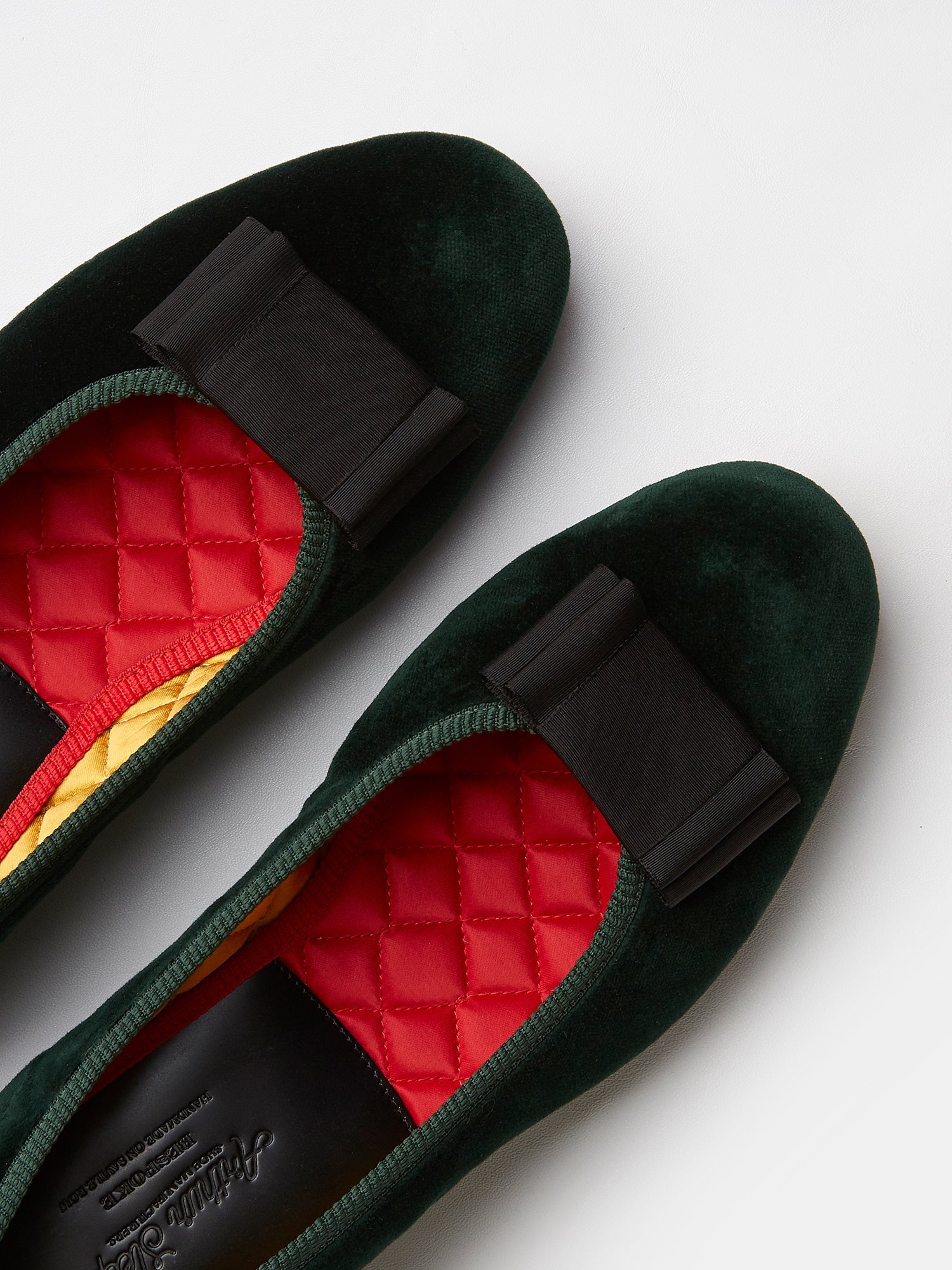 Made with luxurious cotton velvet and premium leather soles in our London factory.