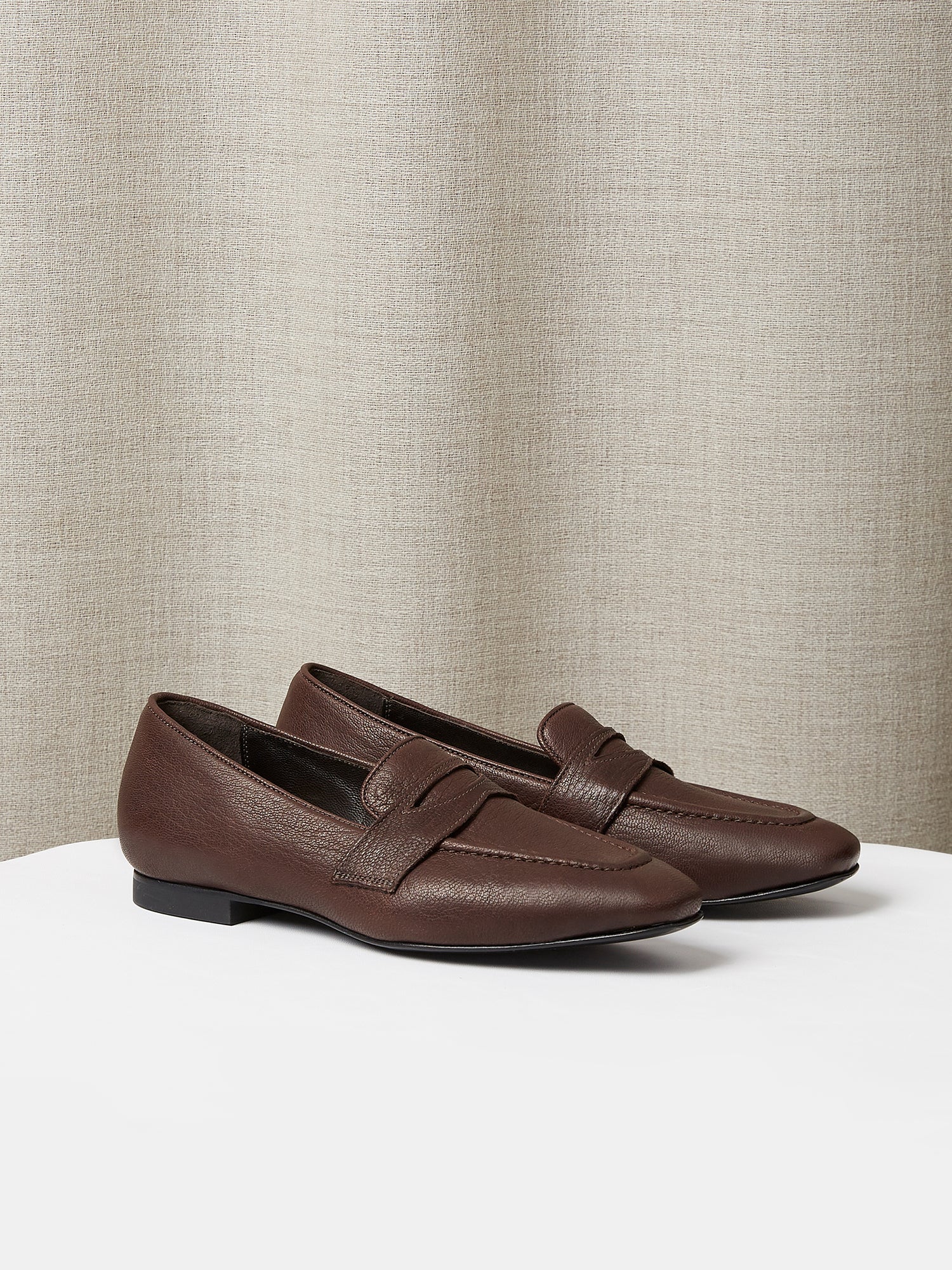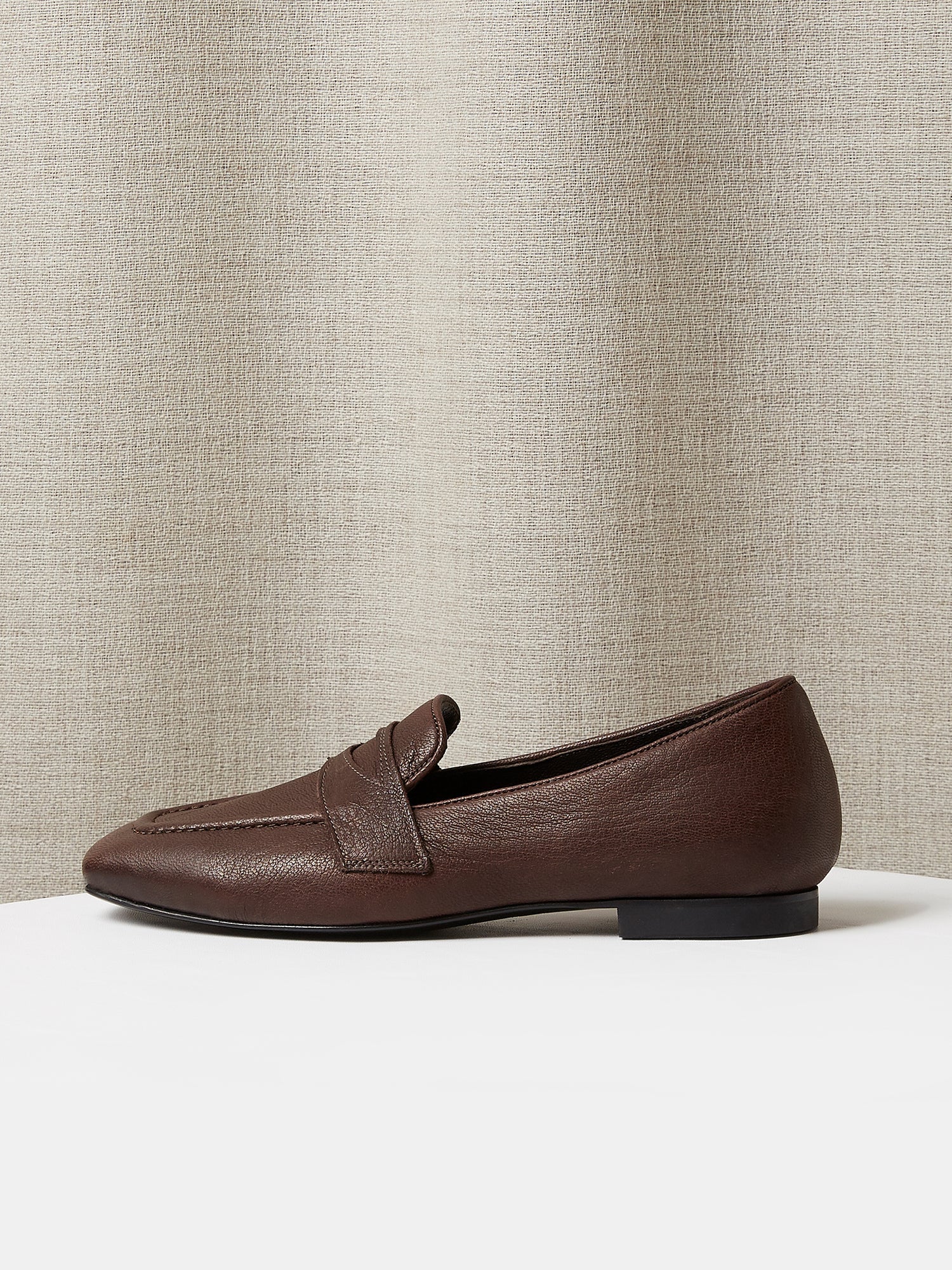 A timeless classic, the penny loafer. The Belgian detailing on the apron keeps the traditional elegance however the unconventional yet contemporary silhouette compliments a modern yet sophisticated look.