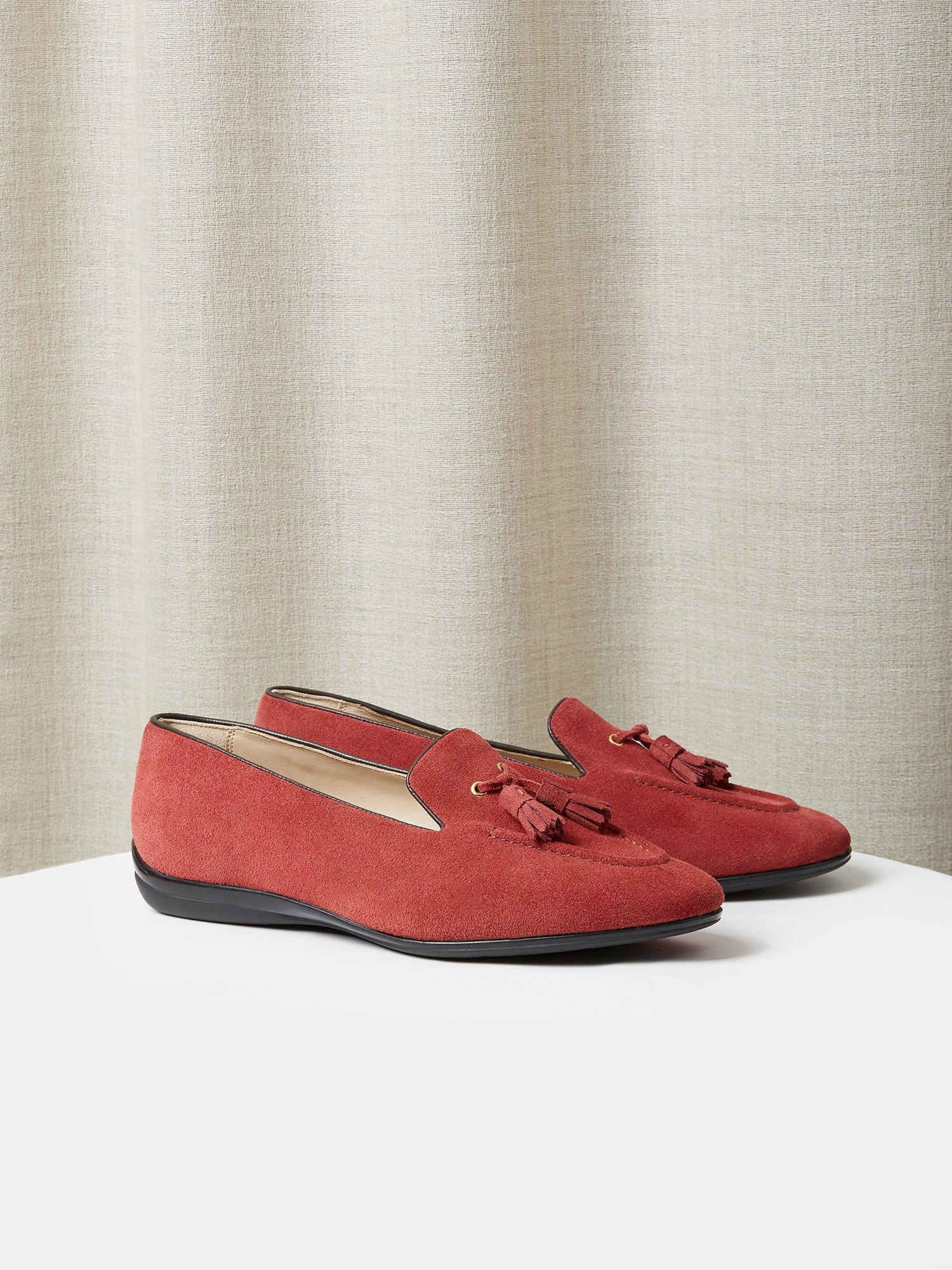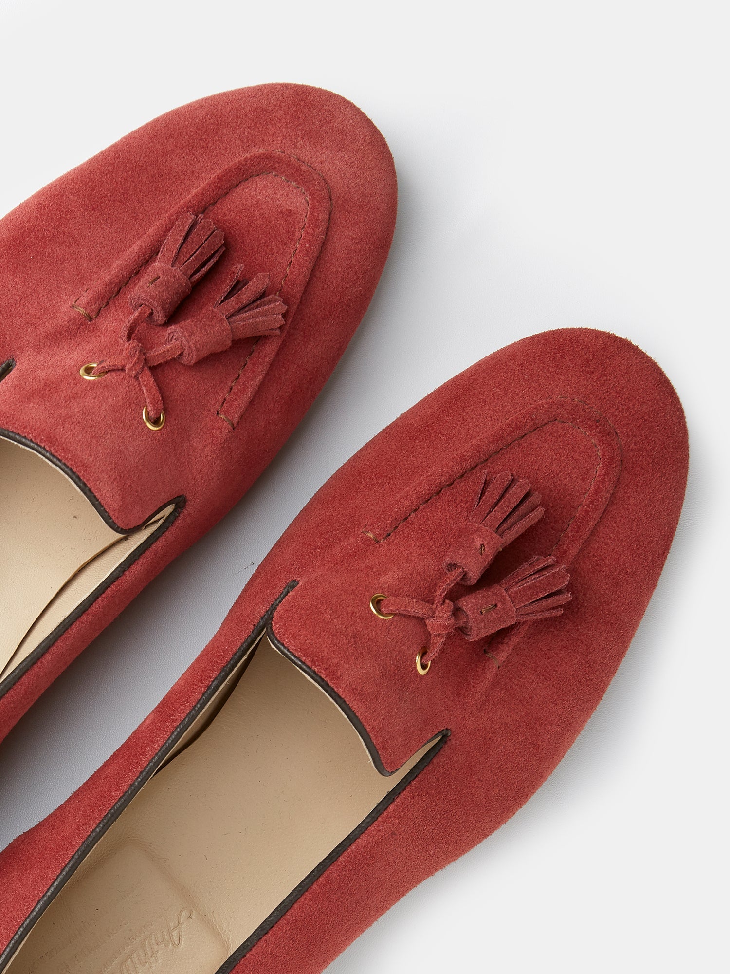 Constructed from premium raspberry calf suede, with a hard wearing driving sole, these shoes are made by hand for you in our Savile Row micro-factory.