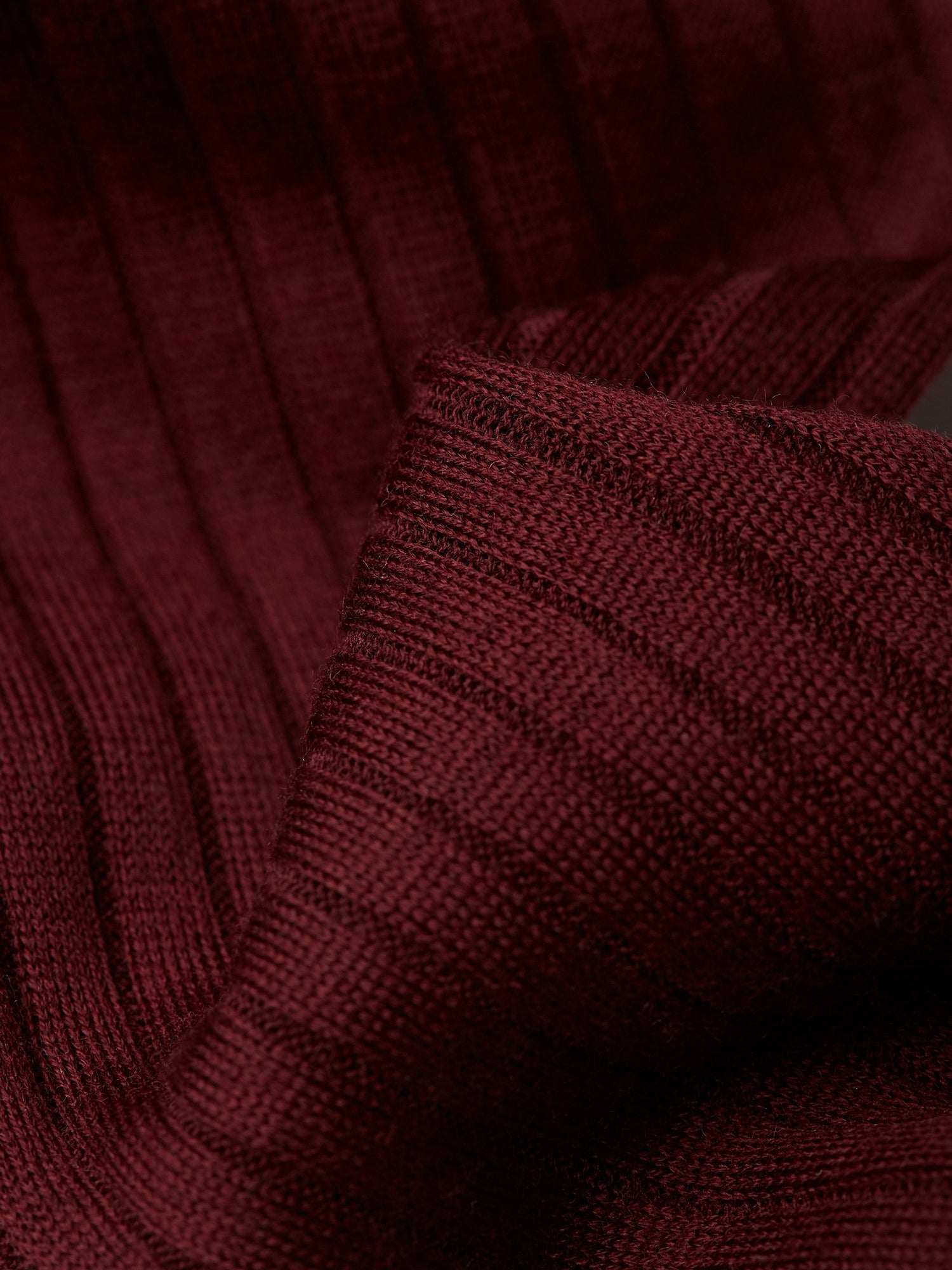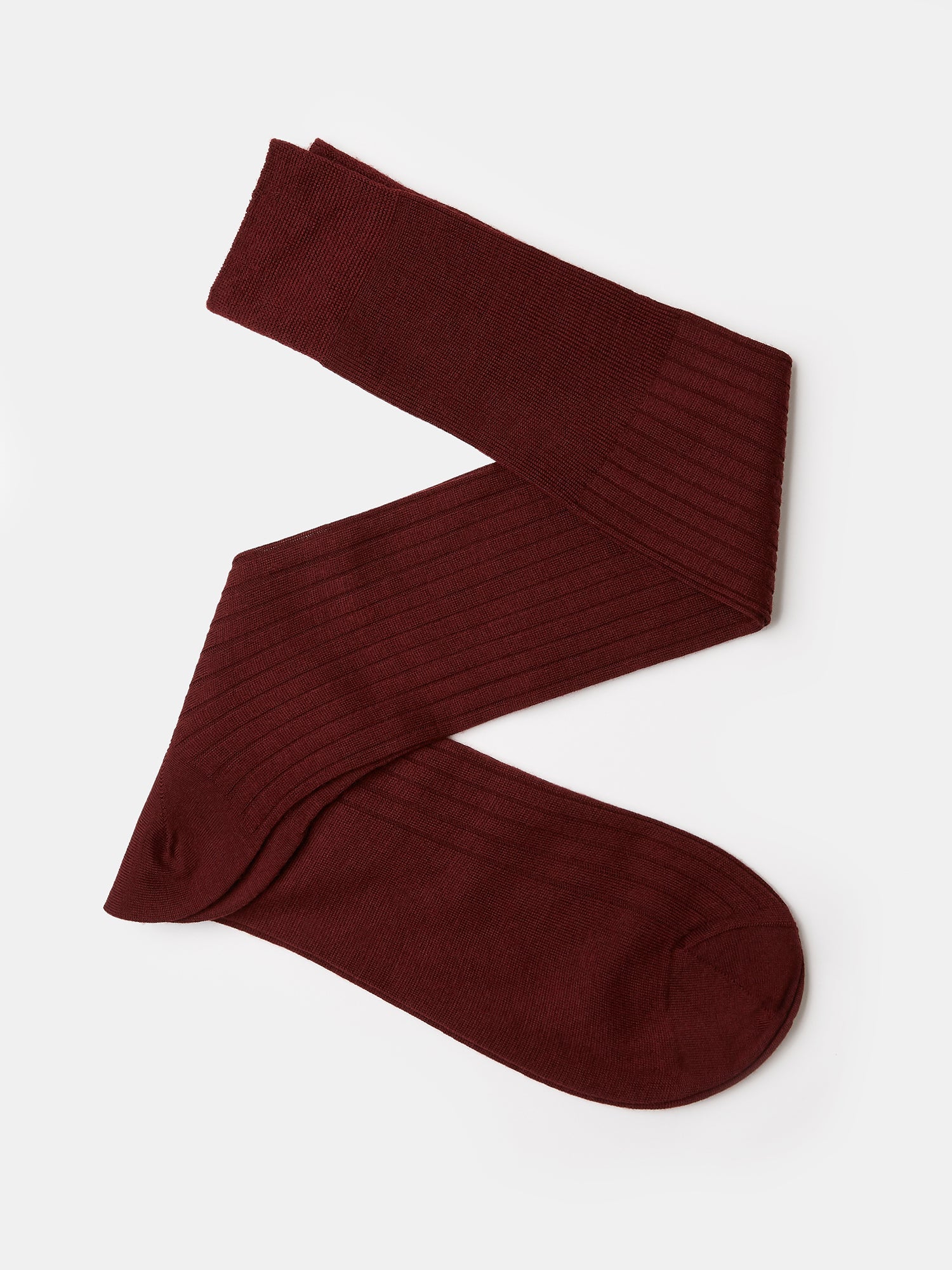 Knee-High Socks in Ribbed Burgundy Wool