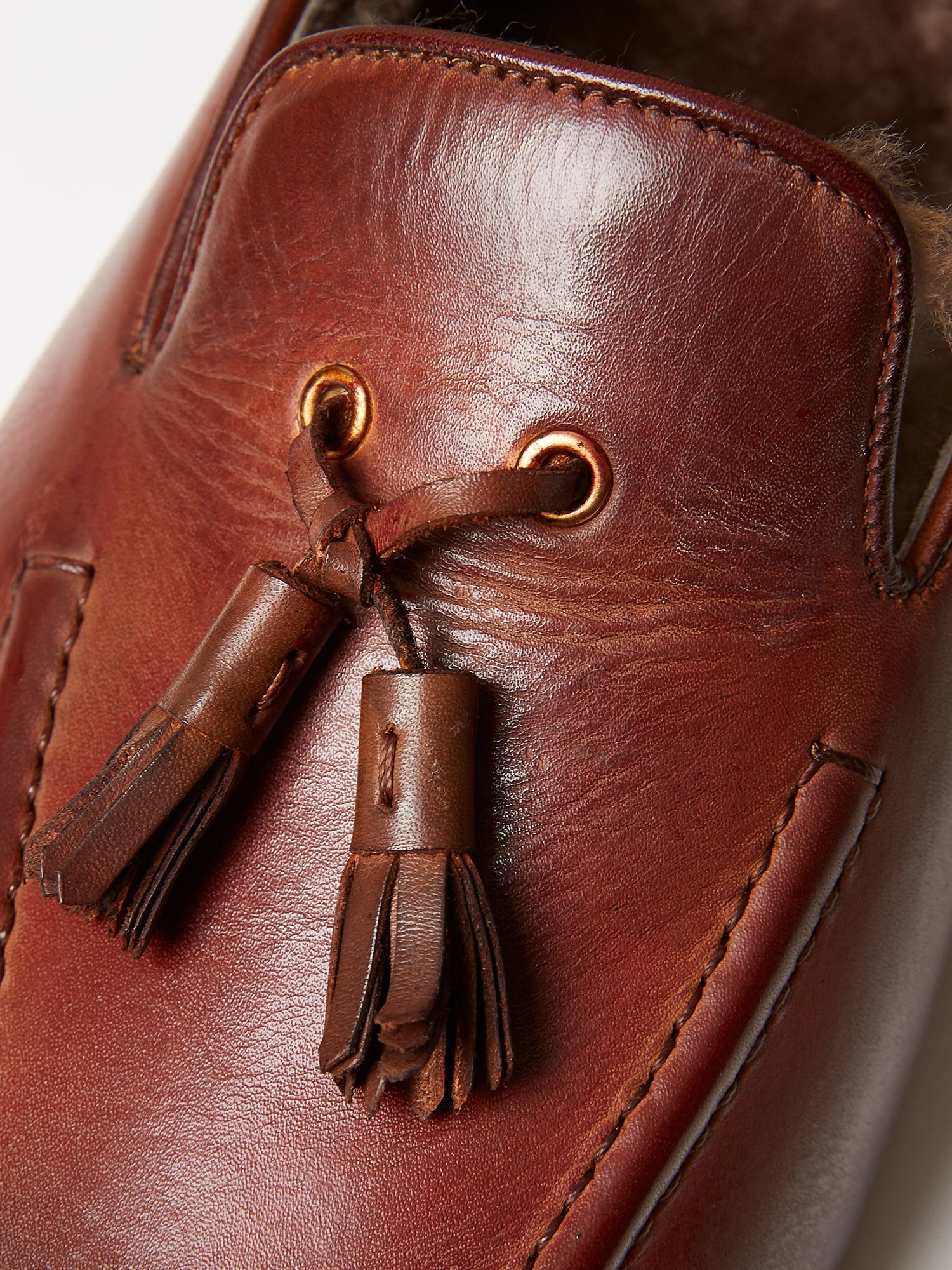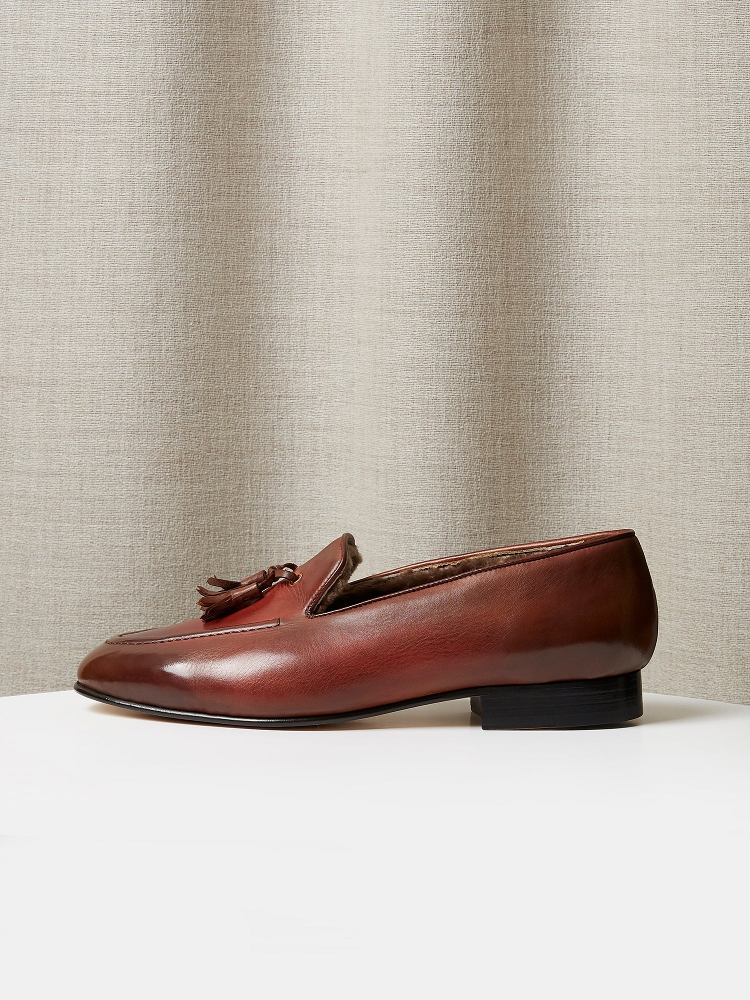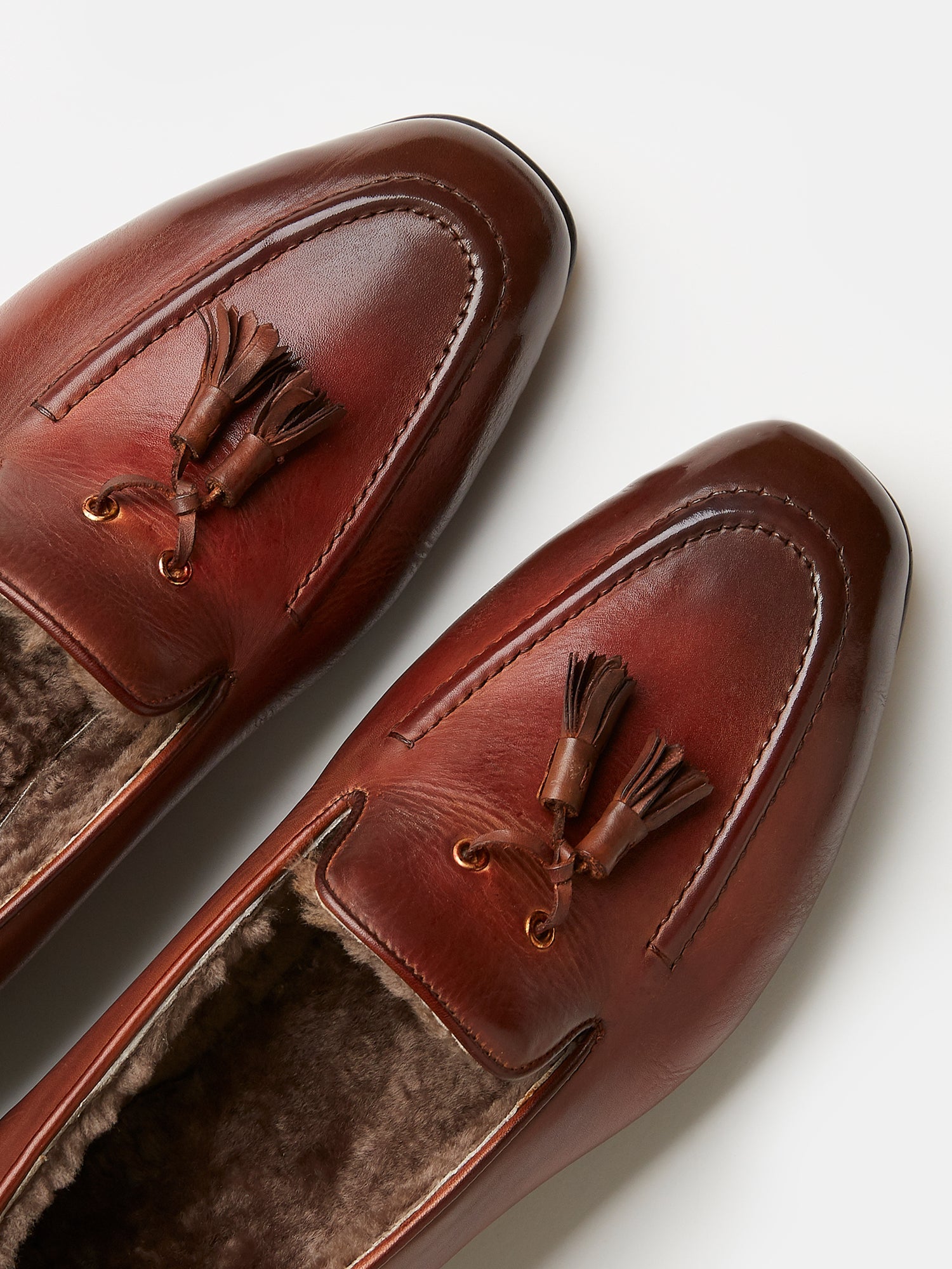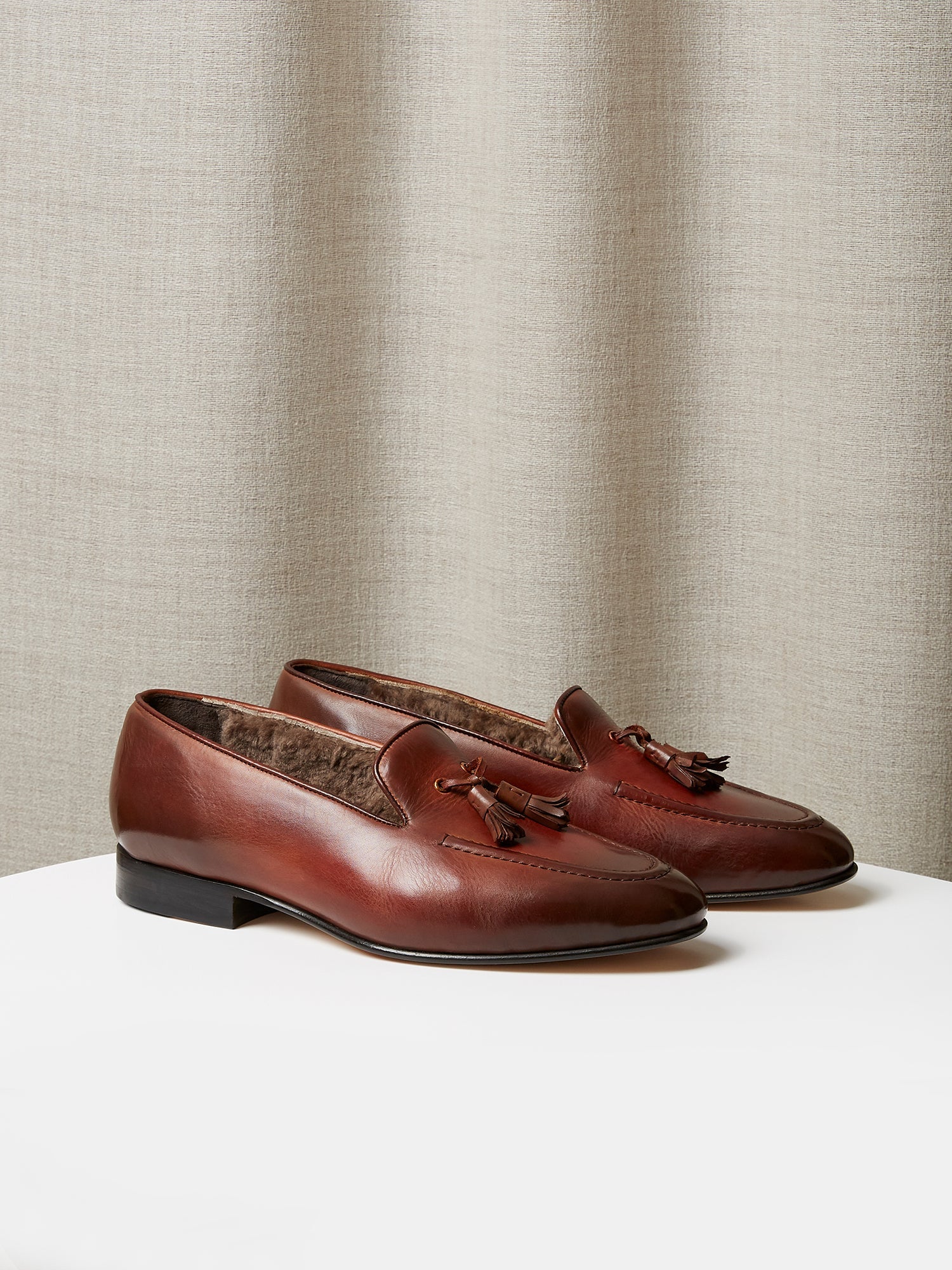 Tassel Loafer in Brown Hand-Painted Patina Leather