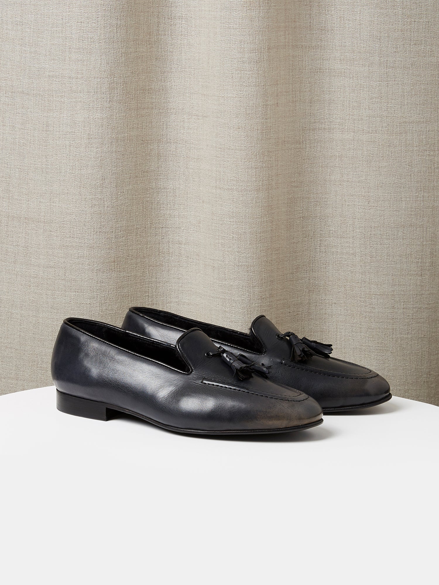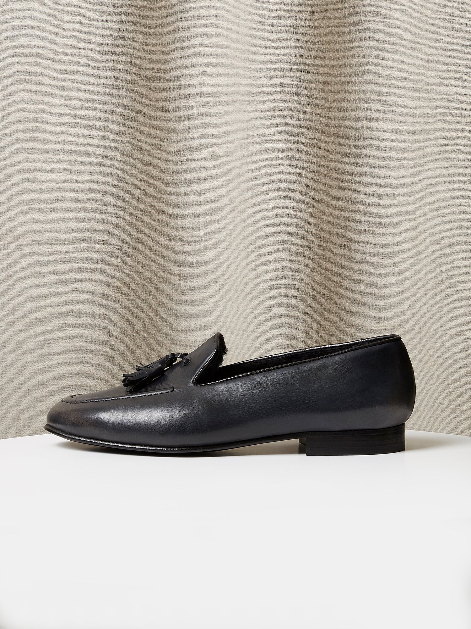 Tassel Loafer in Grey Hand-Painted Patina Leather