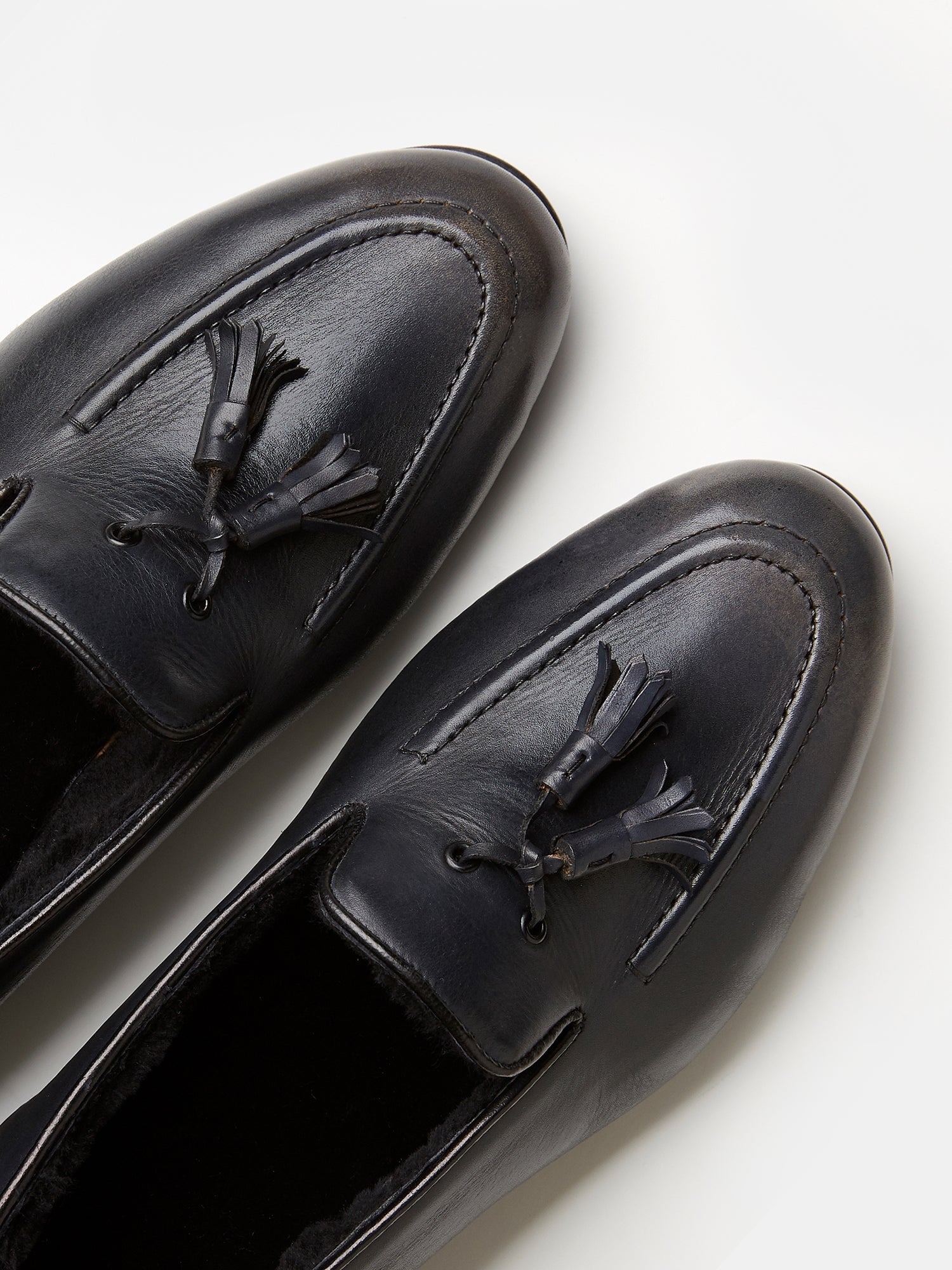 Made with premium french calf leather and a refined Italian leather sole: comfortable, flexible, and battle-tested. With a shearling lining and subject to a multi stage patina process, these shoes are elevated still further.