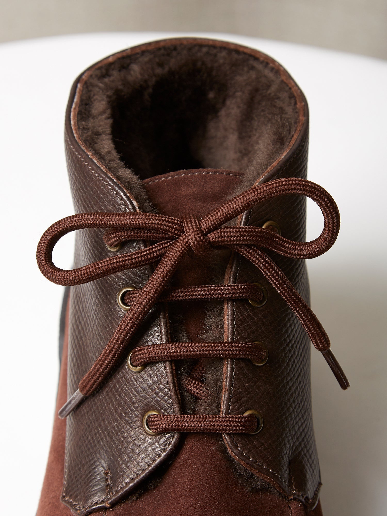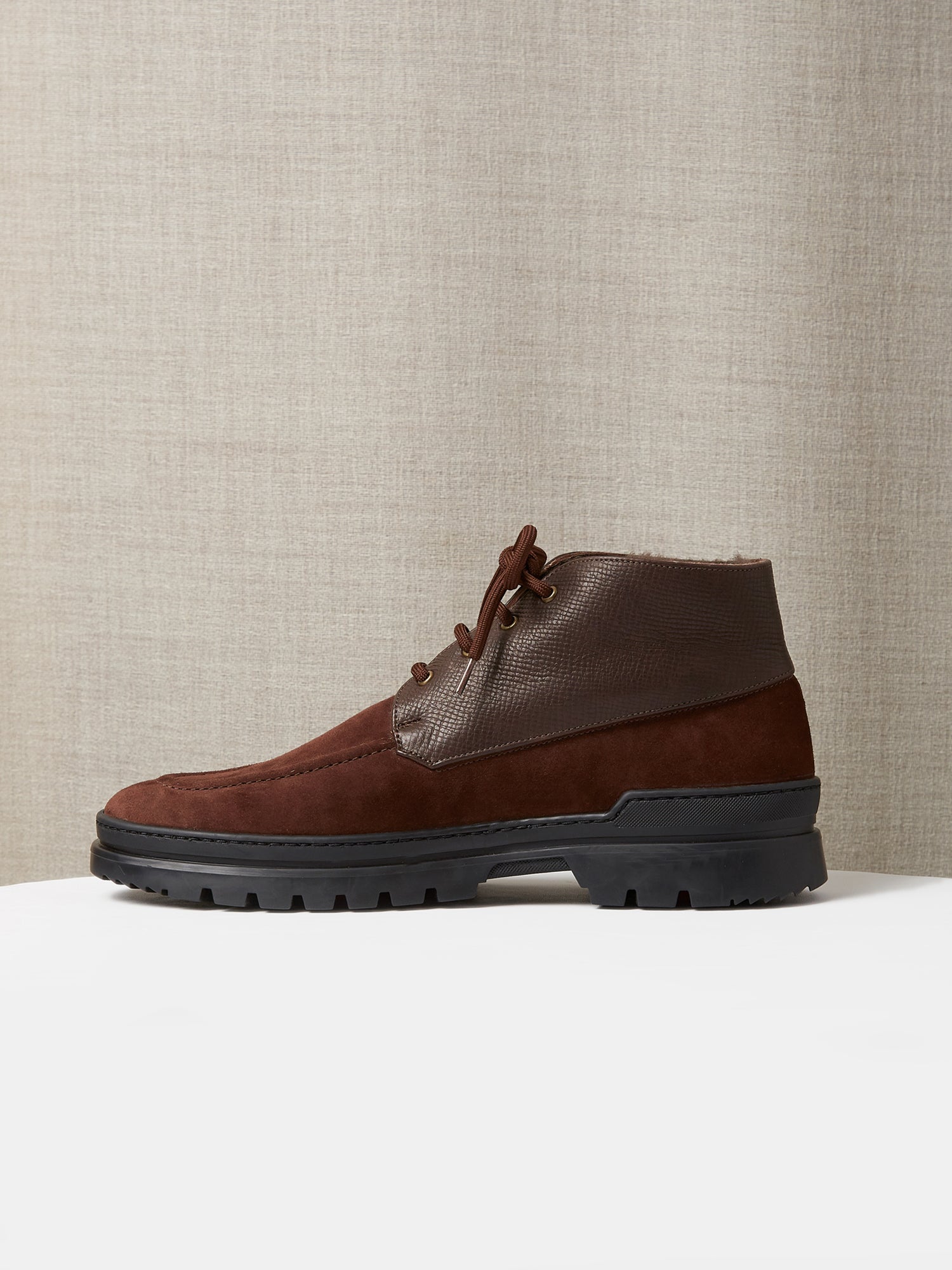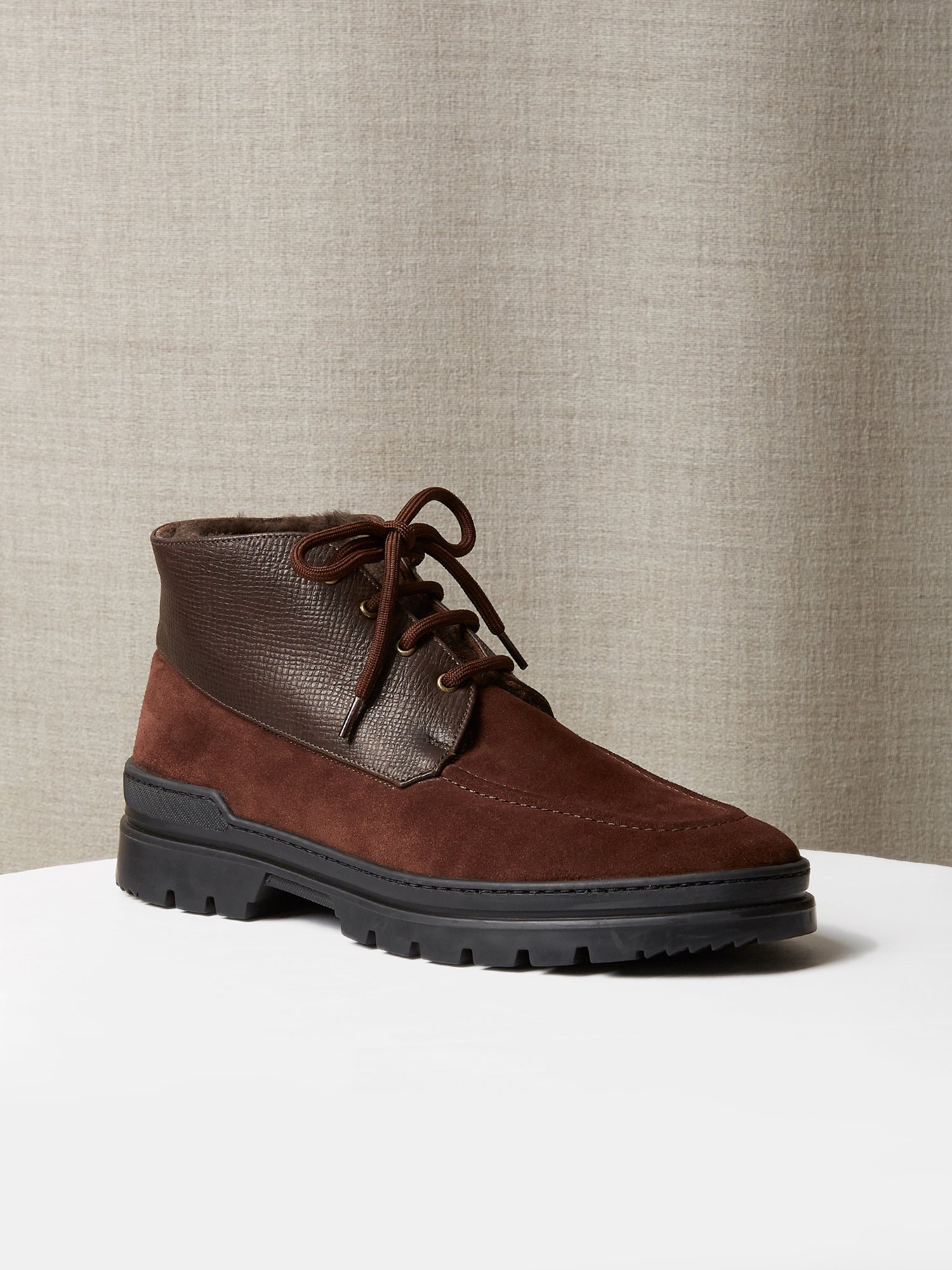The Engadin Boot in Brown Full-Grain Leather & Suede with Fur Lining
