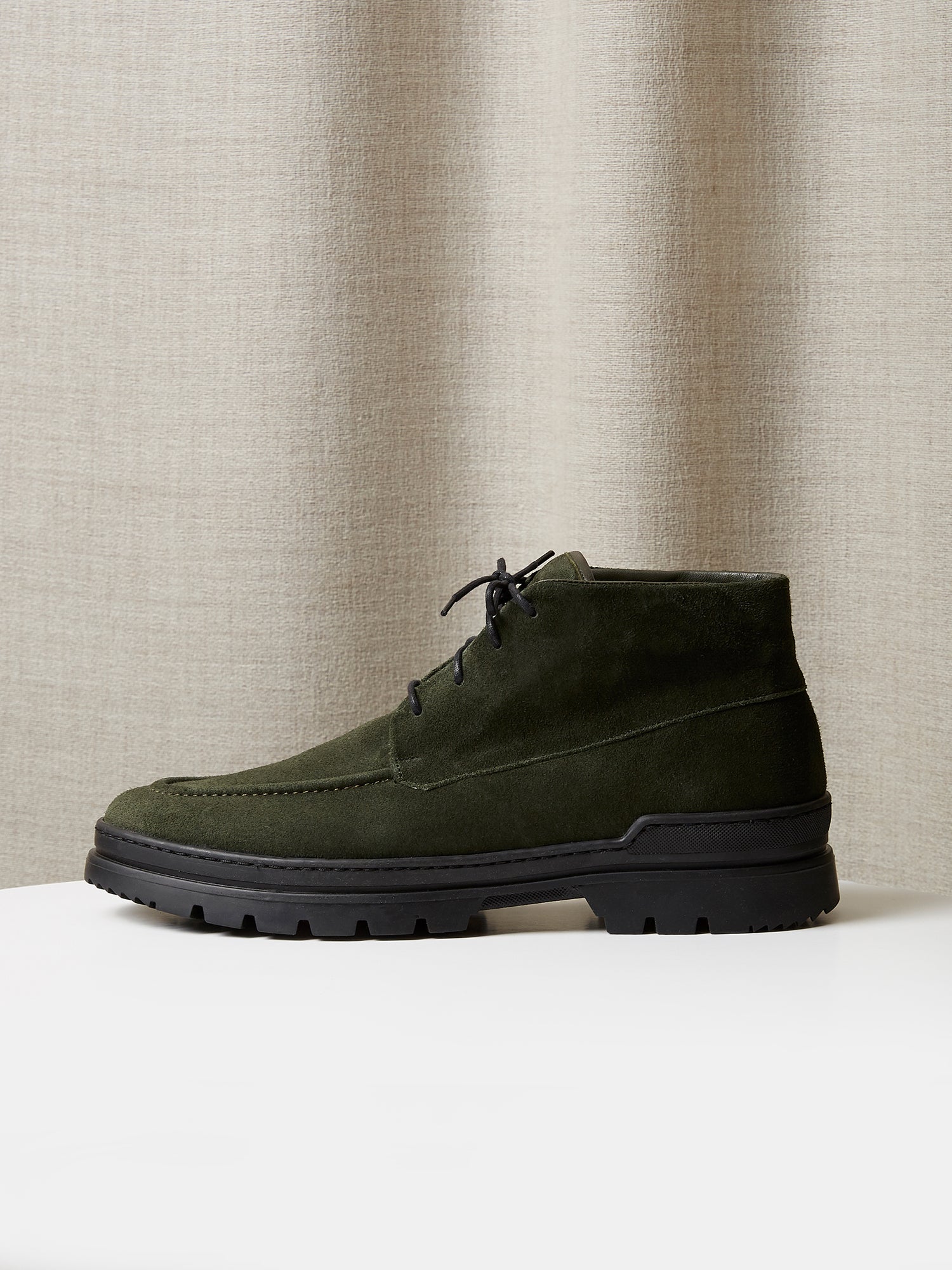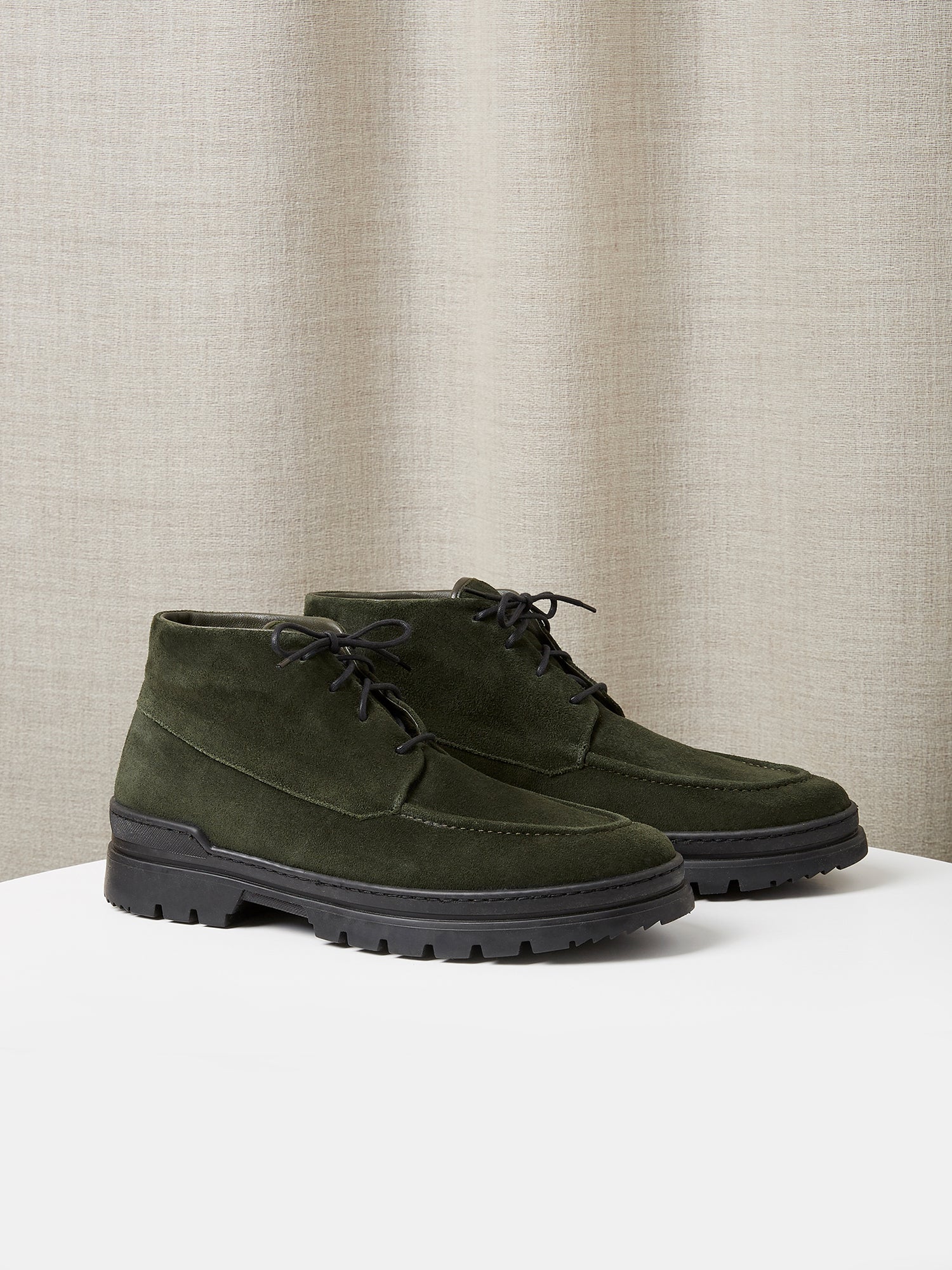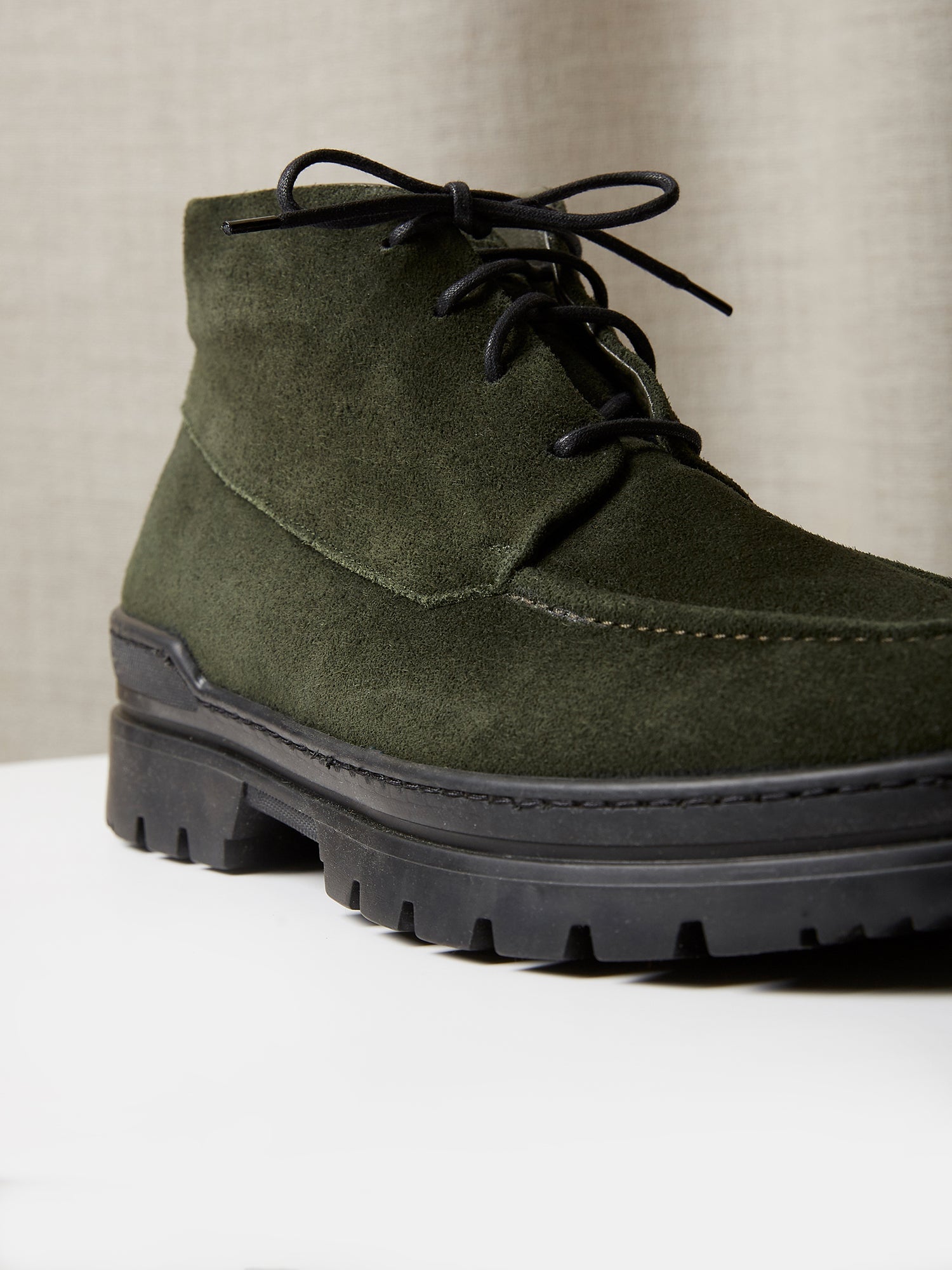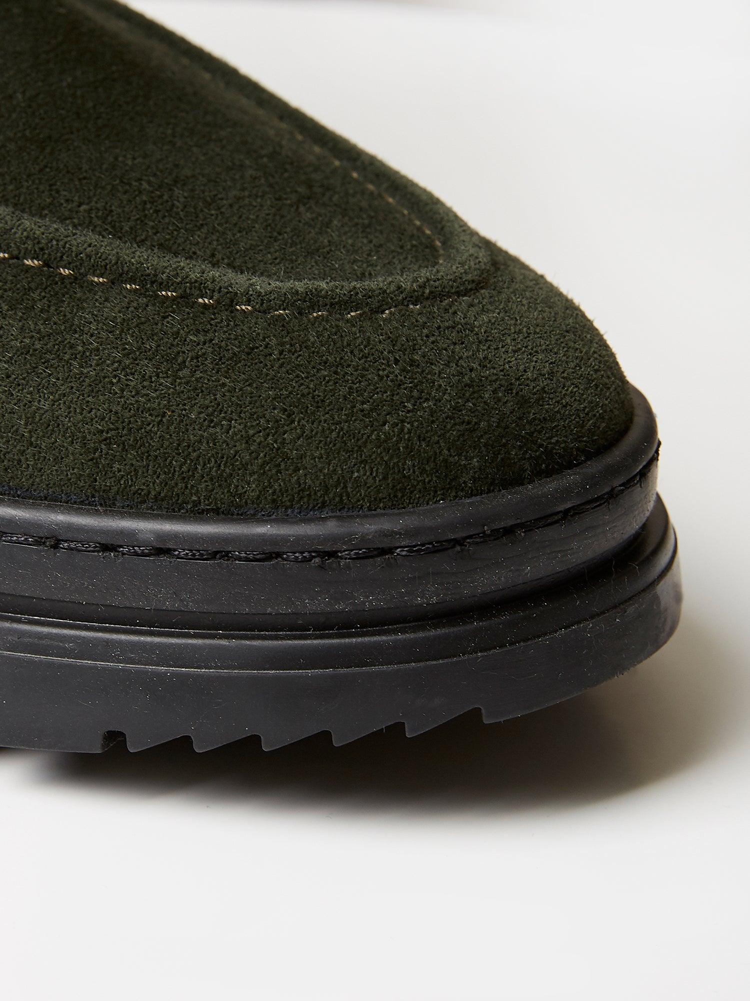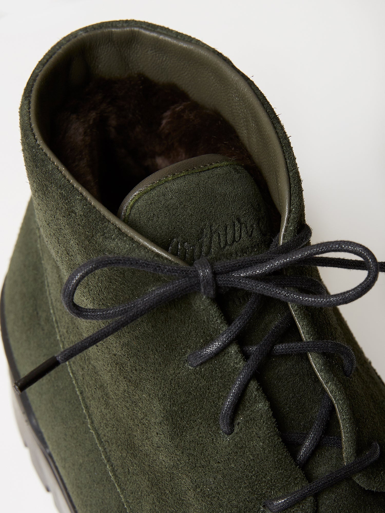 The Engadin Boot in Forest Green Suede with Fur Lining