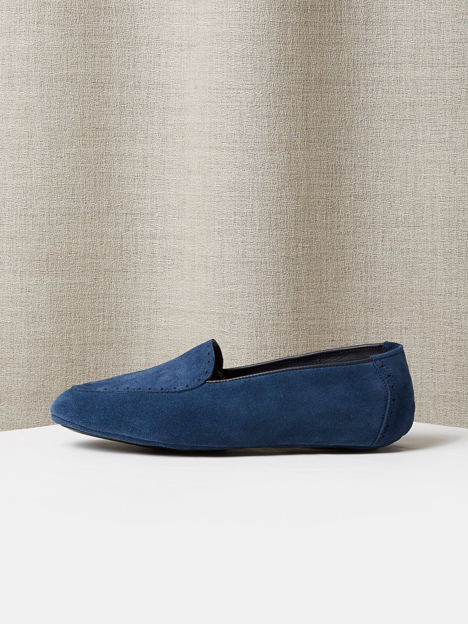 Made with buttery smooth suede and a soft leather sole for indoor use, built by hand at our London factory.