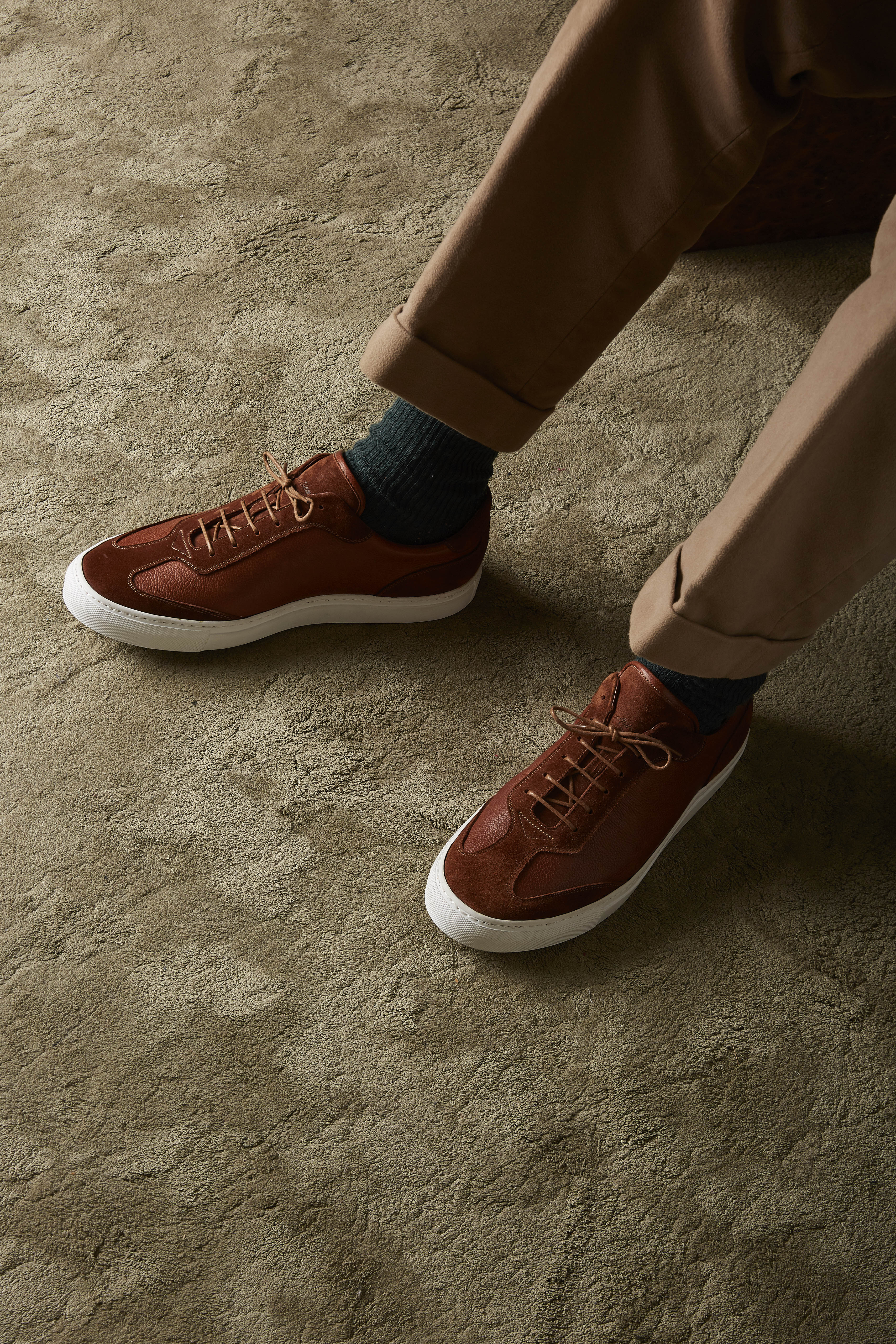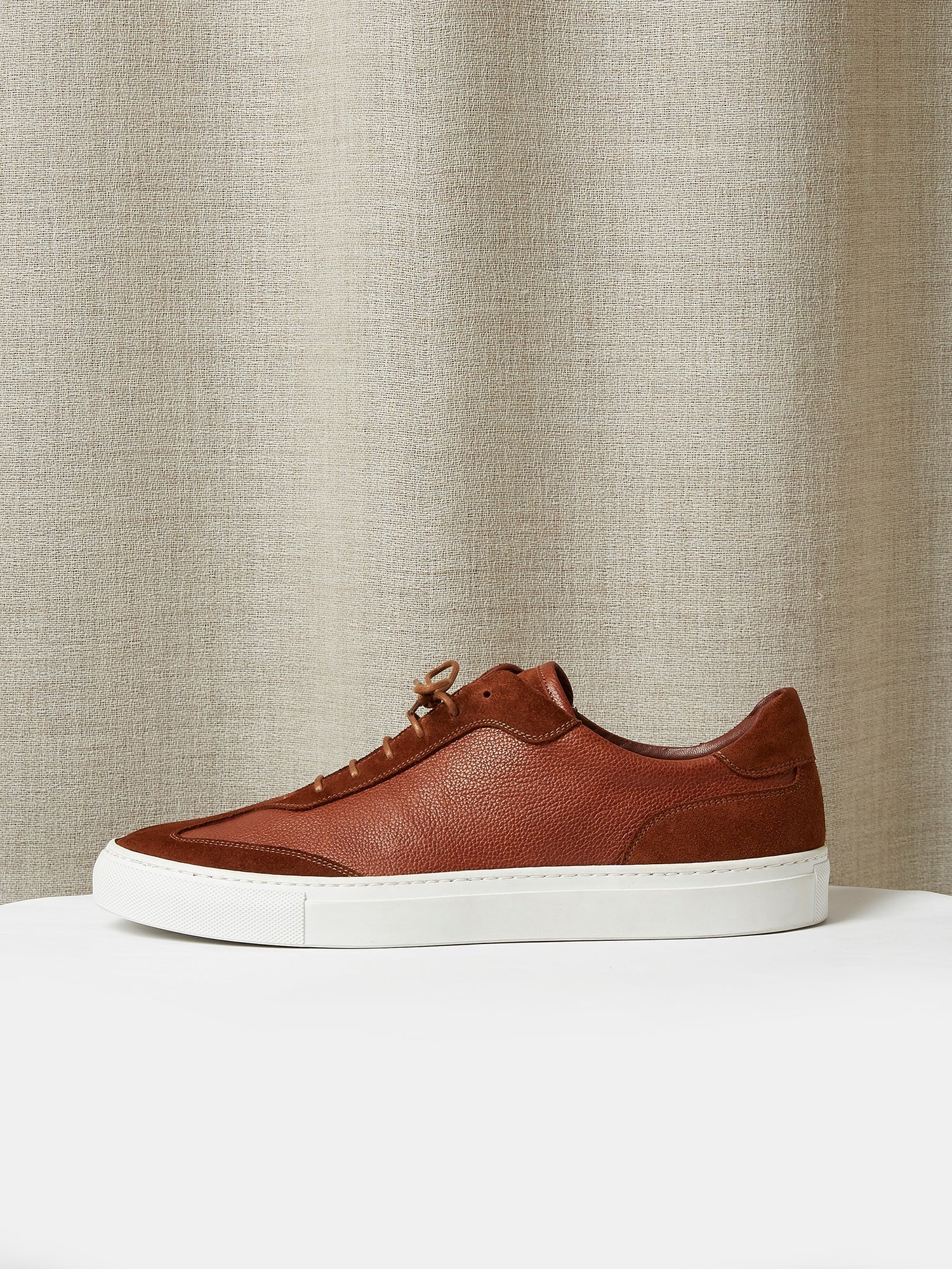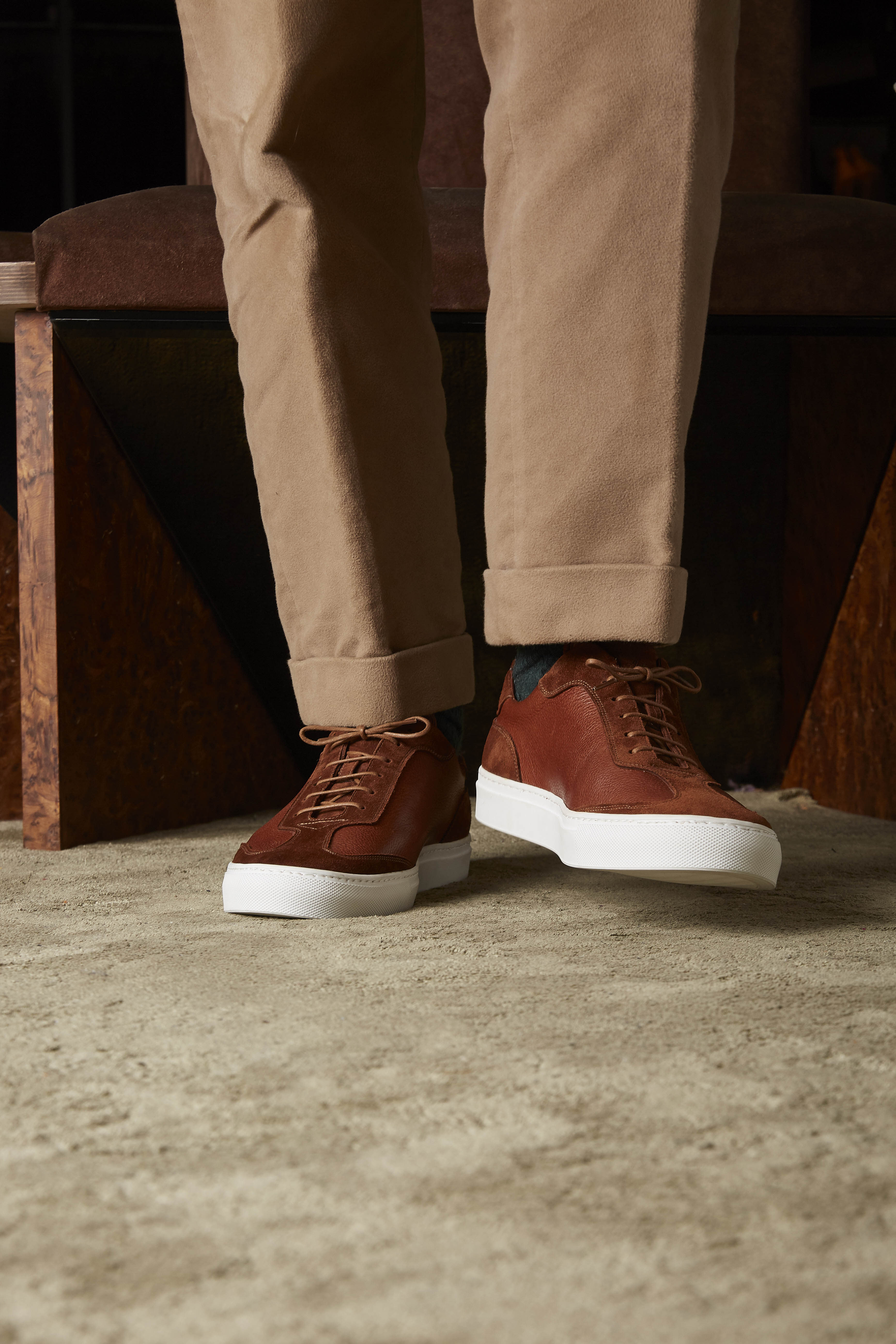 Constructed from luxurious Tobacco Brown suede and deerskin, these sneakers are a nostalgic throwback to tennis sneakers of the 1970s.