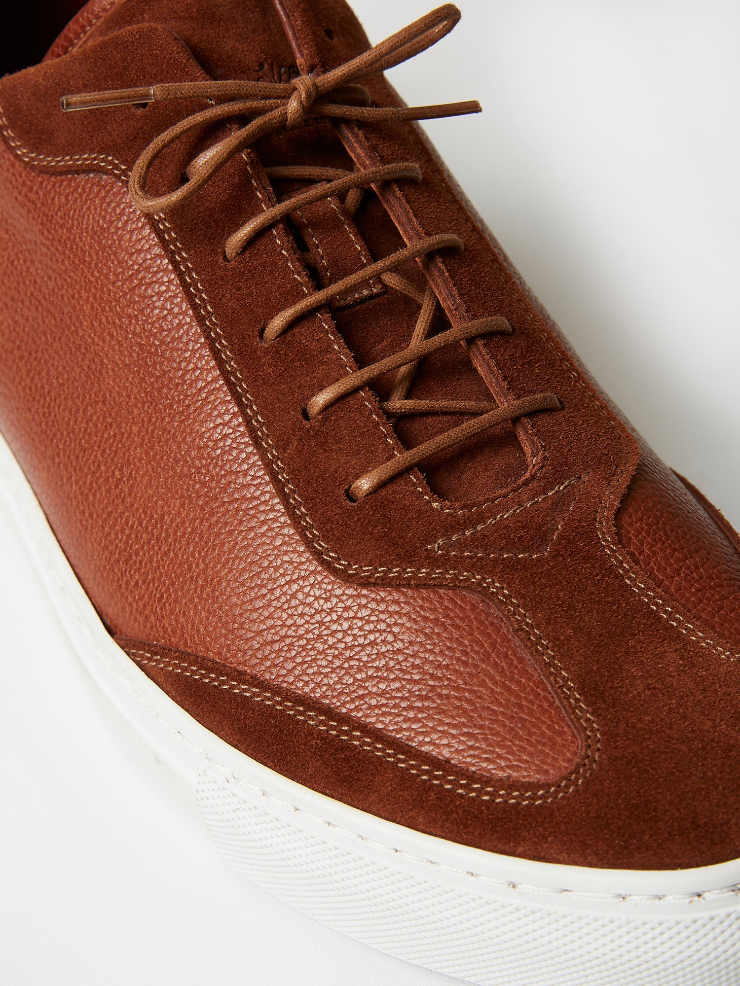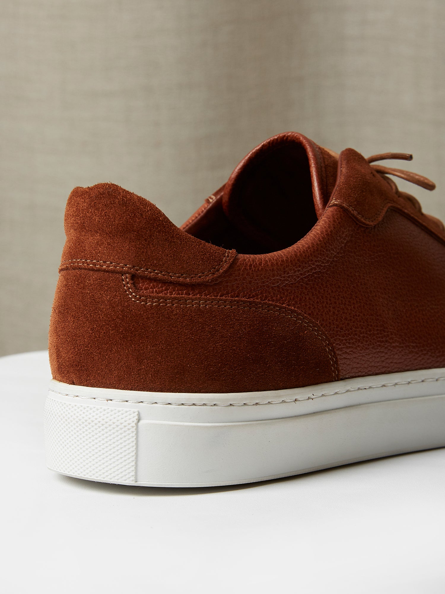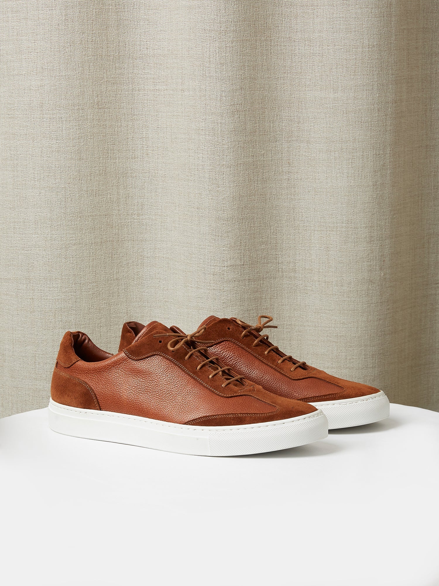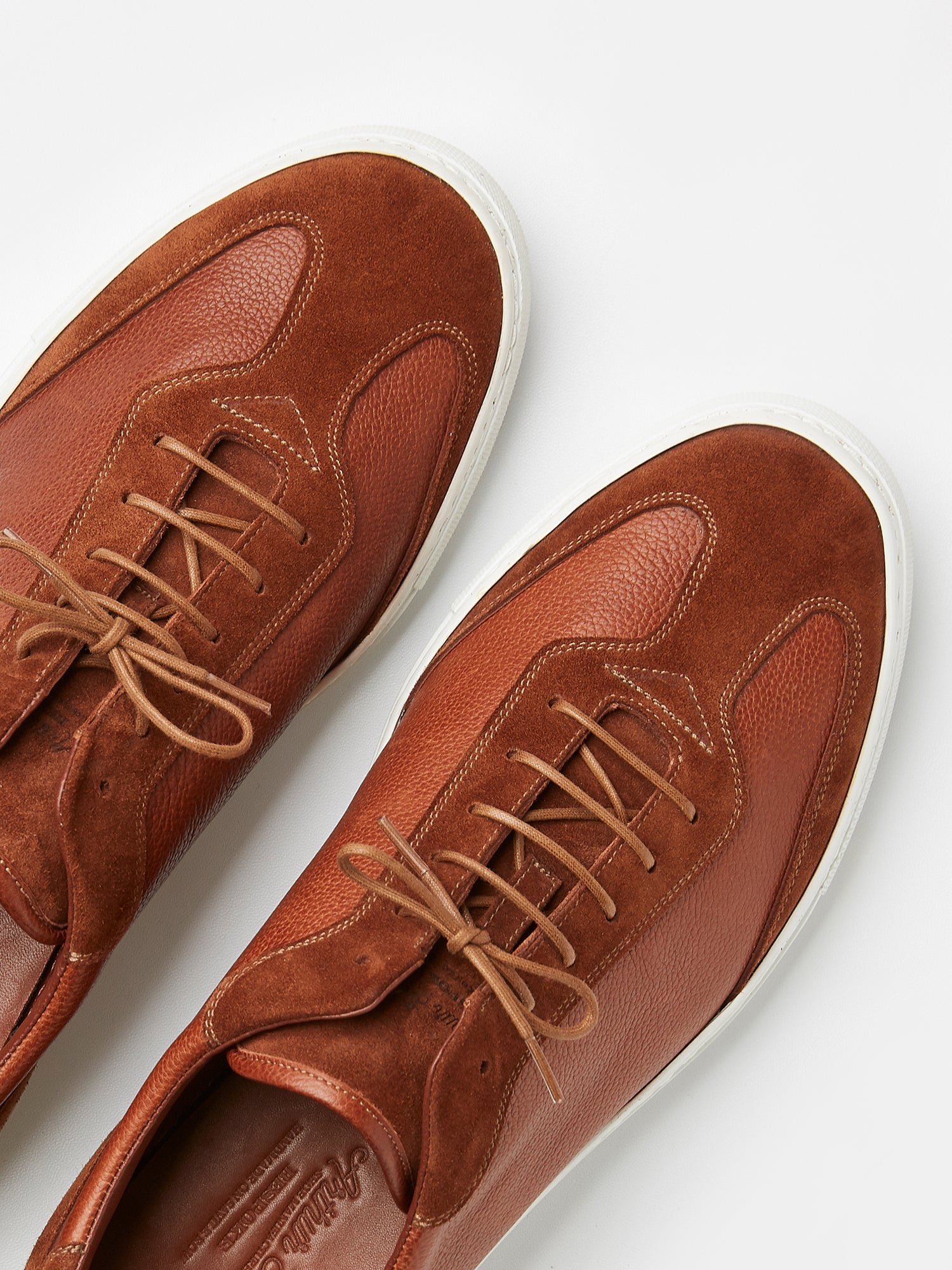 Constructed from luxurious Tobacco Brown suede and deerskin, these sneakers are a nostalgic throwback to tennis sneakers of the 1970s.