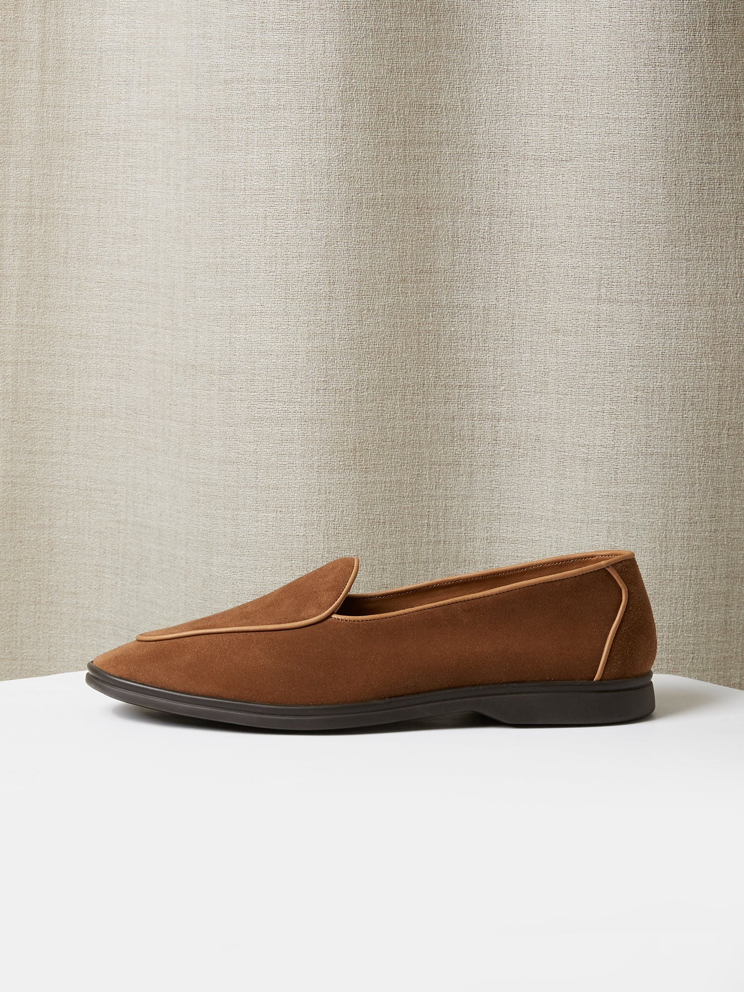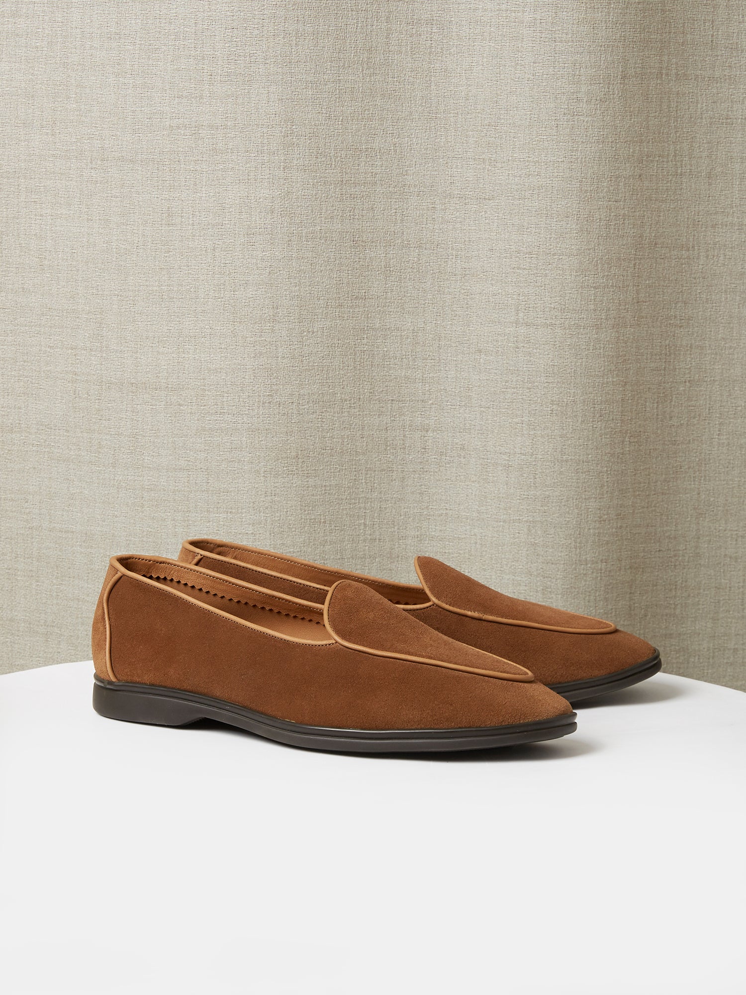 Particularly useful for travel, these elegant yet relaxed suede loafers are at their best paired with washed chinos, lightweight denim, and linen suits.