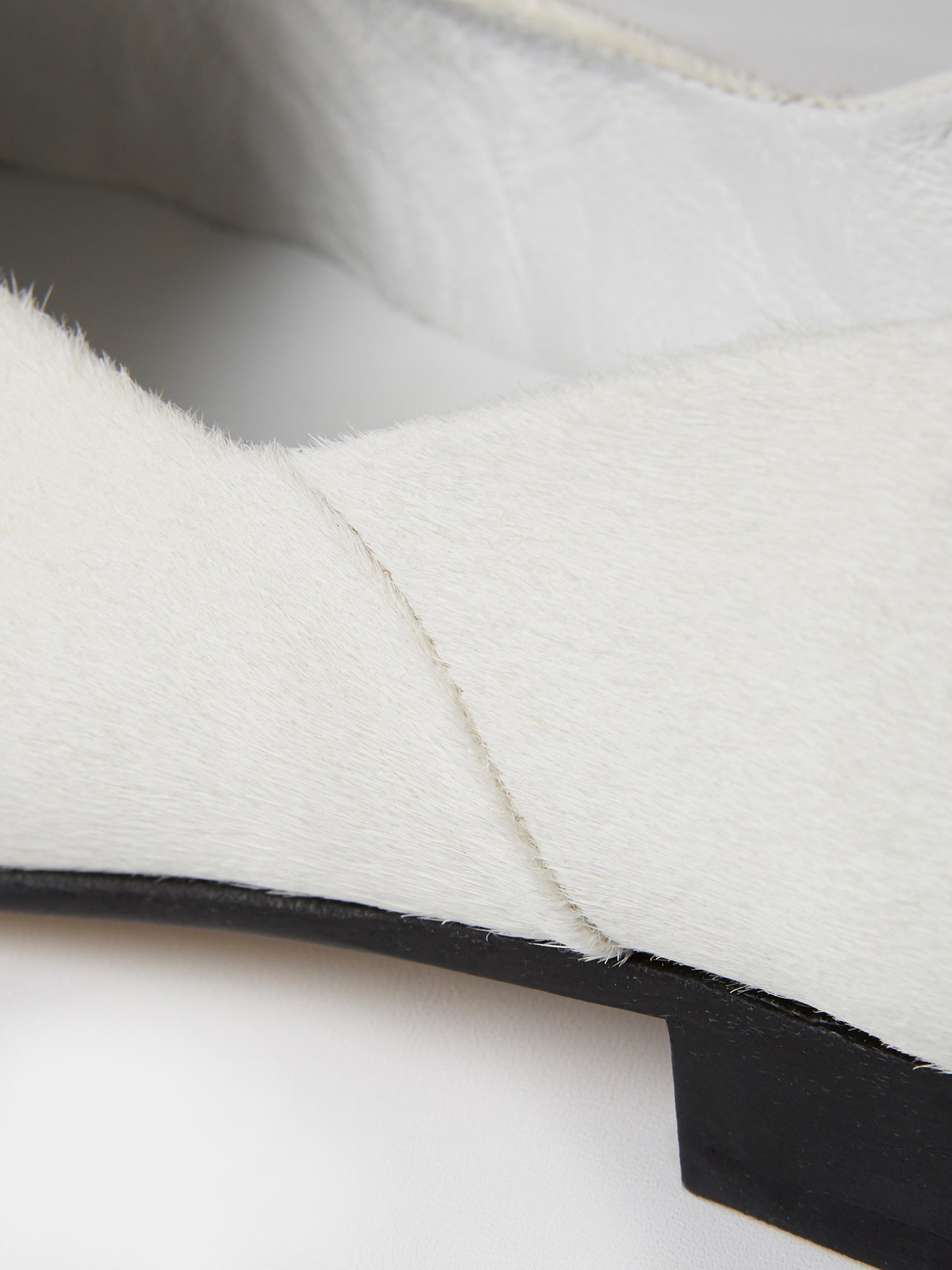 White pony hair is luxurious, and with its silky nap is naturally water resistant.